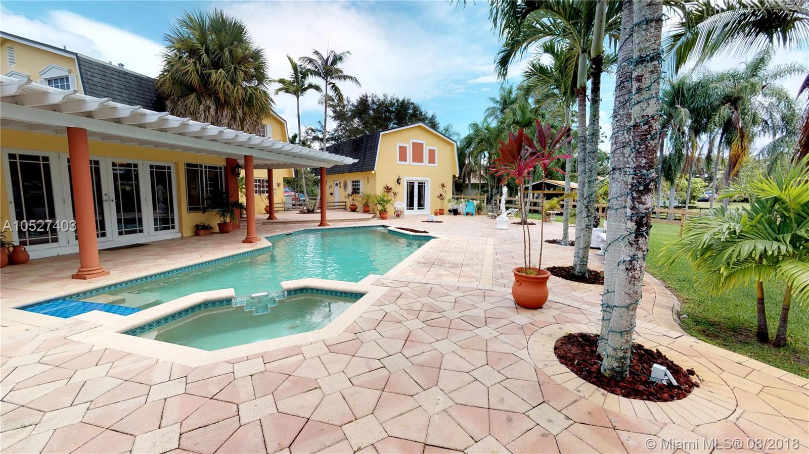 PARADISE FOUND!!! ONE OF A KIND! PRIVATE,SOUTH FLORIDA COUNTRY EQUESTRIAN ESTATE HOME ON TROPICAL 1 1/4 ACRES (OVER 51,400 SQ. FT) WITH OVER 100 PALM TREES. THERE IS NOTHING LIKE THIS AT THIS PRICE IN BROWARD: 3/3 MAIN HOUSE W/ 2 CAR GARAGE & 1/1 GUEST HOUSE, BOTH OVER LOOKING RESORT STYLE POOL & SPA AREA WITH OVER 3000 SQ. FT. OF FREE FORM PAVERS, ALL OF THIS OVERLOOKING YOUR 4 STALL PREMIUM BUILT HORSE BARN WITH DUAL PASTURES TO KEEP YOUR HORSES COMFY & FIT. HOME HAS CHEFS KITCHEN, WITH CONVECTION OVEN , CUSTOM BLANCO SINK & TOP OF THE LINE APPLIANCES . THE OPEN FLOOR PLAN ALLOWS YOU TO OVERLOOK AND ENJOY ALL OF YOUR PEACEFUL & RESORT LIKE RANCH, FROM ALMOST EVERY ROOM. THIS HOUSE IS RIGHT ACROSS THE STREET FROM PLANTATION EQUESTRIAN CENTER & VOLUNTEER PARK. ***SEE ALL PHOTOS***