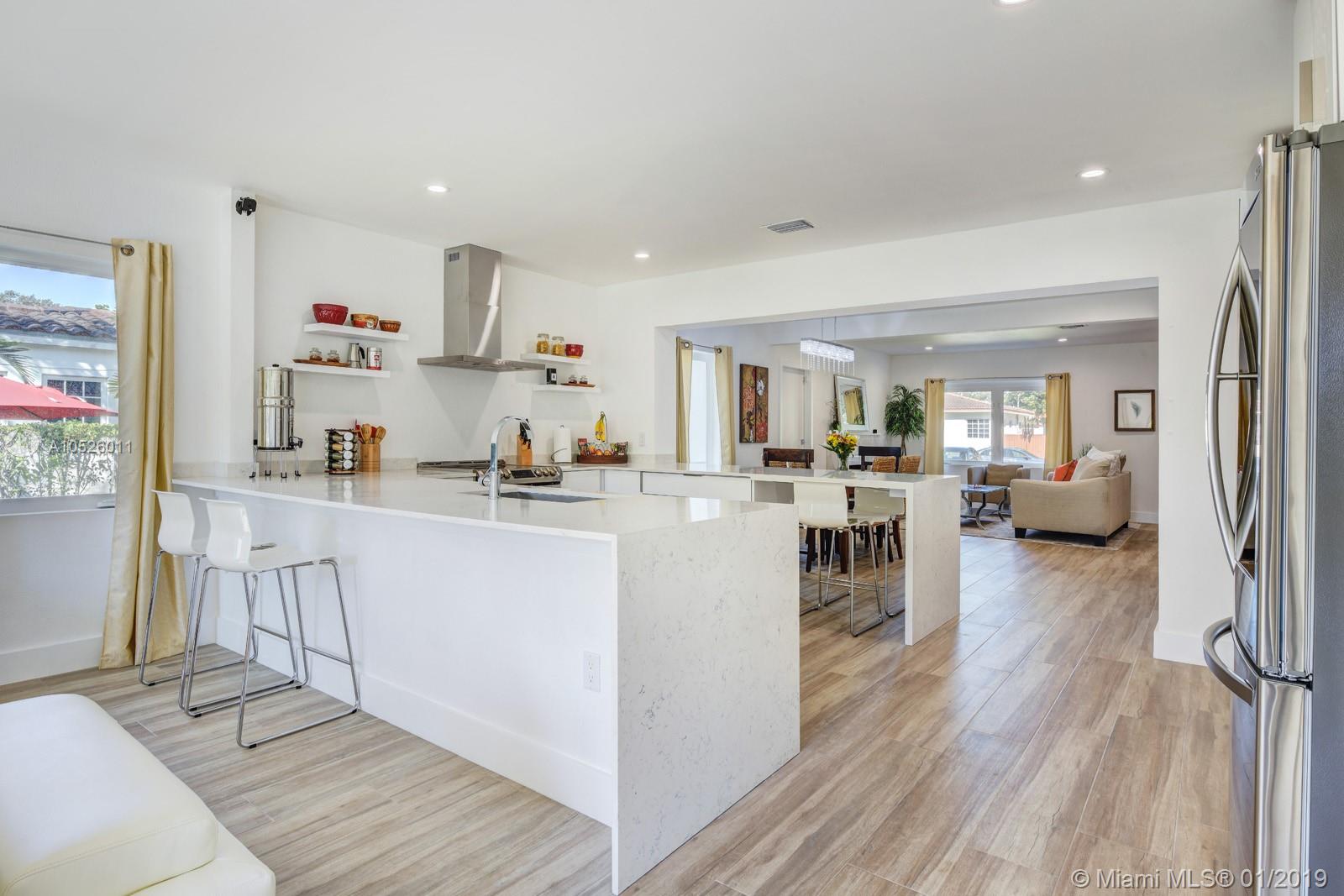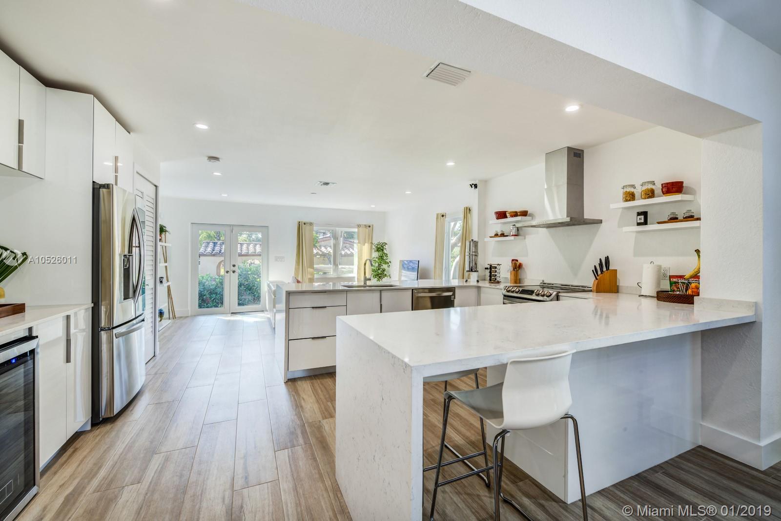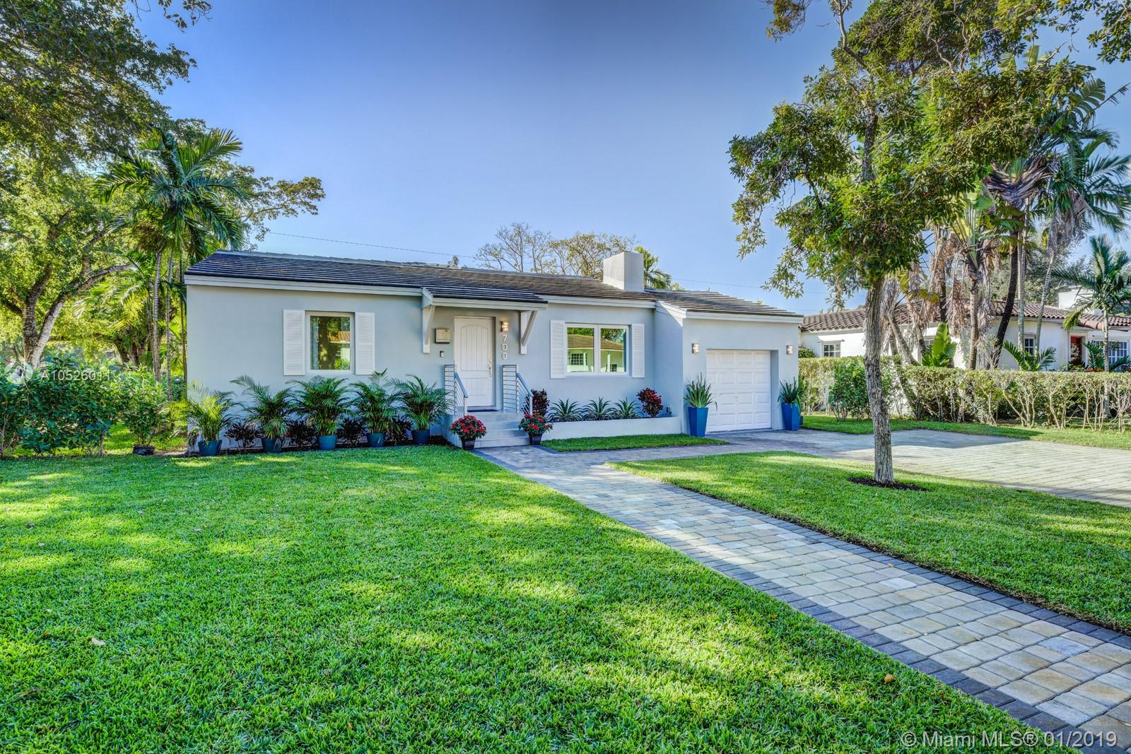 Completely remodeled home in Coral Gables perfect for entertaining. Guests can enjoy the open floorplan and serene outdoor space for large gatherings or special occasions. The house has it all, and is move-in ready... new roof, nest thermostat, new AC, italian kitchen cabinets, new plumbing, new electrical, impact windows and doors, parking pavers, sprinklers, smart keypad alarm with Ring & cameras. All done with permits. Attention to detail is evident throughout including a half bath for guests. Make your oasis the master suite which includes a gorgeous master closet and spa-like bathroom (smart toilet, dual shower & dual sinks). It's a dream home with room for a pool.