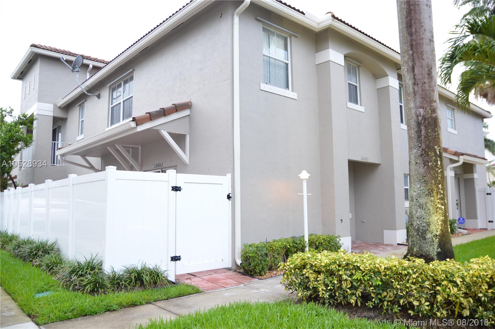 Impeccable corner townhome located in Miramar in the desirable Bahia Community. Stainless Steel appliances, tile floors throughout the first floor and wood flooring in second floor, tankless water heater, crown molding, second bath and half bath remodeled, Low HOA maintenance fee conveniently located near Dade/Broward County line for easy commute.