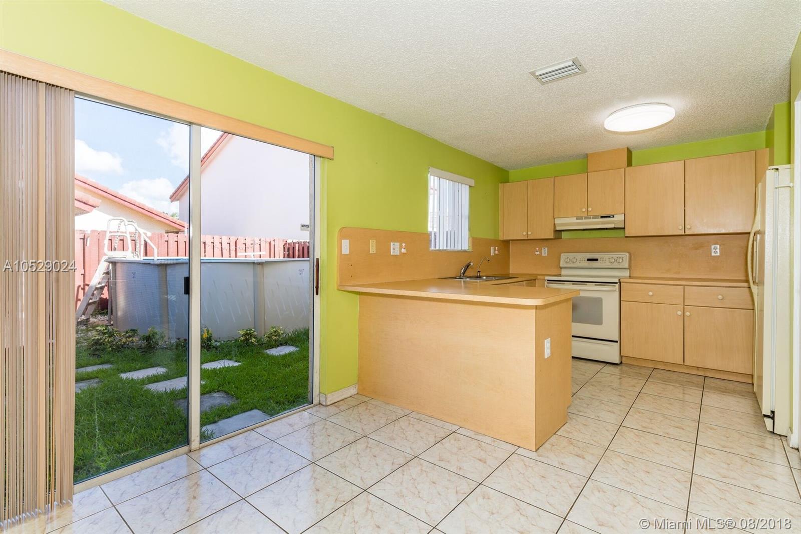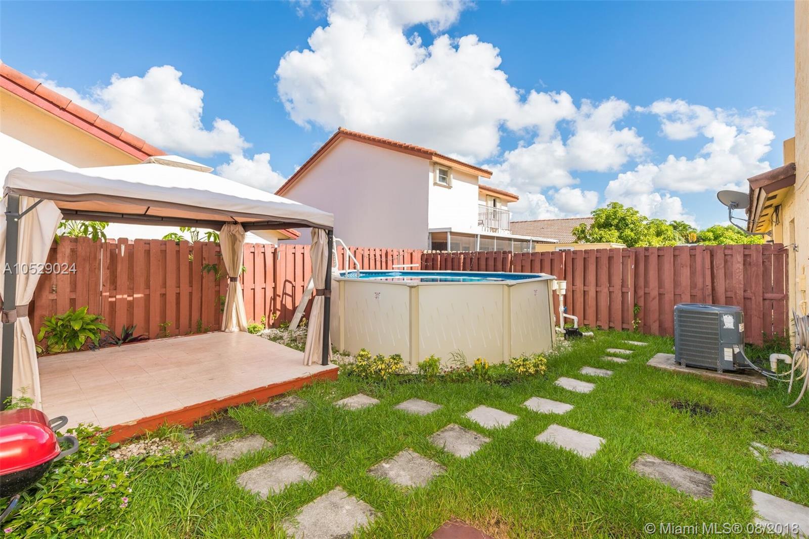 Welcome home! This beautiful and most wanted 4/3 townhouse is ready to move-in. Convenient 1 room with full bathroom on the first floor. Tile floors downstairs and wood floors upstairs. Large Master bedroom upstairs. Lovely backyard with a large storage room. Fenced patio for you to enjoy a BBQ with friends under a brand new gazebo or relax in an Ultra Frame Pool. This home is centrally located near shopping centers and major highways I75, 826 and Turnpike. Hurry! Submit your offer today:) **won't last!**