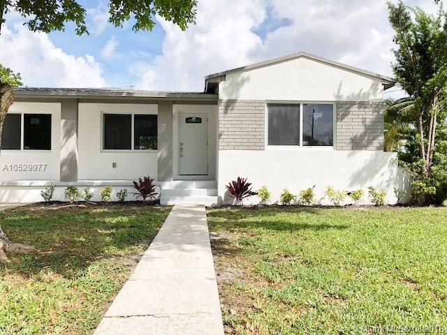 Exquisite 3 bedroom 2 bathroom home in desirable north Miami beach area. Situated on a massive 10,000 sq ft corner lot this home has it all. New roof, new studs, new electrical wiring and panel, new A/C split system and duct work, ALL new PVC plumbing throughout and fixtures, new garage door, all new impact low E windows and slider, new impact exterior doors, new insulation and drywall, new kitchen feature quartz counter tops and custom cabinets. All new stainless steel appliances and digital AC thermostat. HUGE master bedroom with vaulted ceilings, his and her closet. Large bathrooms both with double sinks!! Everything was done with permits from the city of North Miami Beach. Owner spared no expense!! Bring your pickiest buyer this property won't last!!