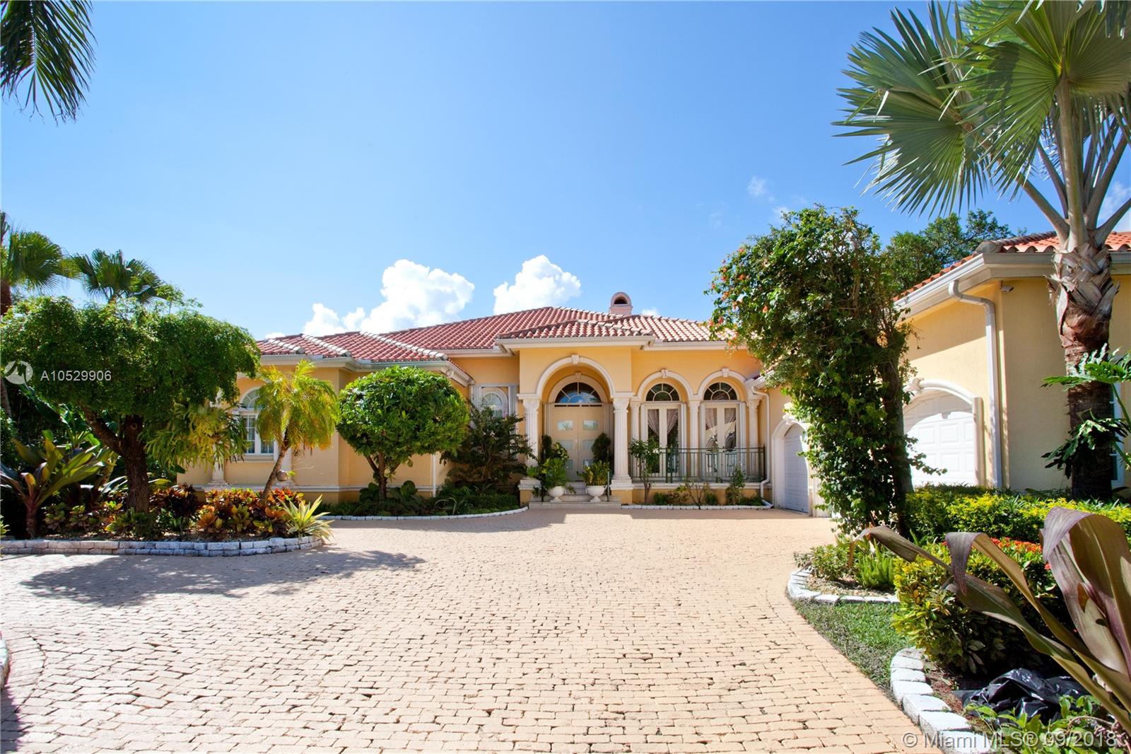 Price reduction!Owner motivated! Mediterranean split level home, gated w/brick courtyard, marble flrs, high ceilings & doors. Double doors entrance leads to formal living rm w/French doors leading to covered terrace & pool area. Formal dining rm. The renovated eat-in kitchen opens to large family rm w/built-in entertainment center. Kitchen has quartz counter tops, lots of cabinets & walk-in pantry. The main flr includes an office off the foyer, w/full bath, & 3 bedrm suites. The private master suite is located on a split level, w/balcony overlooking pool area, includes a spacious walk-in closet & bathrm suite. Pool area has a large covered terrace, summer kitchen & cabana bath. Impact windows/accordion shutters. Property located in Special Taxing District, 24 hr security.