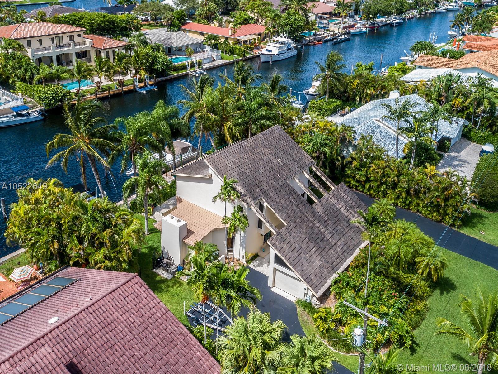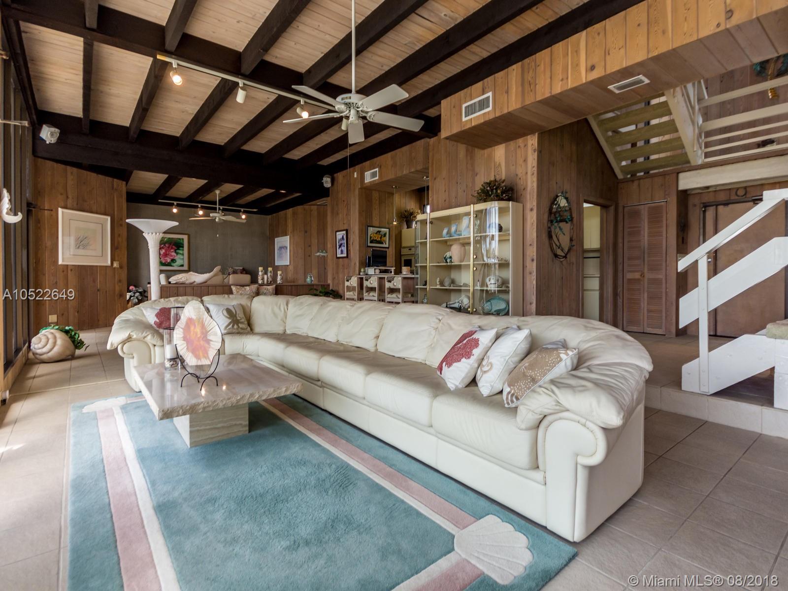 Direct ocean access home with 100’ seawall, dock & davits on wide waterway, no bridges to Biscayne Bay in gated Gables by the Sea. 1970 3/2.5 2-story home on 11,500 SF waterfront lot filled w/artistically fun features incl 11.5’ open wood beam ceilings. Light filled open floor plan, waterway views from every room. Galley style kitchen & breakfast bar perfect for entertaining. 2-car separate garage/workshop. Ideal opportunity for renovation or new build. Guard-gated community, top schools.