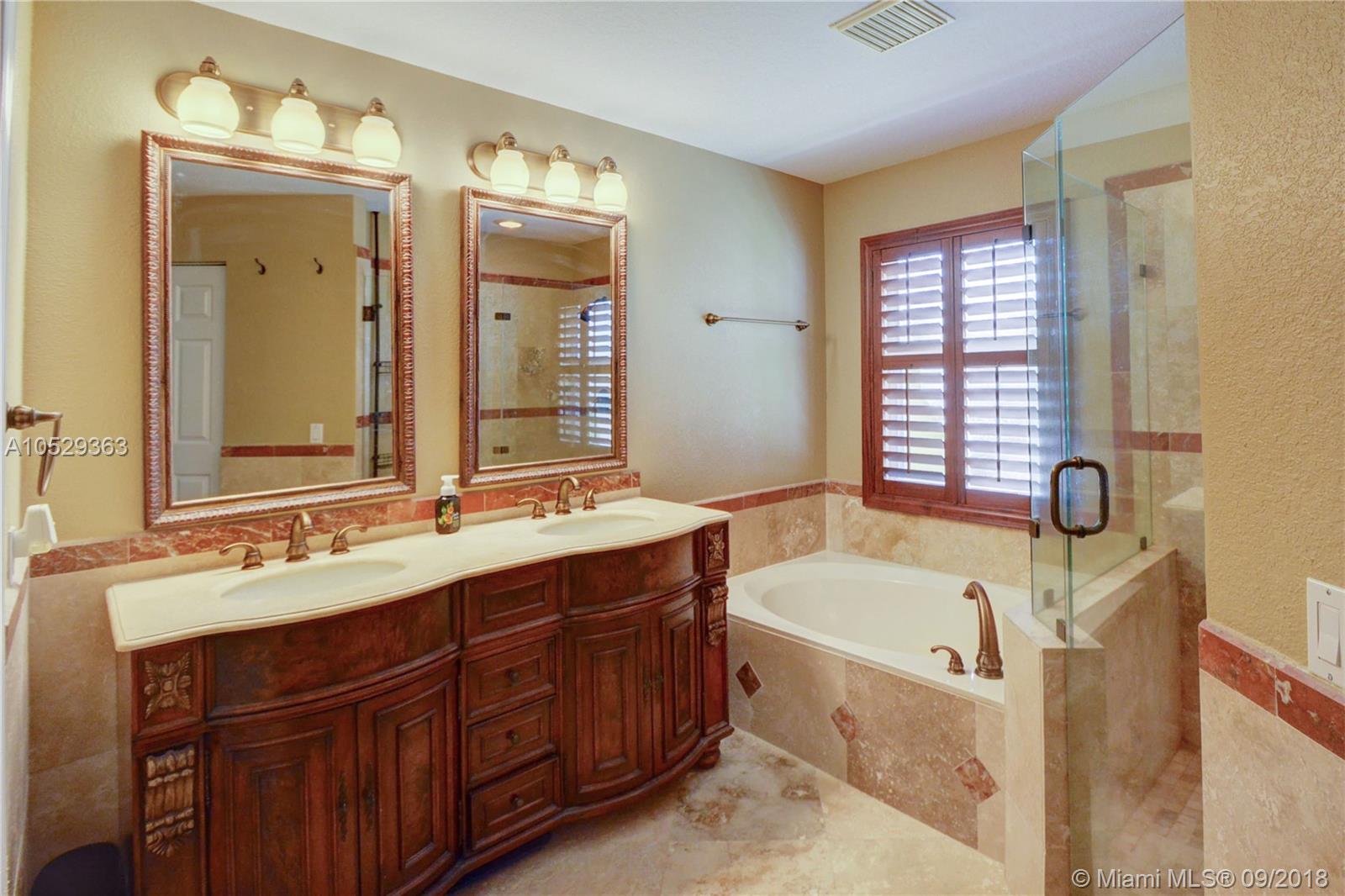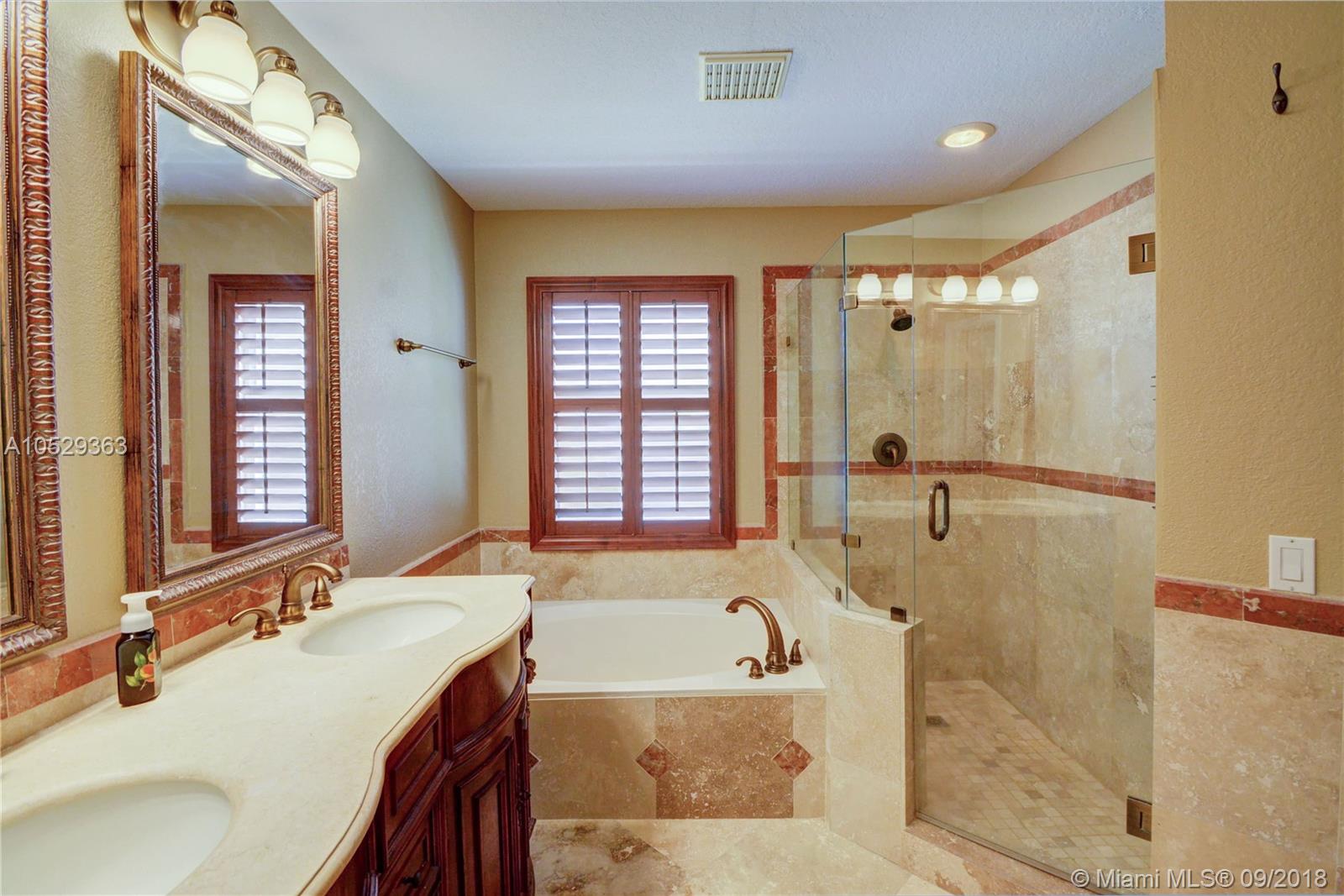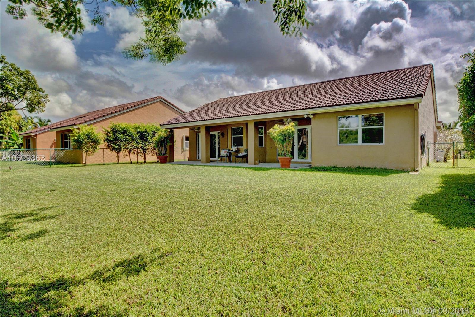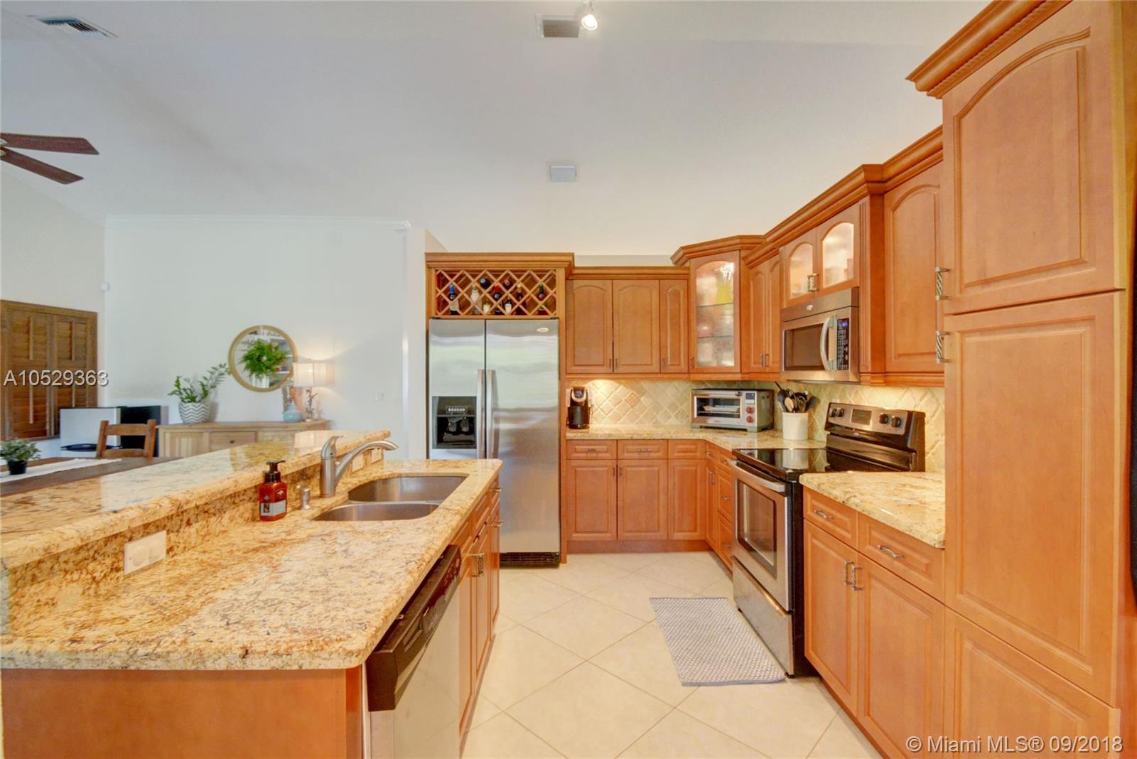 Rarely available house in Alhambra community in west Pembroke Pines. House is a one story on a large lot with no back neighbor. House has a covered back yard patio great for entertainment or just relaxing. House is very spacious and open with high ceilings. Home features a upgraded kitchen with custom wood cabinets and granite counter tops and stainless steel appliances. Both bathrooms have been upgraded. Master bathroom has double sinks with tub and shower with frameless glass and marble floors. Large master bedroom with high ceilings and large walk in closet. This house is a must see before its gone.