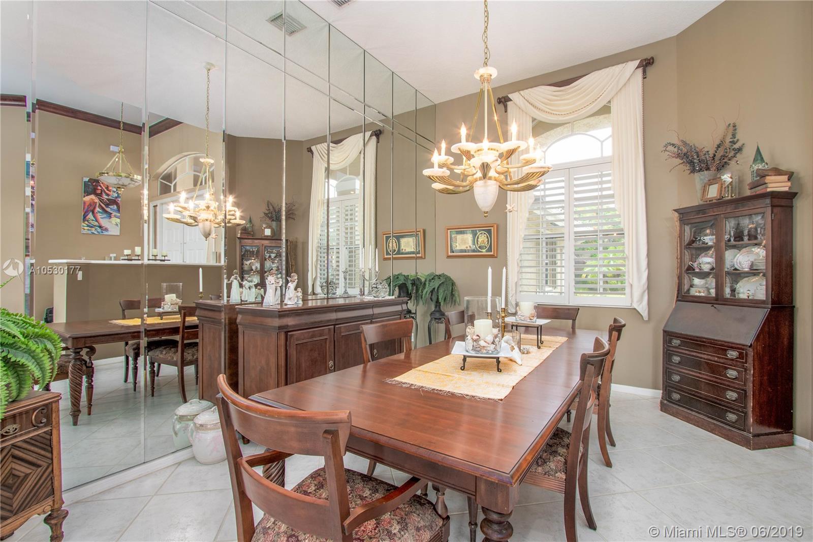 • Característica Interior:WetBar, BreakfastBar, BedroomonMainLevel, BreakfastArea, DiningArea, SeparateFormalDiningRoom, FirstFloorEntry, HighCeilings, CustomMirrors, MainLevelMaster, Pantry, SittingAreainMaster, Bar, WalkInClosets, BayWindow