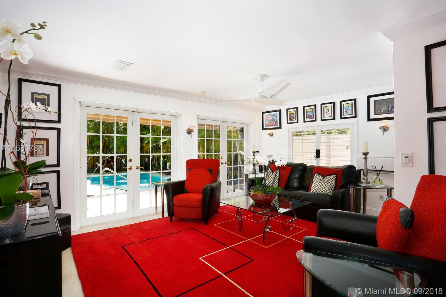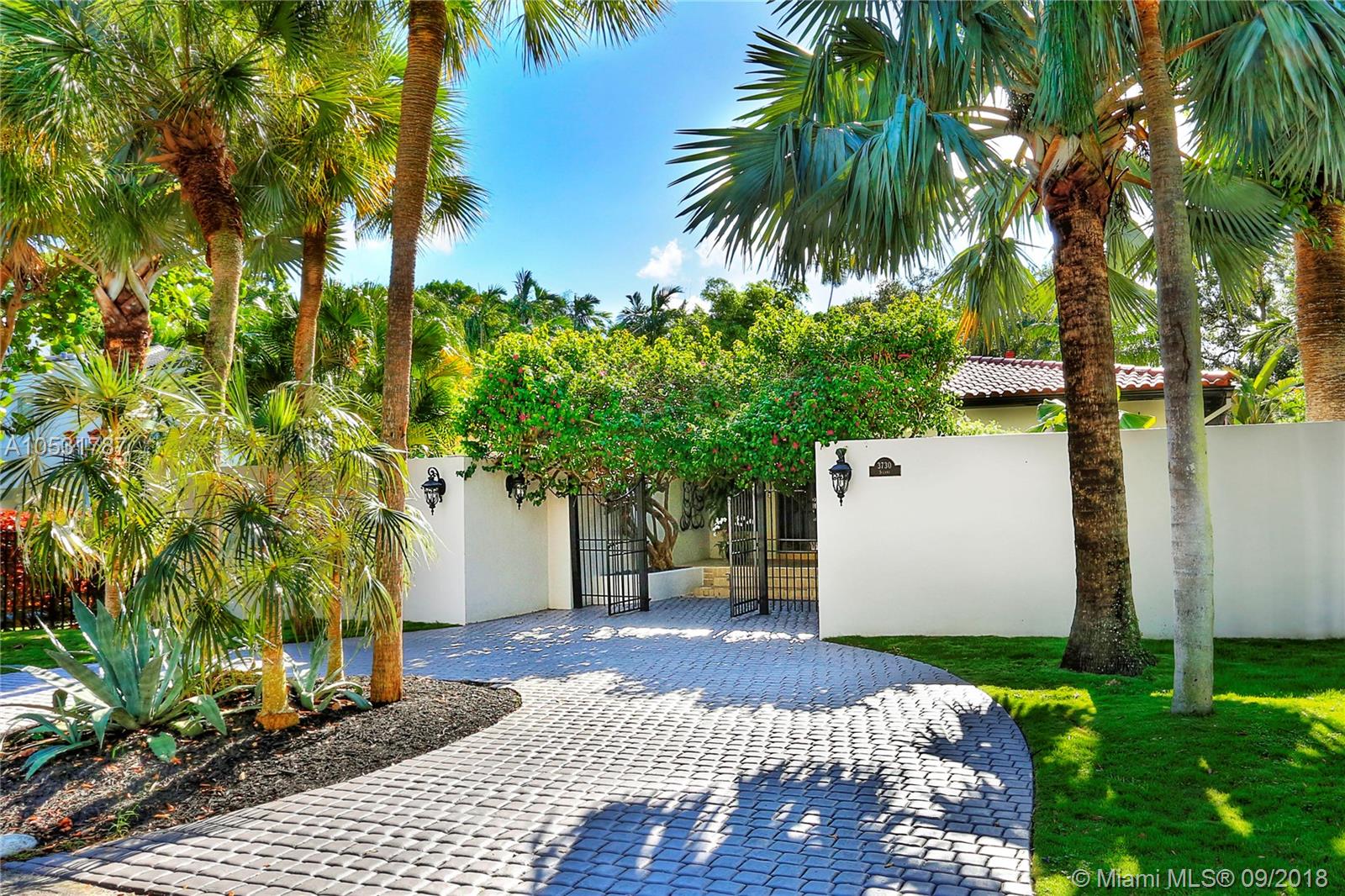 An ultra-private, walled & gated retreat in prestigious South Coconut Grove. Stunning, light-filled living areas feature volume ceilings & walls of glass, creating a seamless blending of indoor & outdoor spaces. Recently renovated w/ luxury finishes & fixtures throughout. Elegant formal living & dining room overlooks spectacular pool with fountains and tumbled marble deck surrounded by up-lit palms. Sleek euro-style kitchen w/custom wood cabinetry, granite countertops & high-end stainless appliances.Luxurious master suite features walk-in closet/dressing area, private terrace, 12’ stone shower & jetted tub. Ample parking: covered parking for 2 cars & circular driveway. Walk to the Grove village center’s boutiques, cafes and bayfront parks & marinas. Minutes to downtown, MIA & the Beaches.