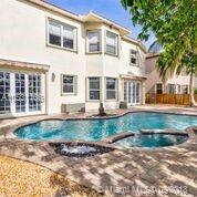 Beautiful two story lakefront home in the Portofino sub division of Riviera Isles. Light & Bright. 5 Bedrooms 3 Baths with guest/mother-in-law / maid room and full bath on the ground floor. Dramatic cathedral ceiling at the entryway. Circular stairway. Spacious Living / Dining Room. Huge Family Room. Open kitchen w/ view of pool, spa, lake and shady matured mango tree. Lychee tree in front yard ! Breakfast nook. Island counter. Walk-in pantry. Laundry Room with newer full size washer-dryer. 3 car garage with built-in work bench. Spacious Master BR overlooking pool & lake. Master Bathroom w/double sink and separate shower & tub. Huge walk-in closet. Hunter Douglas shades throughout. Interior freshly painted. Roof and pool patio pressured washed. Back & side yard fenced.
