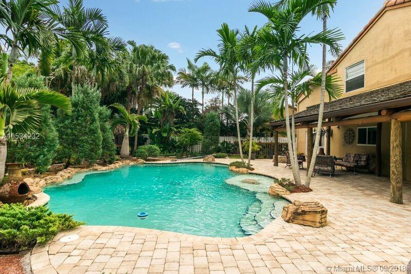 Superb resort-like re-modeled 4 BR, 3 Bath paradise in the Estates of the Residences at Sawgrass. Stunning eat-in kitchen worthy of million dollar property: granite, wood, Kenmore professional stove, Fisher & Paykel dbl dishwasher, new fridge, double ovens. Even more spectacular out back: Over-sized fully-fenced tropically landscaped yard, free form salt water pool, extended covered patio, tiki hut bar, fire pit, more. Newer baths and roof, A/C just a year old, custom built-ins, new wood flooring upstairs. Walk/Bike to Sawgrass Mills, BB&T Center new American Express Regional HQ and Metropica Development where a 3 BR apartment-style condo will cost more than this. Close to Sawgrass Expressway, I-75 and I-595 for easy commutes every direction.