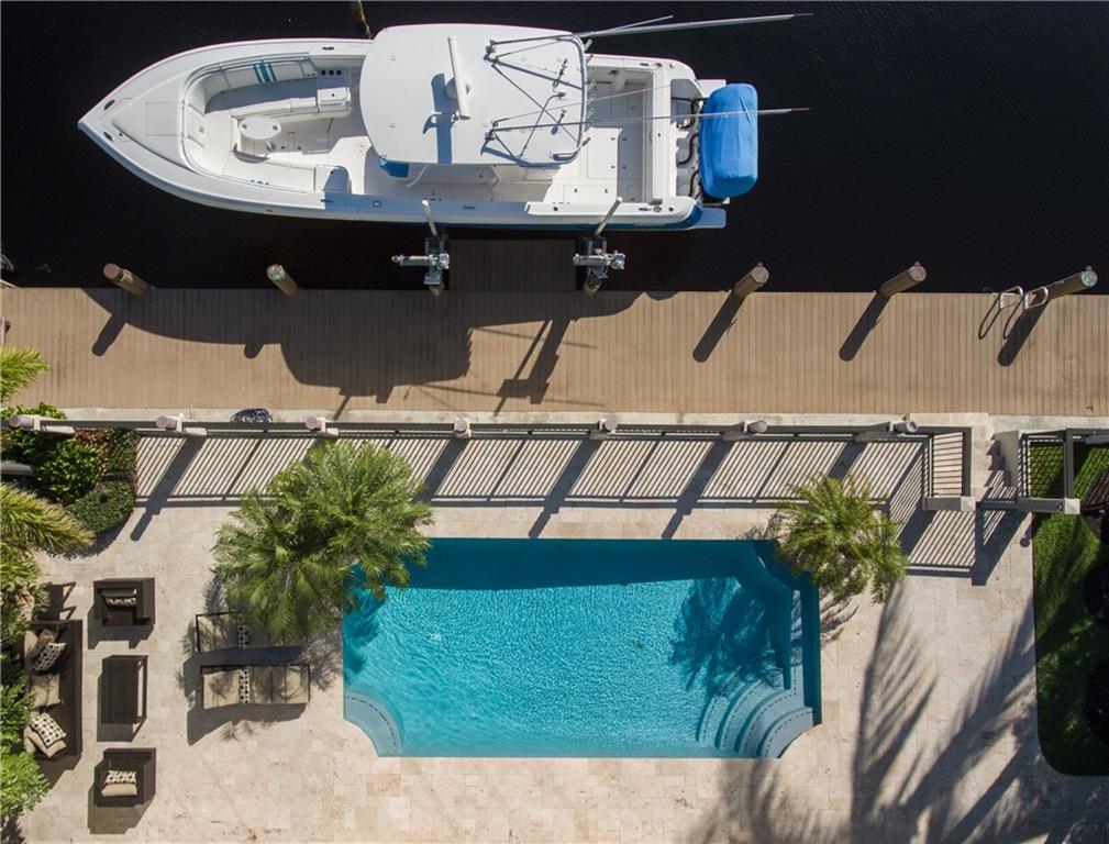 Gorgeous, renovated waterfront home in Bermuda Riviera! Deepwater estate w/80' dock & 18,000 lb. boat lift on a wide canal, just moments to the Intracoastal. The open floor plan of this custom home is perfect entertaining. Marble and hardwood floors, heated pool, built-in office, steam shower, custom landscaping & lighting. Smart home w/security systems. Huge master suite w/private balcony & ICW views. Great cul-de-sac location, easy walk to private Bermuda Riviera beach access! Gated community.