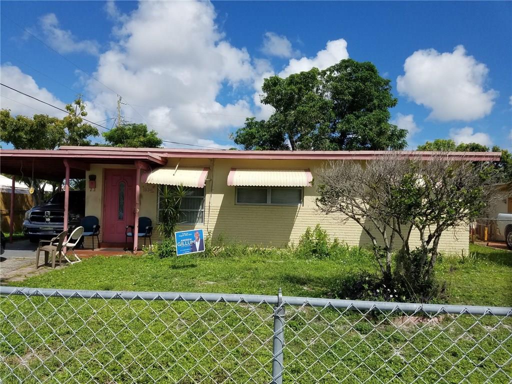 This 3/1 has tons of potential. Carport and utility room. Vaulted ceilings in living room. Terrazzo and tile floors. Large fenced back yard and front also fenced. White cabinets and appliances. Roof is 11 years old. Easily rented, investors welcomed. Close to Bass Park and pool.