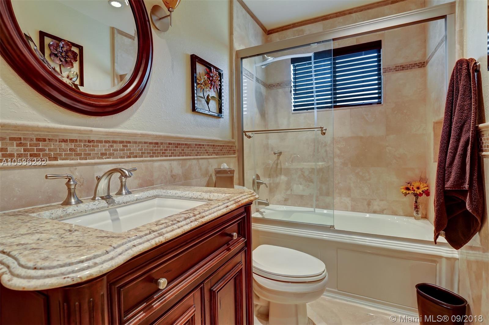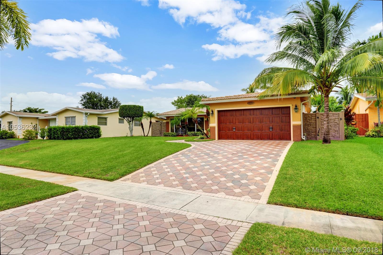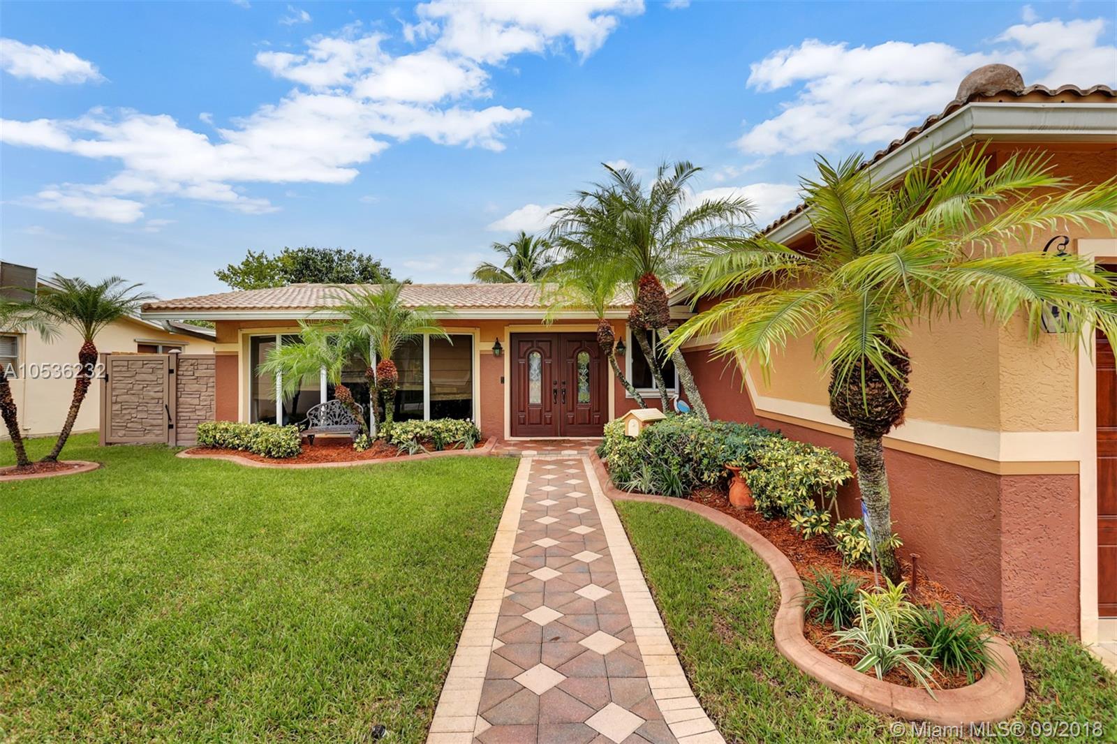 Absolutely stunning! This home is completely redone to perfection. An open floor plan the moment you enter. Marble floors in the Living & Dining Rooms. Gorgeous kitchen with no expense spared: Cherry Wood Cabinets, high-end Granite and Stainless Steel appliances, pull out drawers, wine cooler, large island & an eat-in kitchen with lots of built in cabinetry. Family Room overlooking the pool area & 1 bedroom with french doors: both have real wood floors. Large Master, walk-in closet & a cabana bath. A tropical oasis awaits you outside, Tiki hut, electric retractable awning, brand new Simtek fence recently installed, roof is 4 years old, new windows impact french doors, Garage converted to a beautiful entertainment room , salt water pool remodeled in 2018. Florida Living at its best!