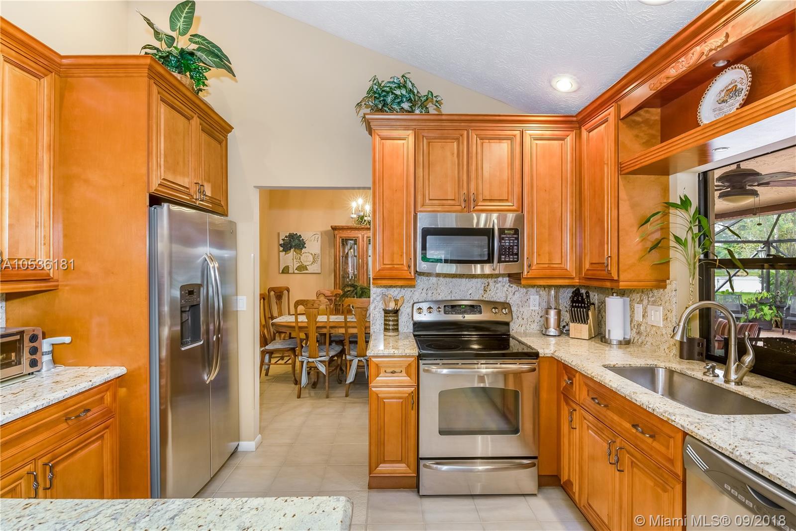 Rarely available Arabian model in Davie Lake Estates! BIG 3/2 loaded with features & over 2000 sf of living area. Remodeled kitchen with high end cabinetry & counters. Updated bathrooms. Meticulous condition with flowing floor-plan. Family room & breakfast area off kitchen for the "open concept" that is popular. Large living room with formal dining area. Working fireplace for cozy evenings. Huge screened patio with gorgeous & peaceful lake view. Secondary patio sits to the side of family room..perfect for morning coffee. 2006 S-tile roof, AC replaced in 2012. Hurricane protection & rated garage door. Lots of extra storage in attic with flooring and pull down ladder. Huge lot with plenty of room for pool, garden & pets. THE BEST SCHOOLS. (Silver Ridge, Pioneer & Cooper City High)