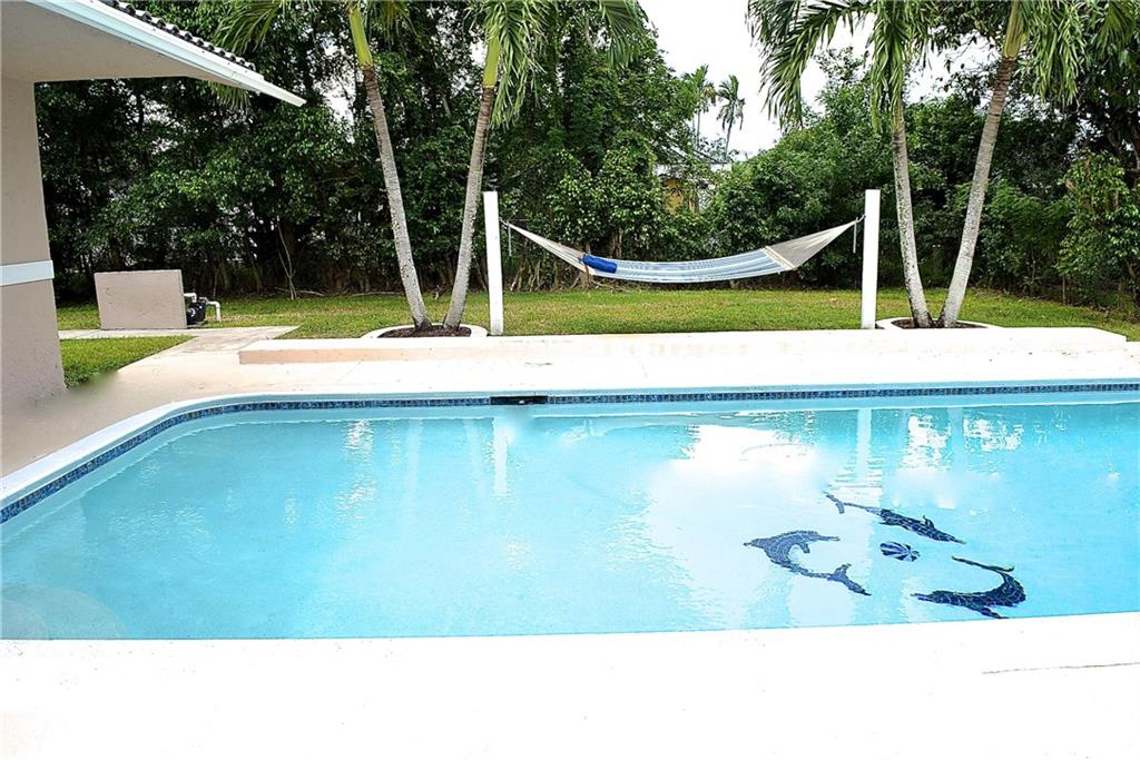 This absolutely beautiful 4 BR / 2 Bath home has been remodeled from floors to ceilings...everything new. This home has it all...Open floor plan w/split bedrooms. Home features remodeled kitchen w/granite countertops & real wood cabinets, Updated baths w/his & her sinks & river rock shower in master bath & spa tub in guest bath. Walk in closets, freshly painted interior & exterior, updated electrical, newly diamond brighted pool w/ new pool deck. Fenced yard, hammock, hurricane shutters. Avoid the crazy school car pool lines... great location to walk to all area schools (elementary, middle & high school).
