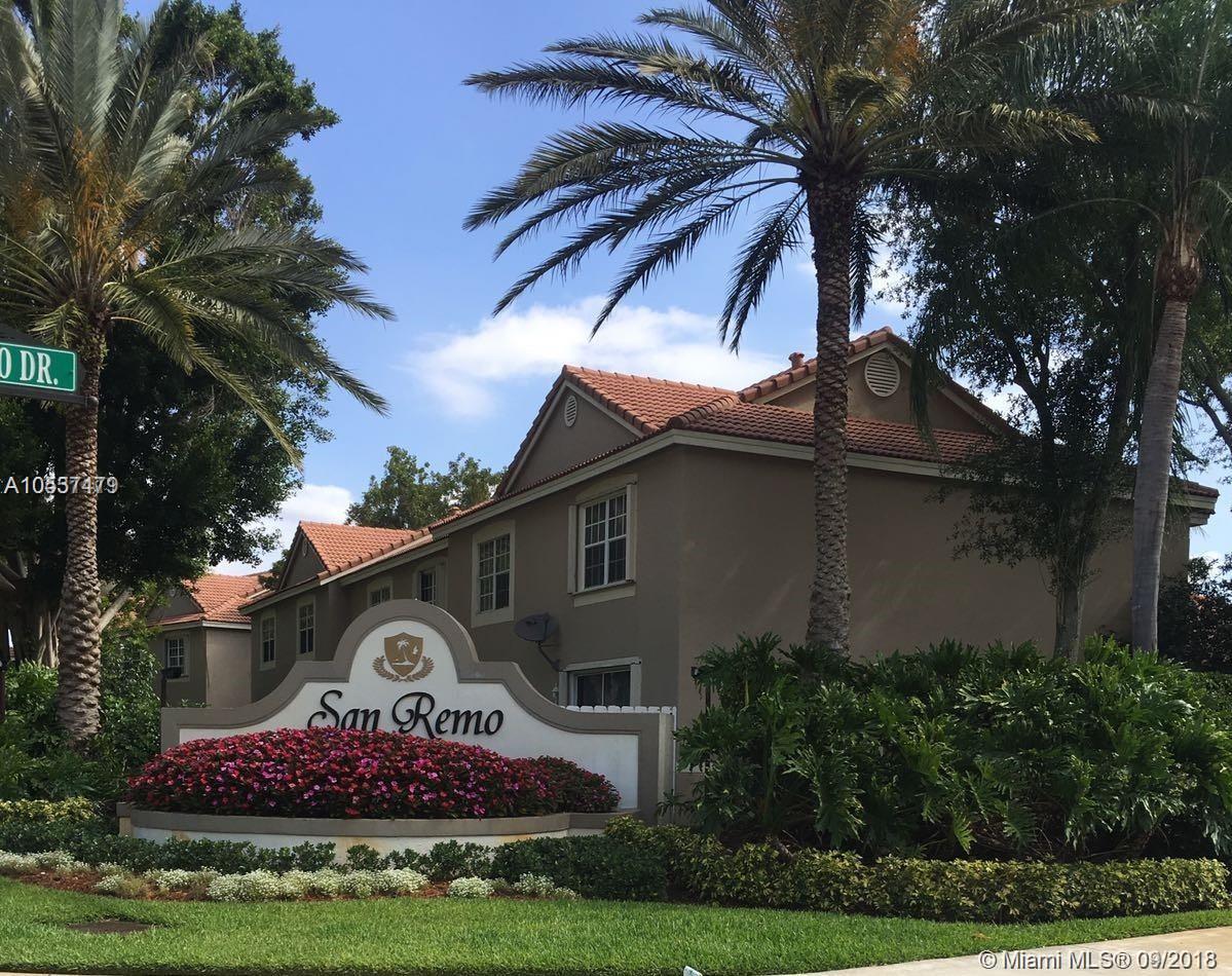 Beautiful Corner townhouse 2 bedroom 2.5 baths in SAN REMO. Tiles in the first floor and wood floors on stairs and bedrooms. Walk-in closet. Covered Garage parking, New 3 TON AC, Hurrican Shutters, Community pool and playground across the unit. Walking distance to Excellent A-rated School. Easy access to major highway I-75 and I-595. Amenities include: Pool, Basketball & children play.