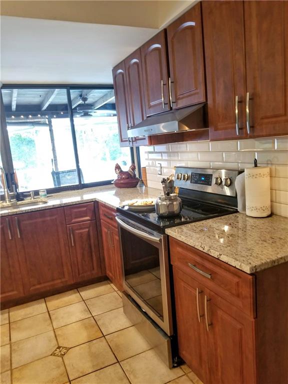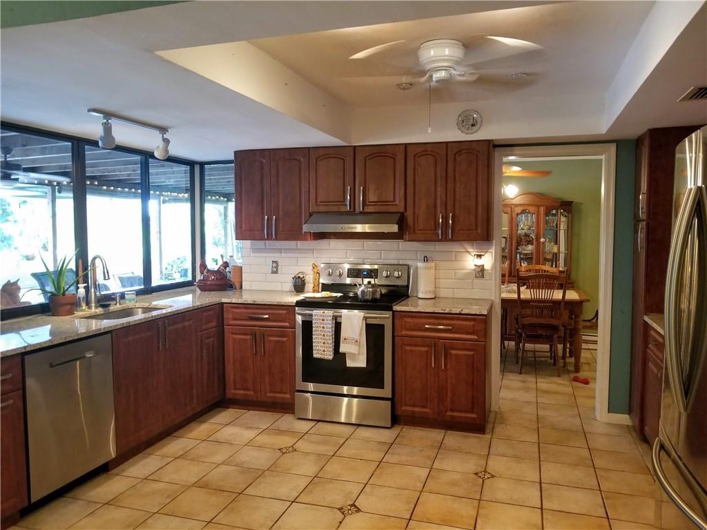 This true 5 bedroom, 2 full bath boasts a brand new remodeled kitchen to include granite countertops and wood cabinets! Screened in porch with serene water views to relax and or entertain. All impact windows (except kitchen window pass through) for added protection. Beautiful Italian porcelain tile in all bedrooms and other tile throughout the home. No carpet here! Split bedroom for additional privacy and access to the pool. Picturesque quiet street and wonderful community spirit isn't inviting enough - there is NO HOA in this neighborhood. This is a great value for the price as well as an investment property.