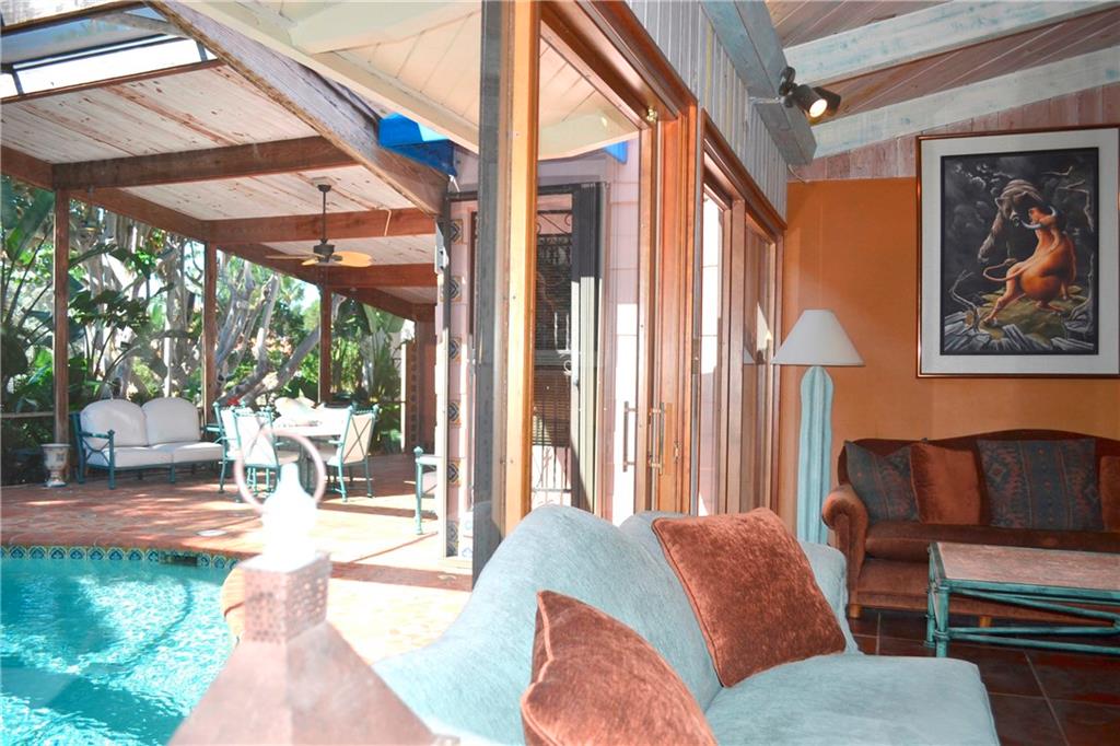 Palm Springs Adobe Design meets "Mad Men Era" style in this Unique Rio Vista Gem! Amongst the cold hard lines from the new construction of the Contemporary homes, this bright and elegant private oasis is a wonderful step back in time to the true Rio Vista of days past. Perfect for that buyer with a Vintage Perspective that longs for the utmost in privacy, with plenty of original Rio Vista charm. Steeped in character, this home features an eclectic mix of special elements that make it a true one of a kind property. Fixtures and furnishings have been meticulously maintained for decades. High wood beamed ceilings, desert adobe inspired pool area and outdoor kitchen. Cabana bath, outdoor shower, private outdoor courtyard café brick patio. A resort like fee on 10,300 sf corner lot.
