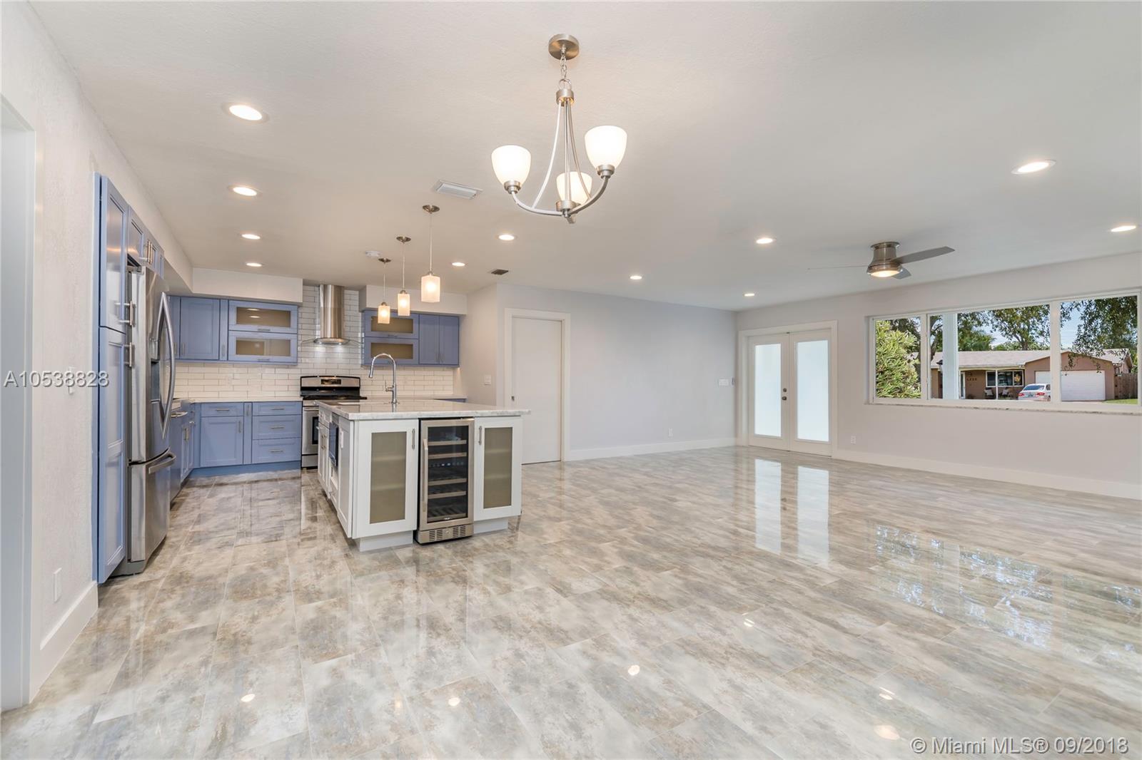 Gorgeous 4/2 Hollywood Hills home with NEWLY REMODELED EVERYTHING-bedrooms, bathrooms, living/dining, laundry, patio & kitchen. No details spared! Plus NEW HURRICANE PROOF WINDOWS & DOORS. Amazing open floor plan, great for family life & entertaining. 2 master bedrooms; 1 master on opposite side from other 3 bedrooms. Unique blue modern kitchen, white quartz counters, stainless steel appliances, gas stove & a large vivid stone-top center island with a separate sink, built-in microwave & wine cooler/bar area, plus front load washer & dryer in spacious laundry. Large fenced-in backyard with a beautiful mango & gardenia tree. Circular front driveway & alley access to 2nd rear driveway leading to garage. Excellent location; next to turnpike & a short drive to I-95.