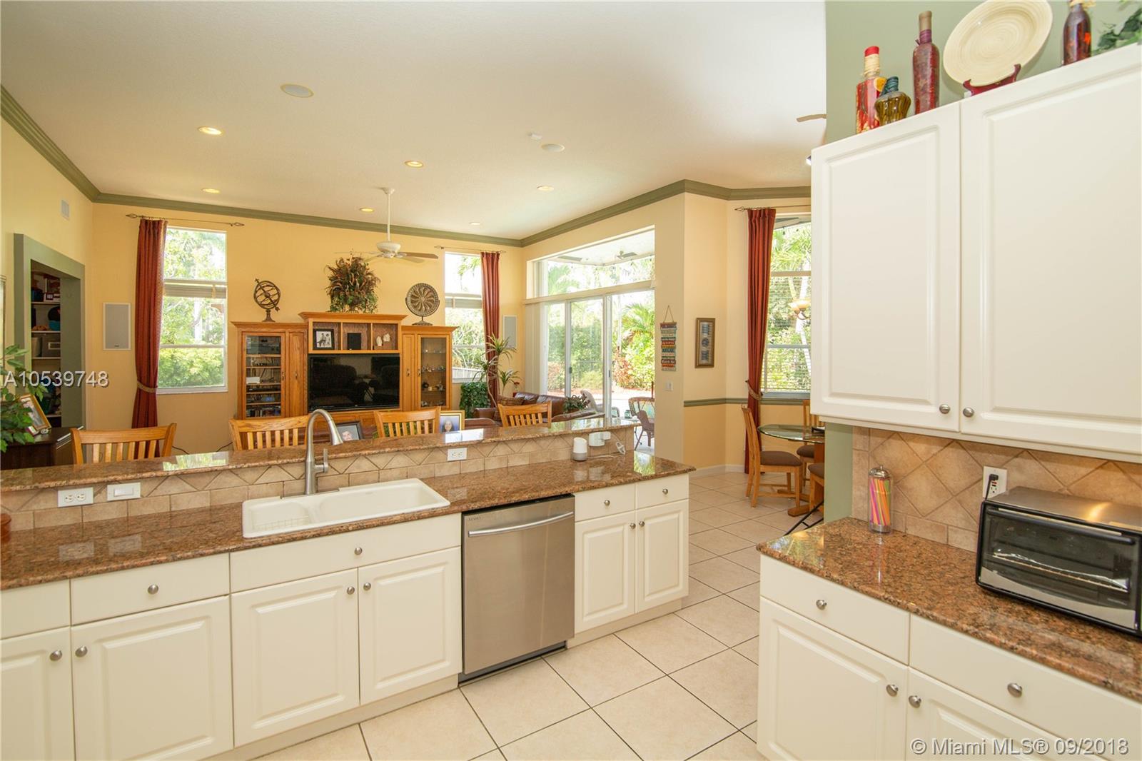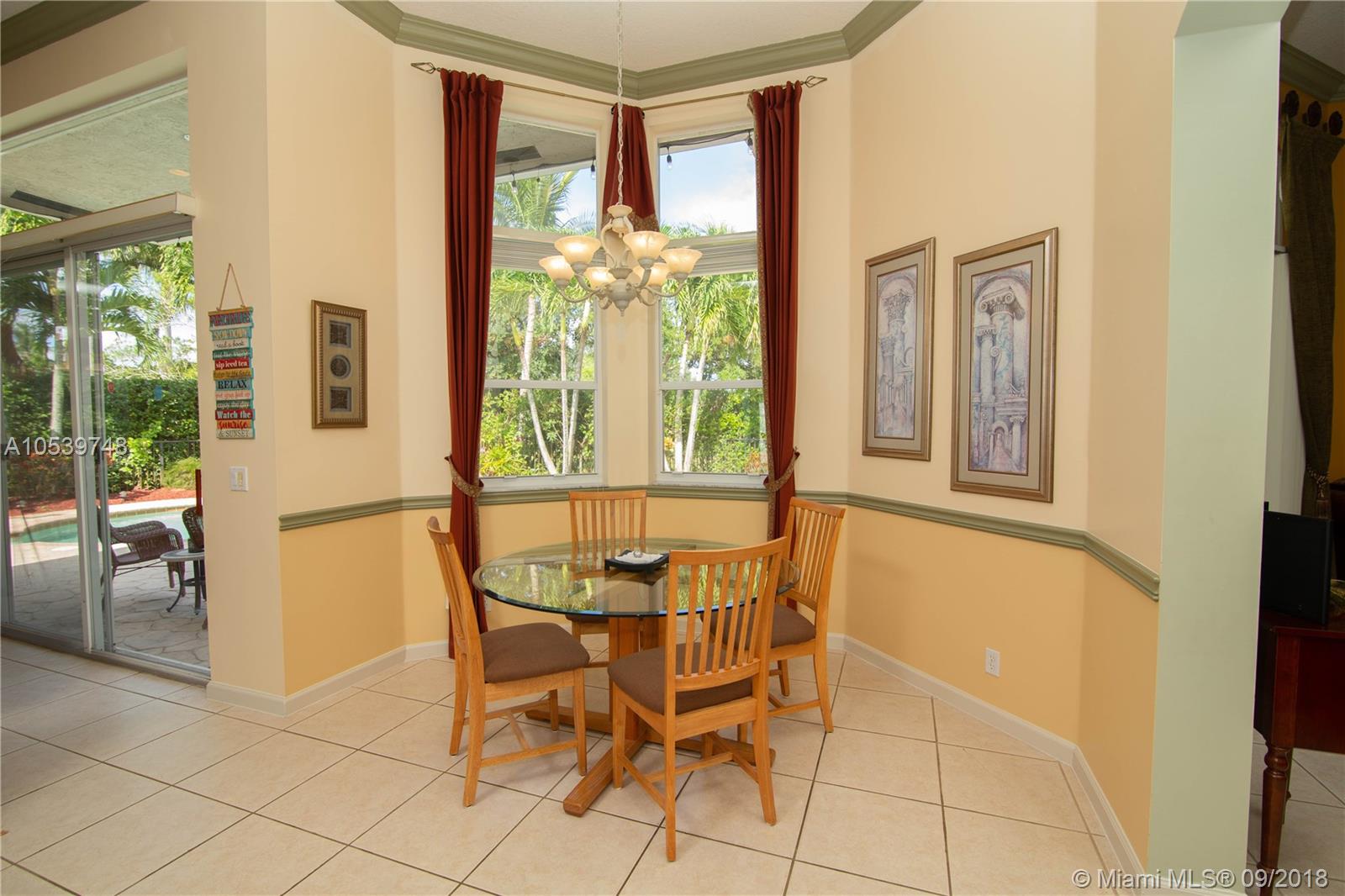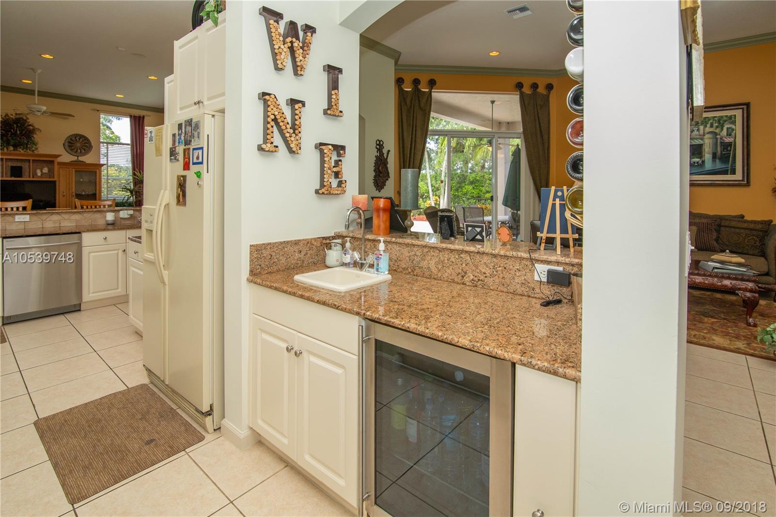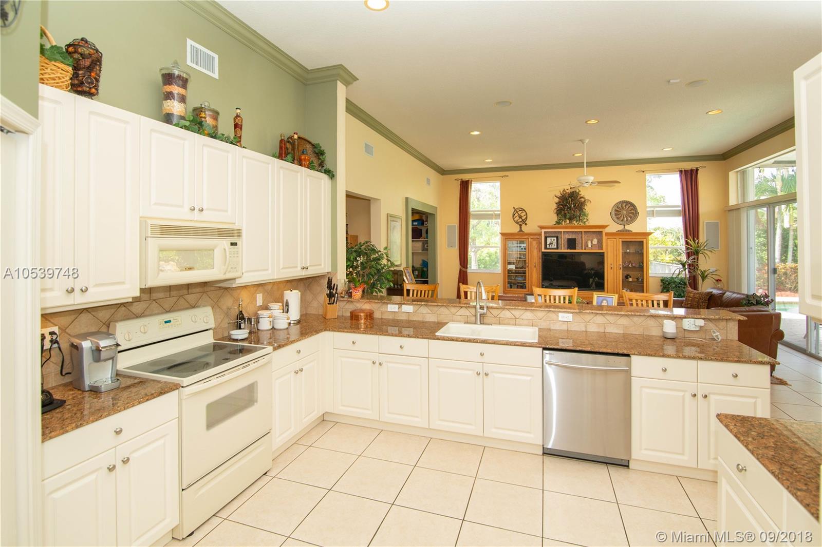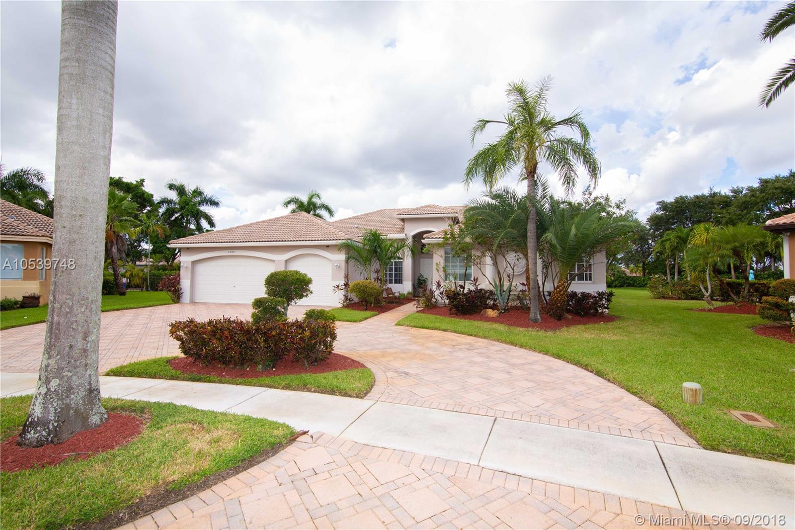 Beautiful One Story home located in the desirable gated community of Sunset Lakes/Miramar West, This elegant home features: 4 bedrooms, 3 baths, Den, with Bonus room offers an open floor plan, Kitchen with 42" cabinets, granite countertops, large Pantry, Butler Pantry with cabinets/ Wet Bar and Wine Cooler, formal living and dining room, crown moldings and high hat lights throughout, great Master Suite with a Sitting Area, walk in closet with large Master Bath, Family Room and Bonus Room with a nice view to the private and delightful landscaped, fenced heated pool/Jacuzzi, accordion shutters, Security Cameras and alarm. Circular Paved Driveway, only 40 homes at Las Brisas/Sunset Lakes. Featuring a Resort Style Clubhouse, Fitness center, 8 Tennis courts, Basketball, Pool, Kids Center.