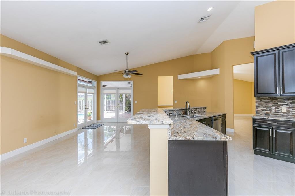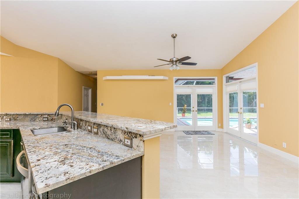 THIS ONE IS READY TO MOVE IN! SPACIOUS 4BR/2.5BA HOME WITH POOL & BEAUTIFUL KITCHEN! Upgraded kitchen w/wood cabinets, granite counters, back splash, Kenmore stainless steel appliances, & breakfast area. Bright and light w/open floor plan. Separate living, formal dining and family rooms. Half bath remodeled with vanity, granite counters and framed mirror. Other features include tile throughout living areas, vaulted ceilings, french doors, split bedroom plan, 5 ceiling fans, wainscoating in dining room, laundry room w/storage & 2nd full bath is cabana bath. Master bedroom overlooking the pool area with his and hers walk in closets. Master bath has dual sinks, bidet, separate shower, and roman tub. Screened in pool w/paver patio & fenced in private backyard just perfect for entertaining.