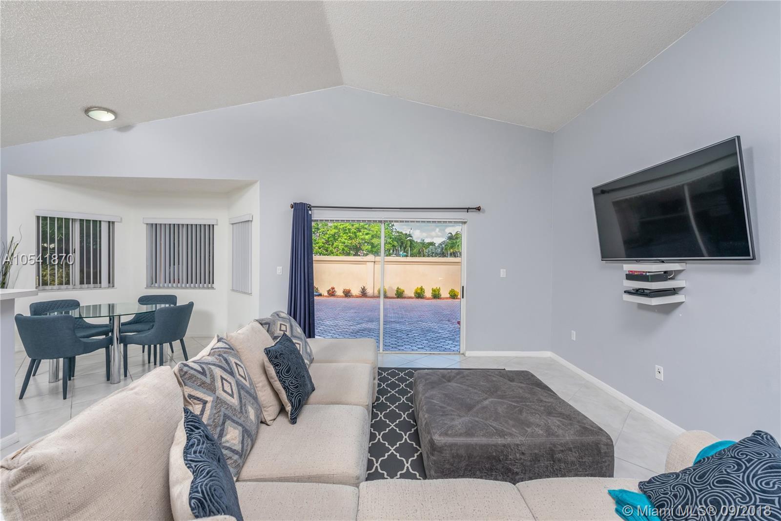 Ideally located in Doral Gardens gated community, This charming one story 4 bedrooms 3 baths residence features beautiful rarely seen vaulted ceilings, split floor plan, spacious master bedroom including two walk in closets, dual master bath sinks for his and hers, large bathtub and shower. Separate laundry room and tons of storage throughout with a two car garage. A paved well manicured fenced backyard with a covered terrace. Plenty of room for entertaining your friends and family, and let’s not forget enough room for a playground. Amenities include basic cable, alarm and security.