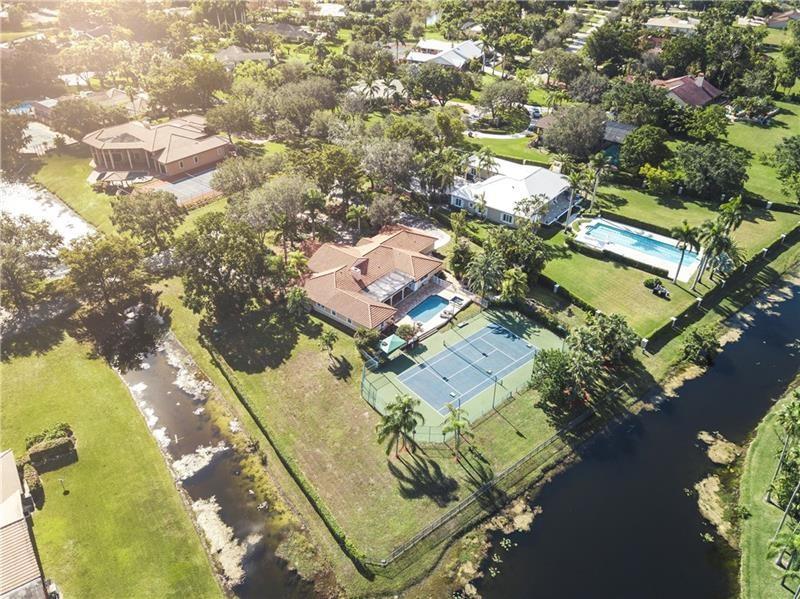 BEAUTIFUL WATERFRONT RANCH ESATE WITH CIRCULAR DRIVEWAY AND SIDE-LOAD 3 CAR GARAGE. NEWLY RENOVATED KITCHEN AND BATHROOMS WITH STAINLESS STEEL TOP OF THE LINE APPLIANCES AND QUARTS COUNTER-TOPS. PRIVATE TENNIS COURT, FIRE PIT AREA, AND COMPLETELY FENCES YARD. TROPICAL RESORT STYLED POOL WITH MARBLE PAVERS AND CUSTOM WOOD PANELLING ON PATIO. CUSTOM BUILT WET BAR AND WALL UNIT. PRIVATE IN-LAW/NANNY SUITE.