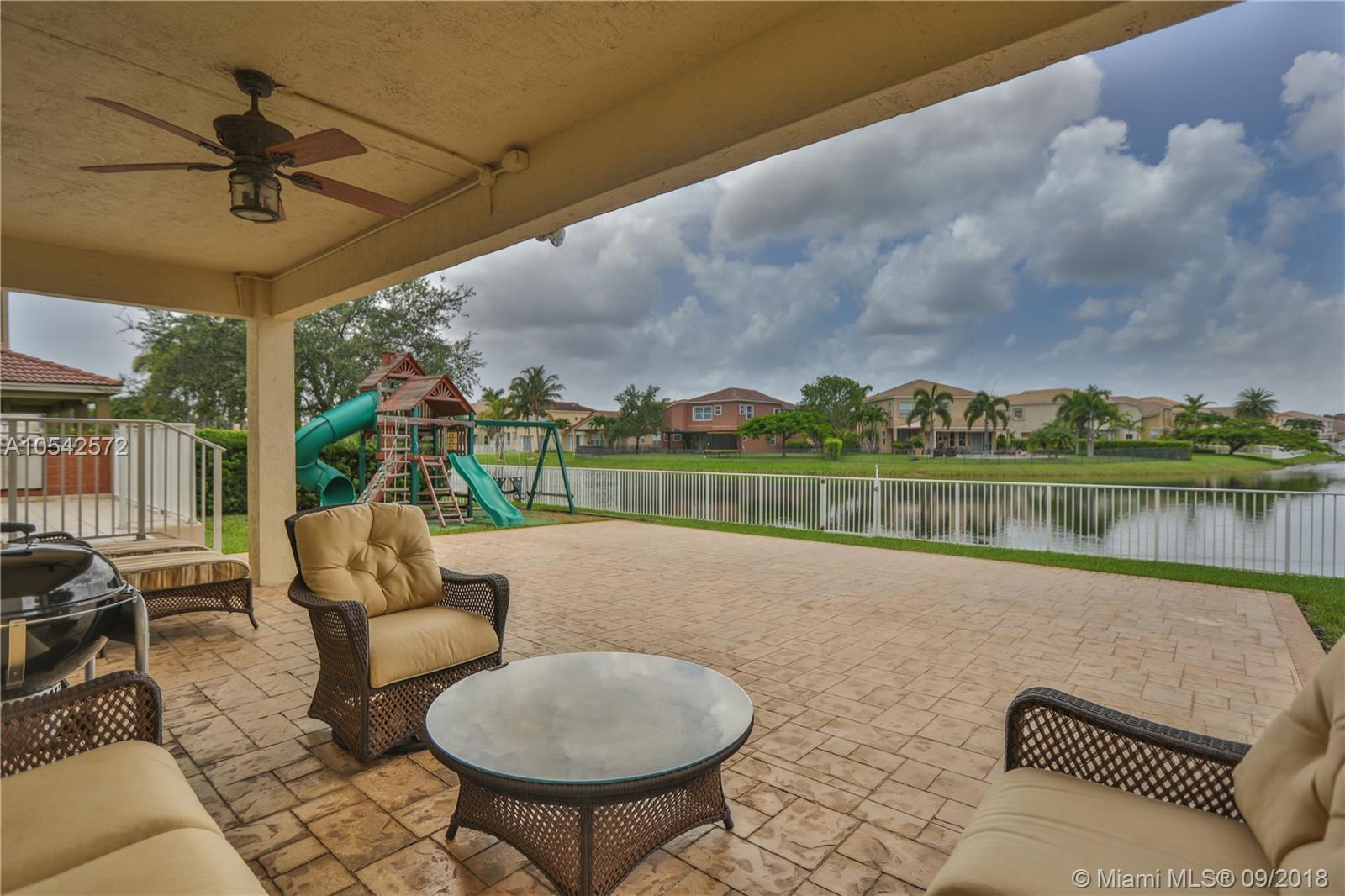 Stunning Lakefront 5 bedroom, three bath home, located in the prestigious community of Riviera Isles in Miramar, FL. Close to I-75. This home has a fabulous open floor concept, high ceilings with spectacular chandeliers and custom drapes/ modern kitchen with SS appliances, and double ovens/ tile on the first floor/wooden staircase/Marble floors all throughout the second floor, huge master suite with 2 custom made walk-in closets/ showroom style 3 car garage/separate laundry area/ Accordion Shutters/fenced backyard. This home is in move-in condition. Also, 24/7 guard, clubhouse, tennis, lagoon-style pool, and a fitness center.