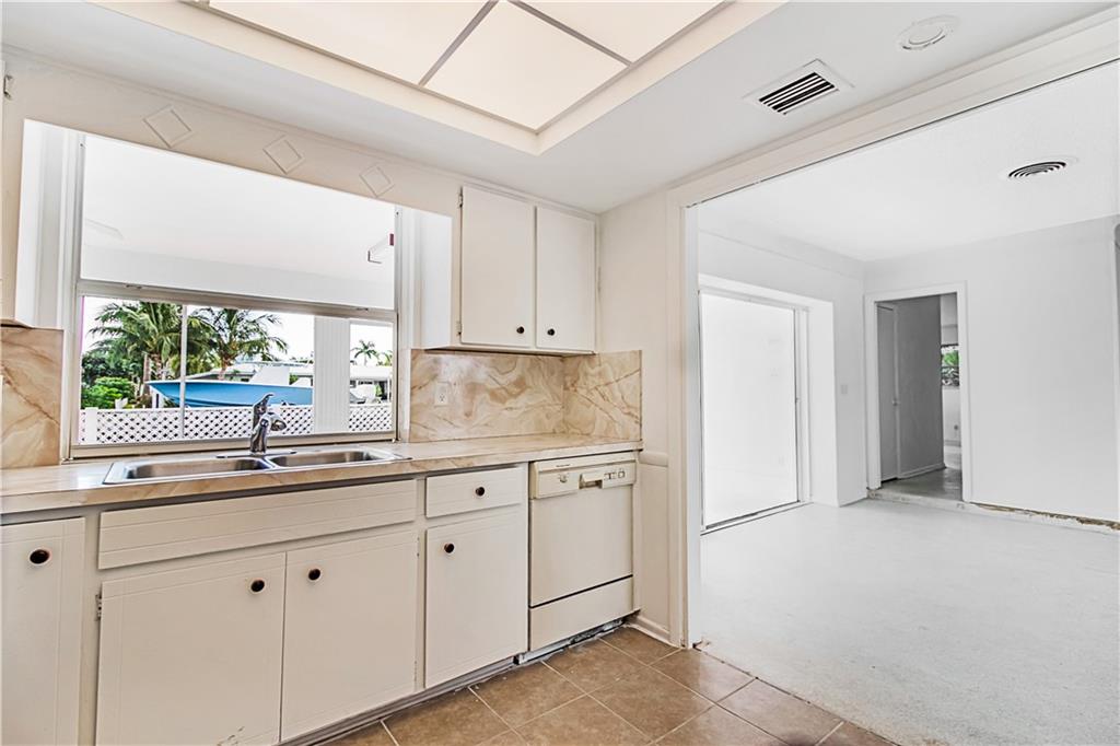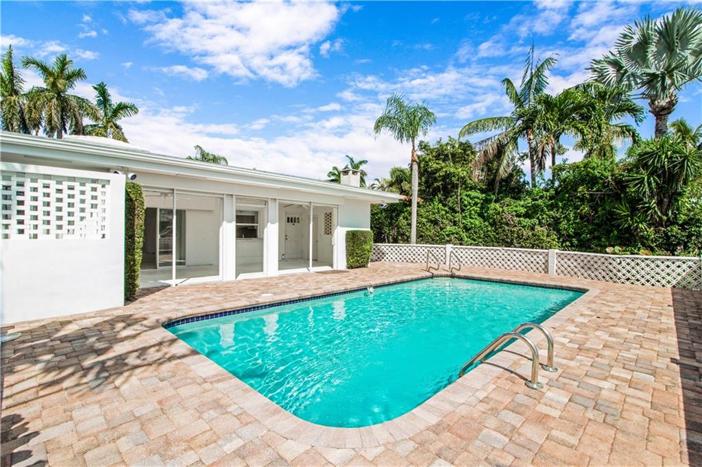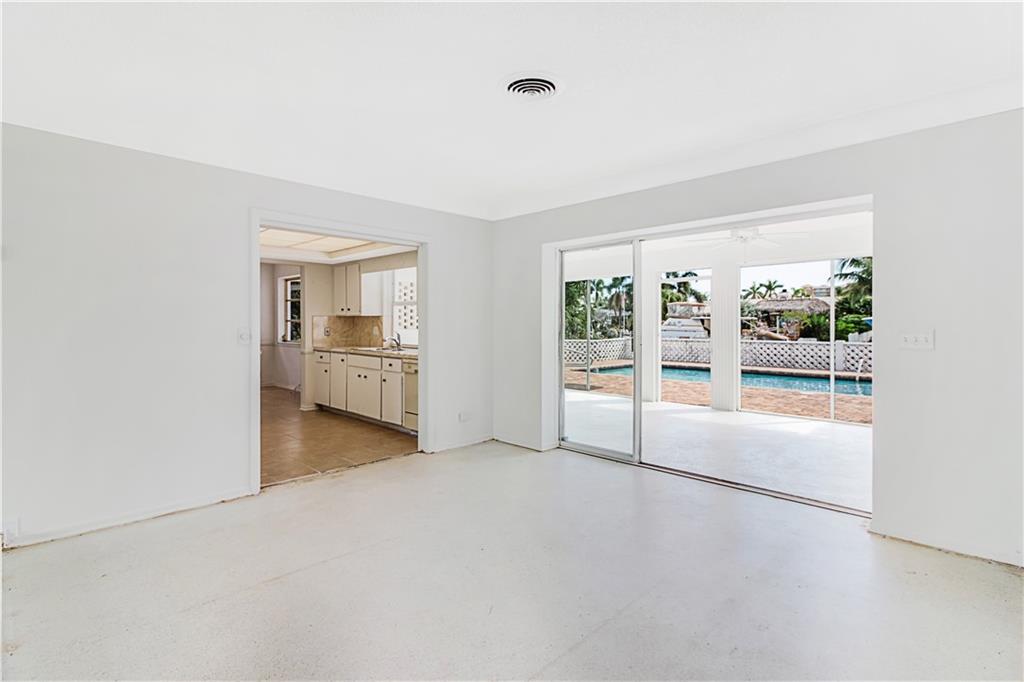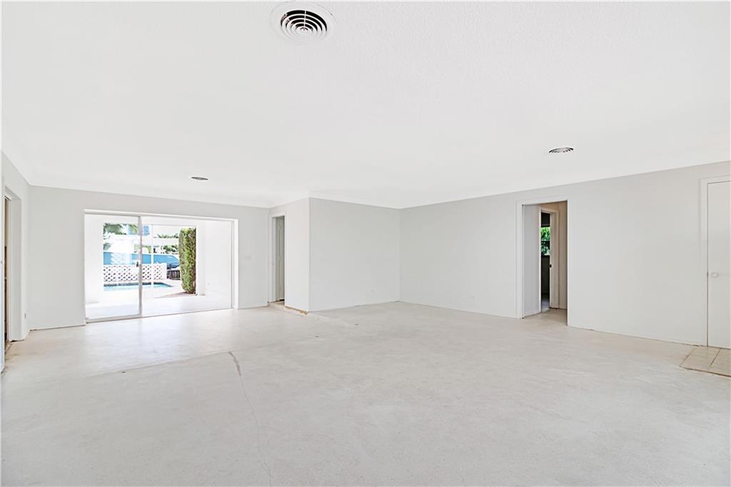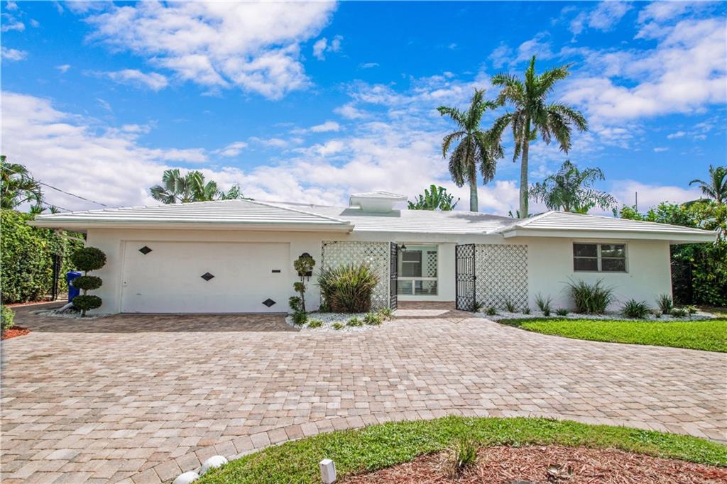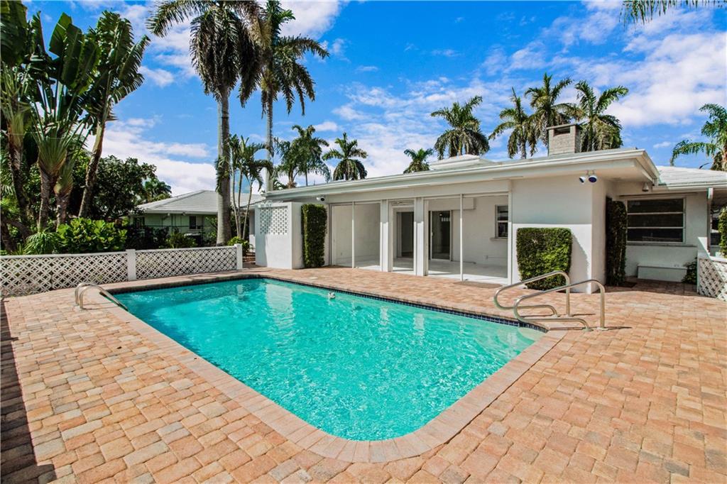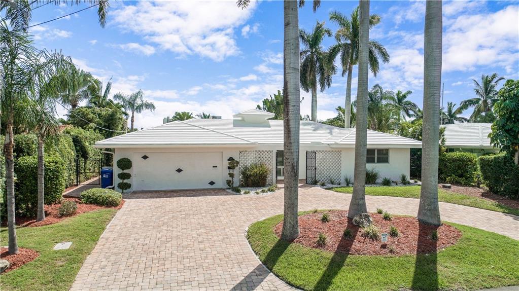 This deep waterfront home is situated on a private island with a gated entry. A day at sea is truly as close as your back door, only minutes to the Intracoastal Waterway & no fixed bridges to the Atlantic Ocean. This residence enjoys an east exposure from the back and tropical breezes over the pool and patio area. The back of the home features a covered loggia with electric hurricane shutters and a built-in bbq. The open floor plan boasts a large great room, 3 bedrooms 2 full bathrooms, a den/office, kitchen and large 2 car garage. This is an outstanding opportunity to update and make this your deep waterfront dream home. Seller has complete set of architectural & engineering drawings ready to submit. Sq. ft. from IMAPP.