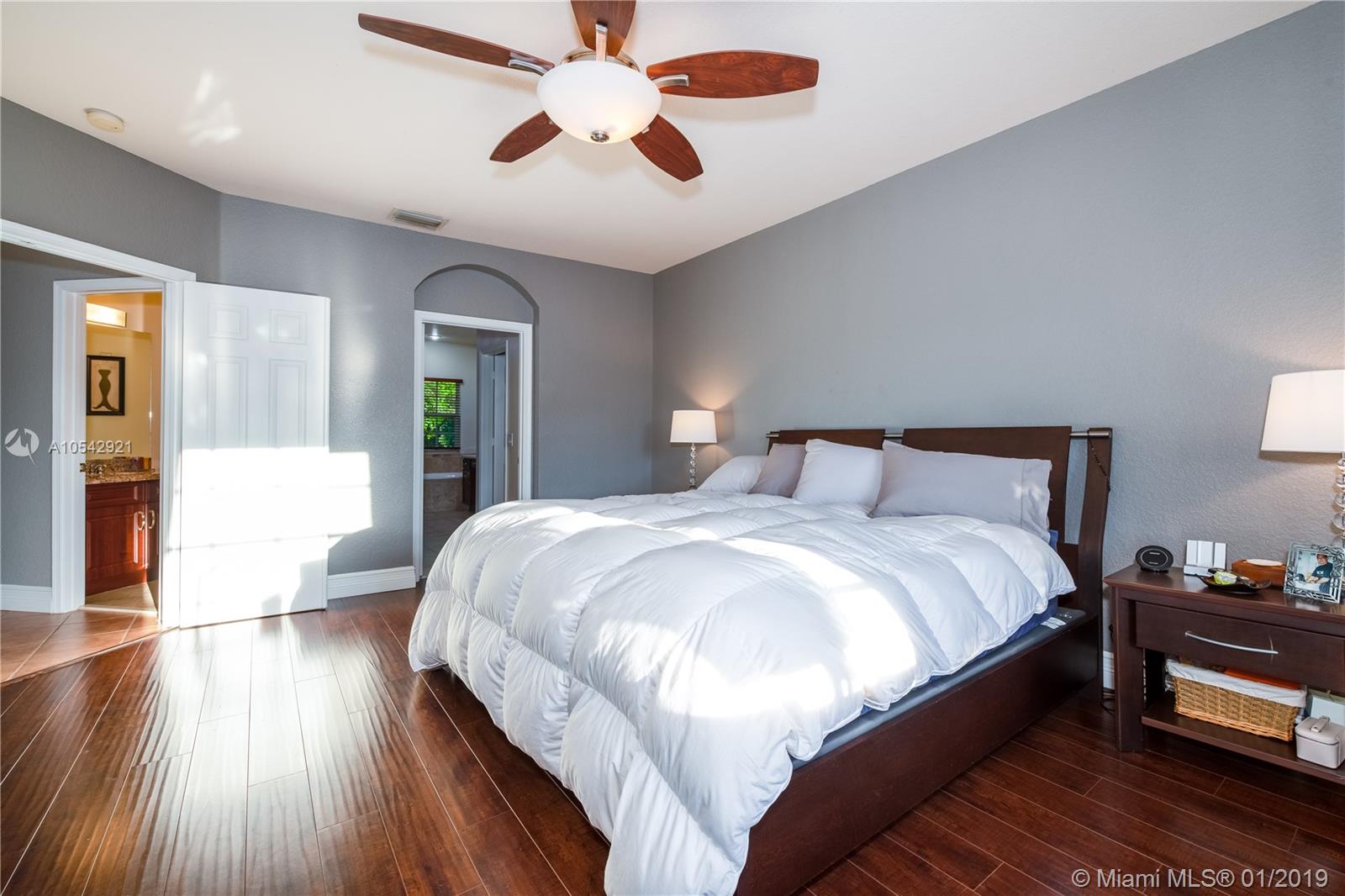 This property is extremely well maintained & comes with beautiful finishing touches such as an upgraded kitchen with corian counter tops, SS appliances, wood cabinets & lots of storage space. A spacious split level floor plan featuring Wood & Tile floors. Newer A/C and Water Heater. Upgraded guest bathrooms. Master Suite on the 2nd floor with a custom built walk-in closet & a large upgraded Master Bath with two granite vanities, Tiled stand-up shower & a separate soaking tub. This home has a huge backyard with a paved patio making a perfect private outdoor space to relax, entertain guests or for kids to play safely. The front curb appeal is enhanced with lush landscaping & a paved driveway leading to the 2 car garage. A MUST SEE!!