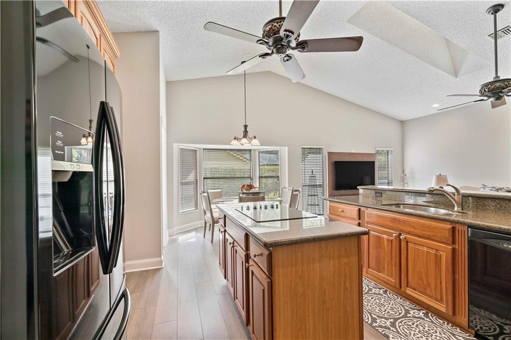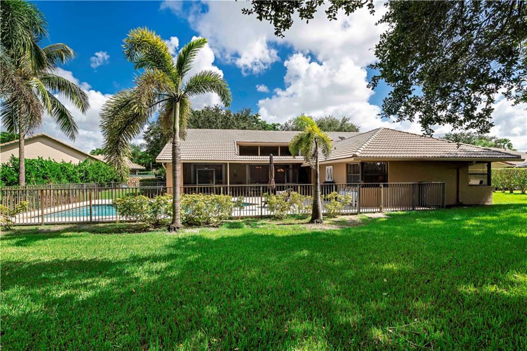 Updated Corniche model in sought after Pine Ridge. 4/2.5 plus office with pool has open floor plan. Kitchen has been remodeled with center cooking island, granite counters and wood cabinets. 2 Bathrooms have been remodeled. Wood like flooring and tile throughout. Pool just Diamond Brited. New hot water. 1 Ac less then a year 2nd less then 5 years. Fenced yard pool. Spacious screened patio. Accordian shutters on sliders. Large lot with lots of yard.