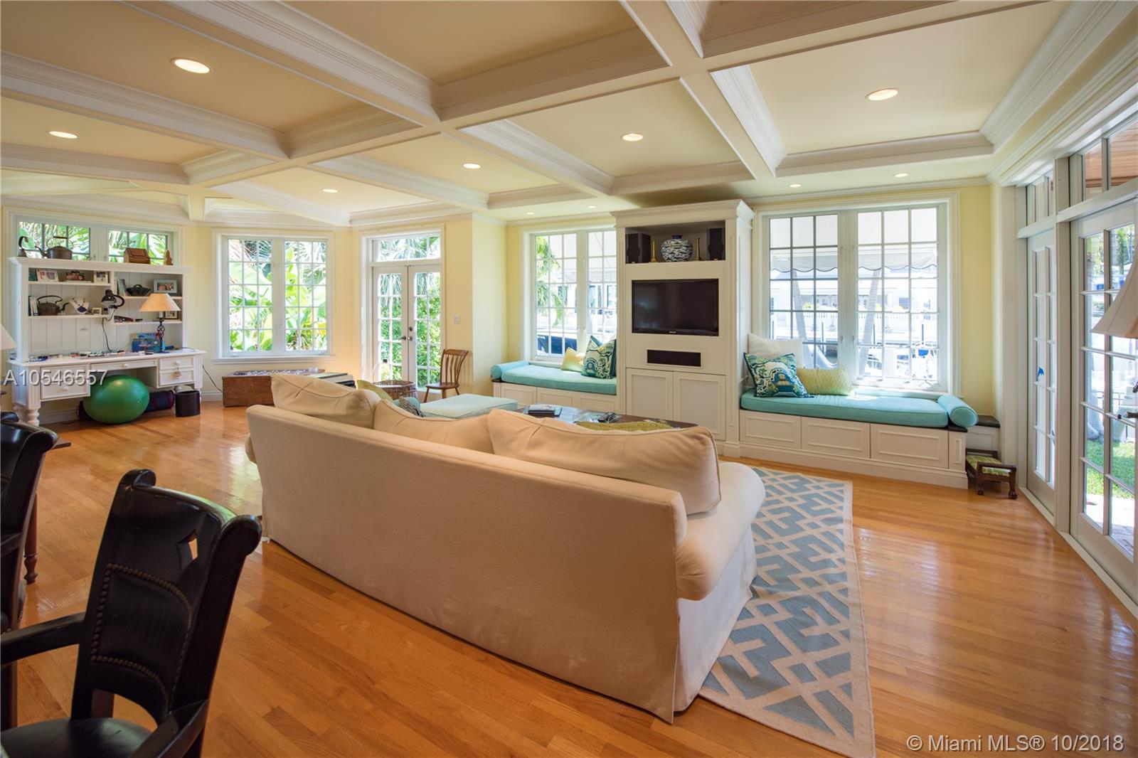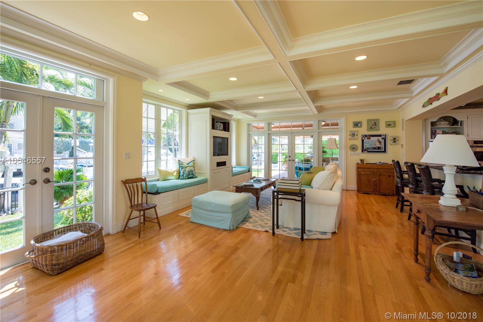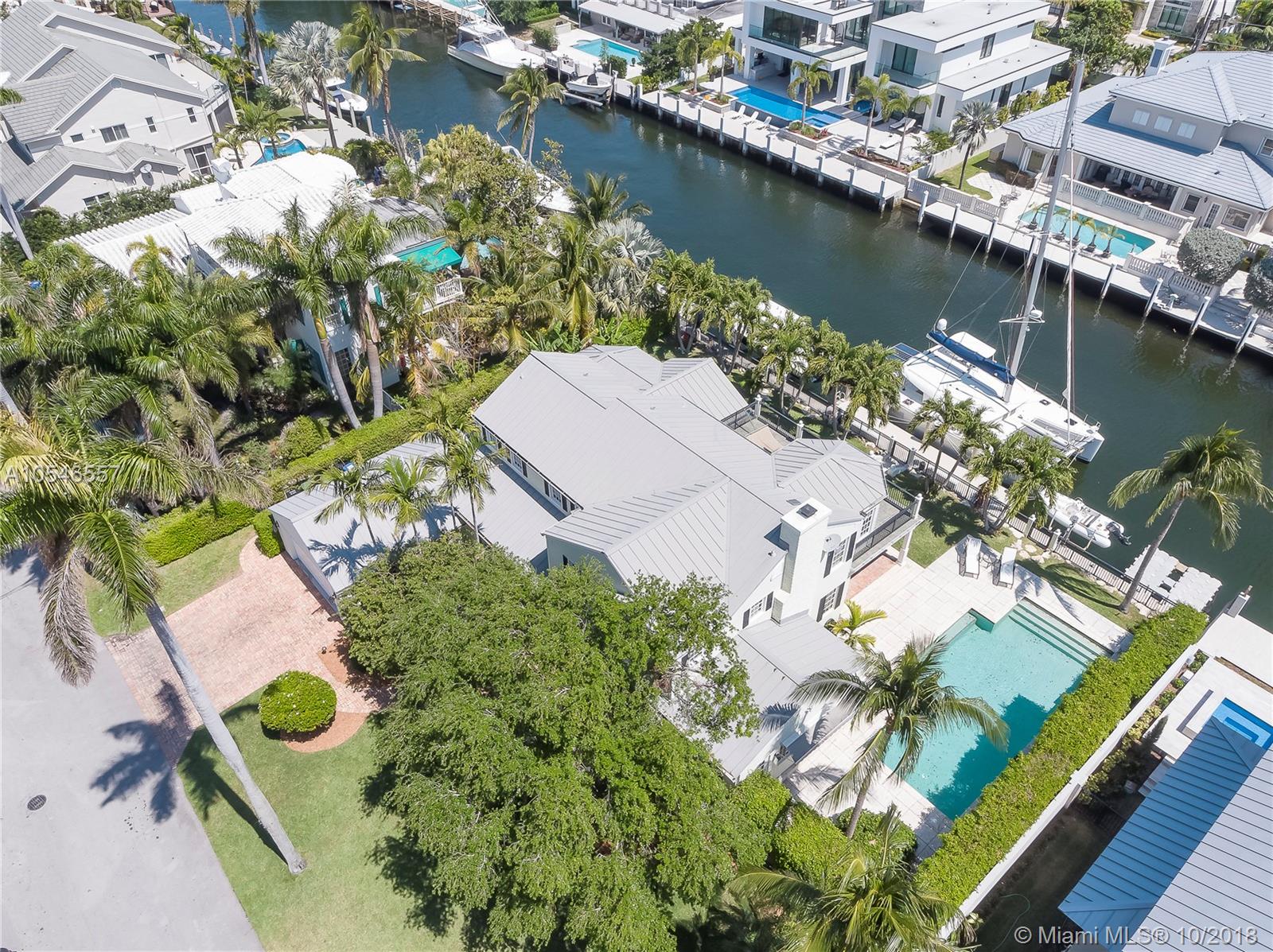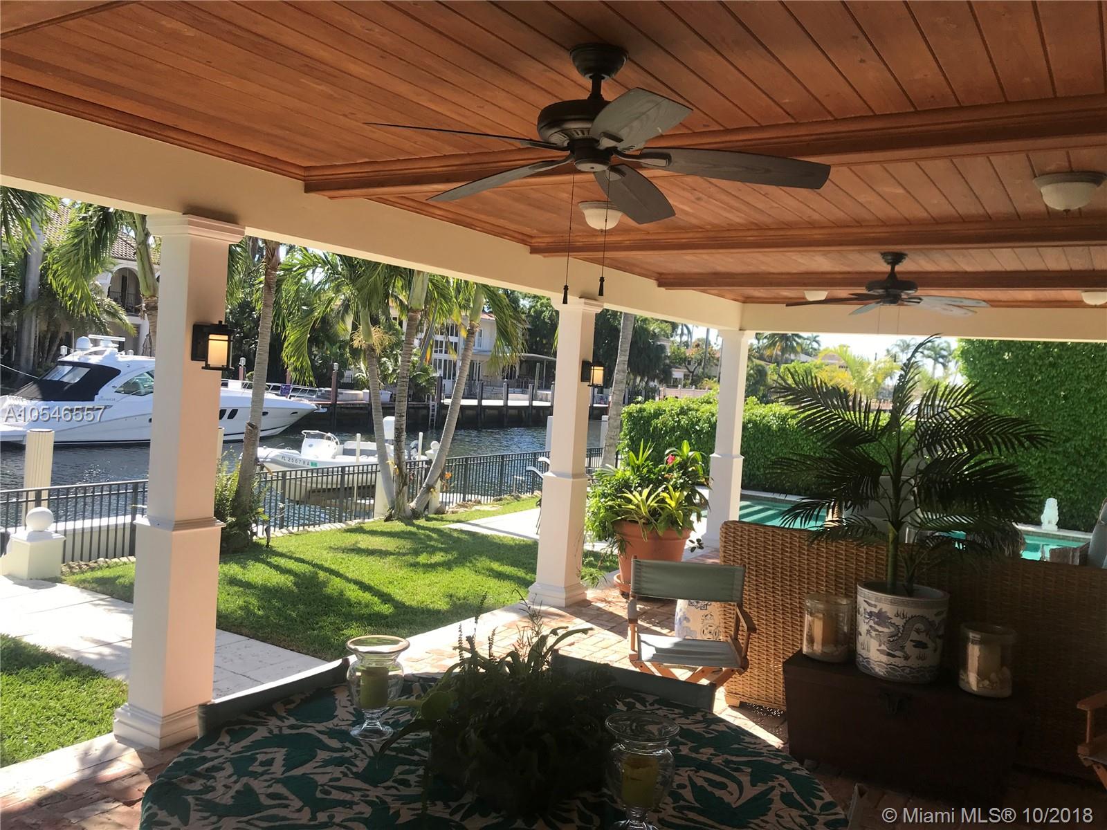 Adorable waterfront home.Well maintained.HAS to be seen to be appreciated! Much larger inside than it looks from the street. More of a warm, inviting HOME than a second home. *Unique home for these isles; NOT Contemporary, NOT Mediterranean...Carolina-Caribbean charming, warm w/Chicago brick porch/patios, columns, standing seam metal roof, 4 bedroom (possible fifth), 5 full baths, half bath, 110' on deepwater 90'+ wide canal, complete renovation Bill Storrs architect, chef's kitchen, open formal dining room, open formal living room w/wood burning fireplace, coffered ceiling in large family/Florida/media room, sunny poolside cabana room/office/possible 5th bedroom w/separate entry, sunning deck off master, gorgeous back covered patio poolside. Southside of Las Olas!! 2 boatlifts &floater.