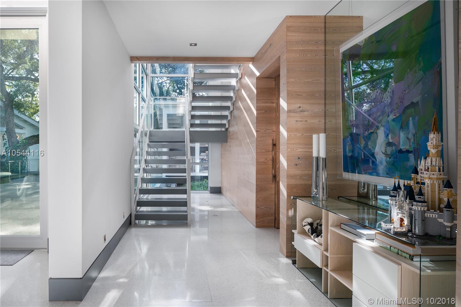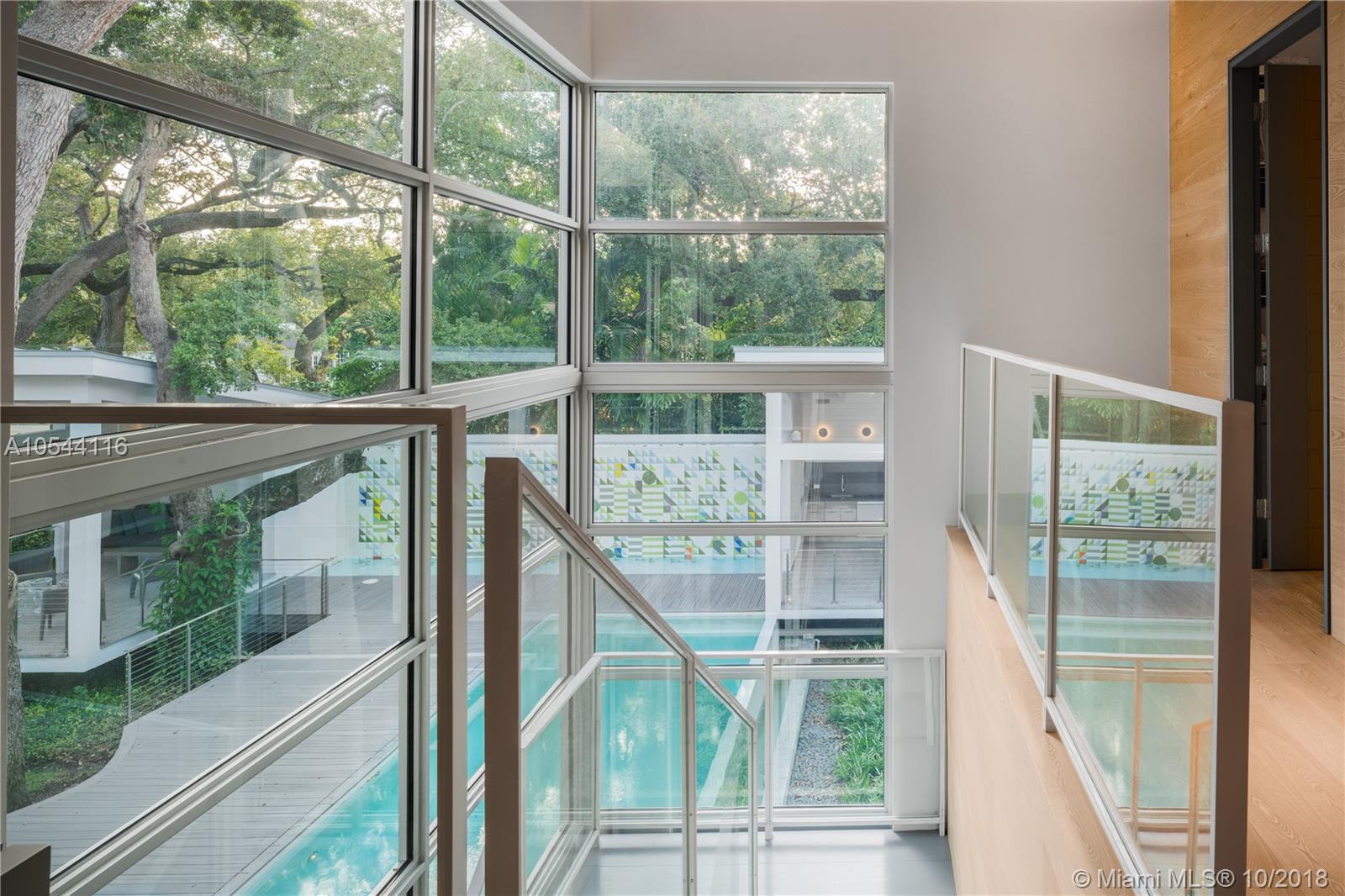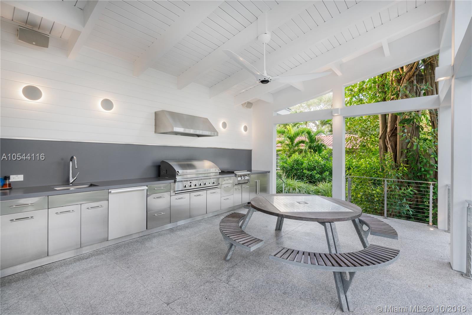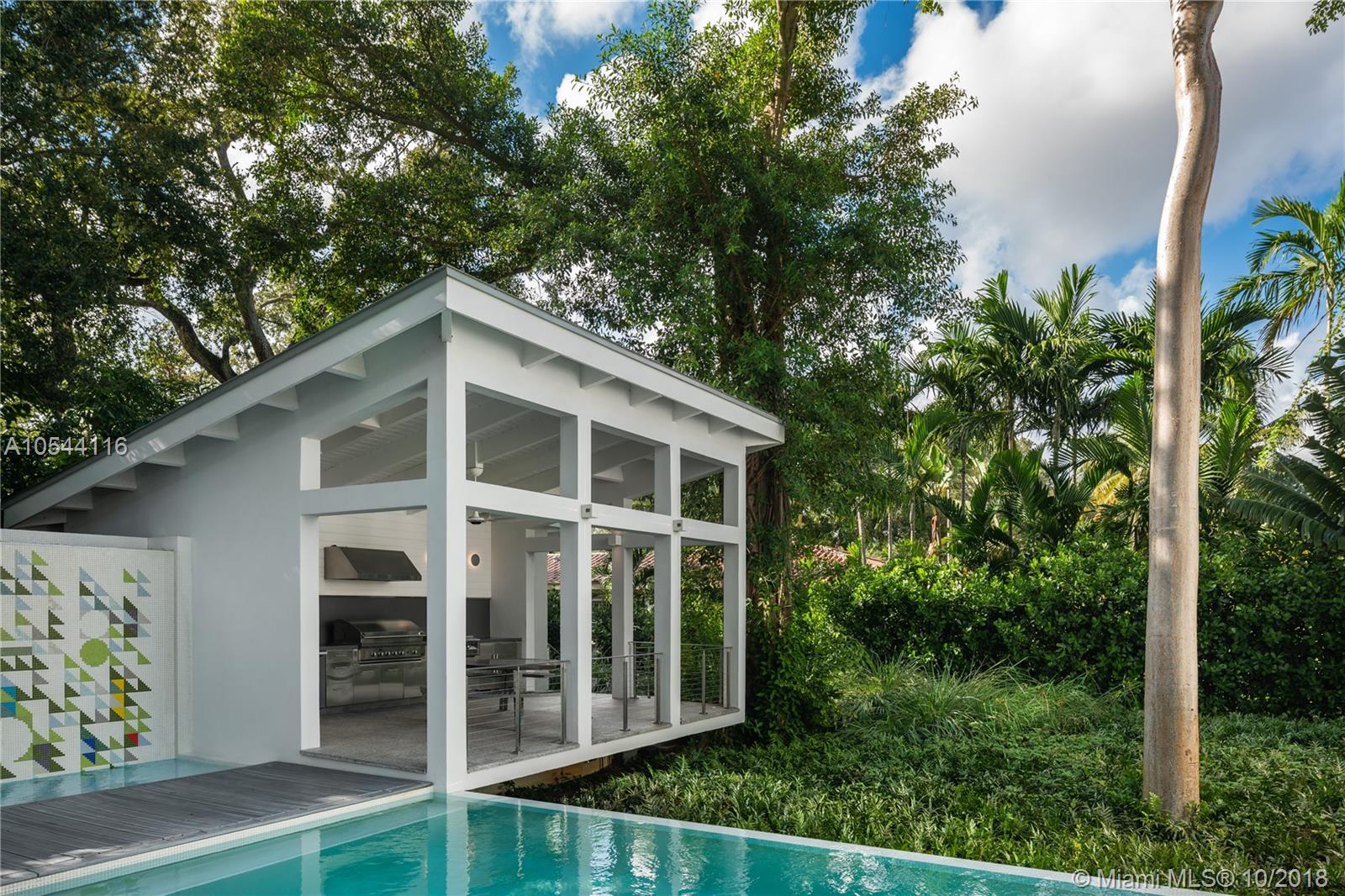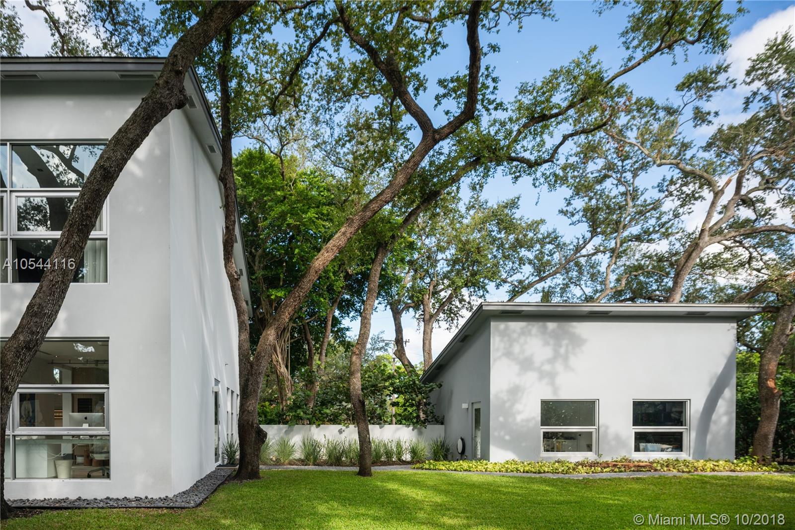 Built in 2015 and designed by Billy Blanco Designs, this sumptuous 6,317 sf modern style home incorporates an open floor plan, soaring ceilings and dramatic floor-to-ceiling windows to achieve its unique design. 2-story home boasting 5 beds, 6 full, 1 half baths includes separate Master wing with impressive spa like bath and closet. Floating outdoor kitchen, full bath and lounge overlook the infinity pool and lush half acre with amazing mature trees. Gourmet kitchen with Quartz countertops, Sub-Zero, Wolfe and Miele appliances with built-in barista system. Features include cove lighting, Terrazzo, Ash Wood flooring and wall panels. Wet bar with dual wine cooler. Light filled study. Spacious media room. Located on a quiet street, in the best section of Miami Shores, one block from the bay.