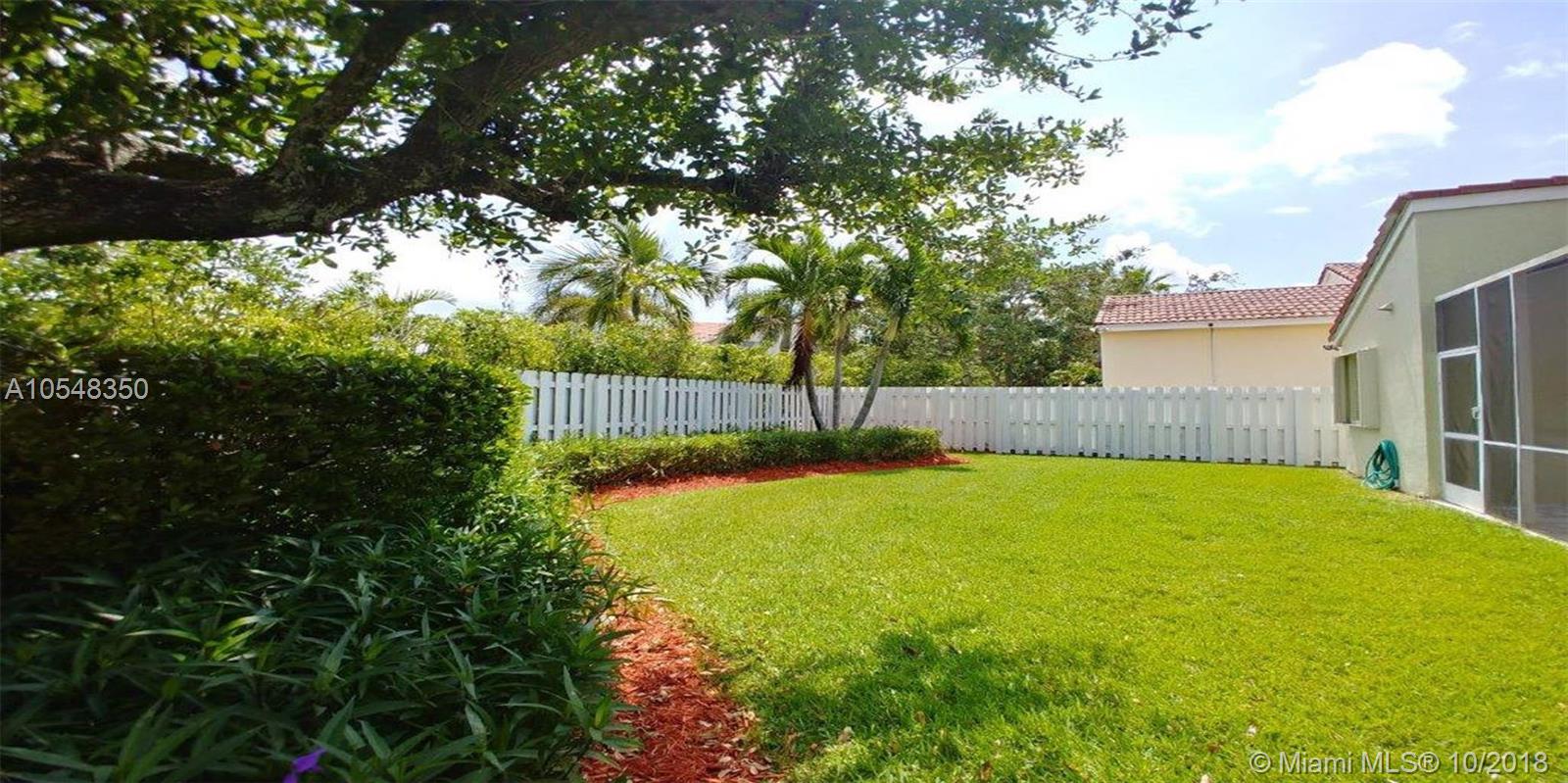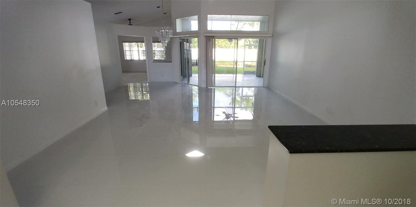 Exquisite 1 story single family residence w/ 3 bedrooms, 2.5 baths+ family room. Brand new porcelain flooring in living areas and hallways. This is a very spacious Bloomfield Three model in prestigious community The Falls. Features kitchen with granite counter tops and S.S. appliances, recessed lighting w/ charming breakfast area. Bright master bathroom. Extraordinary screened patio overlooking a pleasant and private backyard w/room for a pool., totally fenced in and ideal for entertaining. New accordion shutters. Exterior walls painted about 2 years ago. Amenities include a great pool, playground and basket ball court. Conveniently located, close to great schools, park, major roadways and much more.