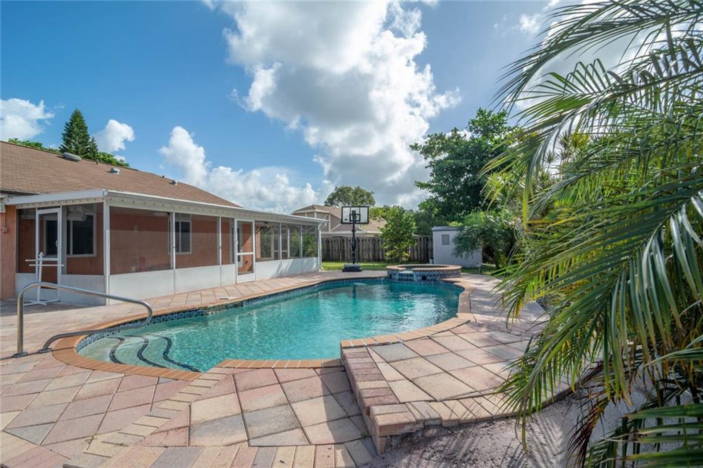 Nestled on a huge lot (10,703) this cozy 3/2 features a backyard oasis! Large pool, Jacuzzi, huge deck, multiple patios, covered/screened rear patio, fenced yard, basketball hoop, Lantern lights, & fruit trees! This is THE yard for entertaining South Florida style! Updated kitchen/granite guest bath, breakfast nook, tiled floors, walk in-master closet w/cabinetry, linen closet, French Doors. Newer Roof (2010), Newer A/C and hot water heater, Brand new Fridge & Stove; Microwave 1 year. Interior; and Exterior Front just freshly painted. Entire house, roof, patios & driveway just pressure cleaned. Low yearly HOA. Lots of room to grow and add an Addition later! Beautiful parks & shopping nearby! Excellent Weston area schools! Priced for minor TLC!