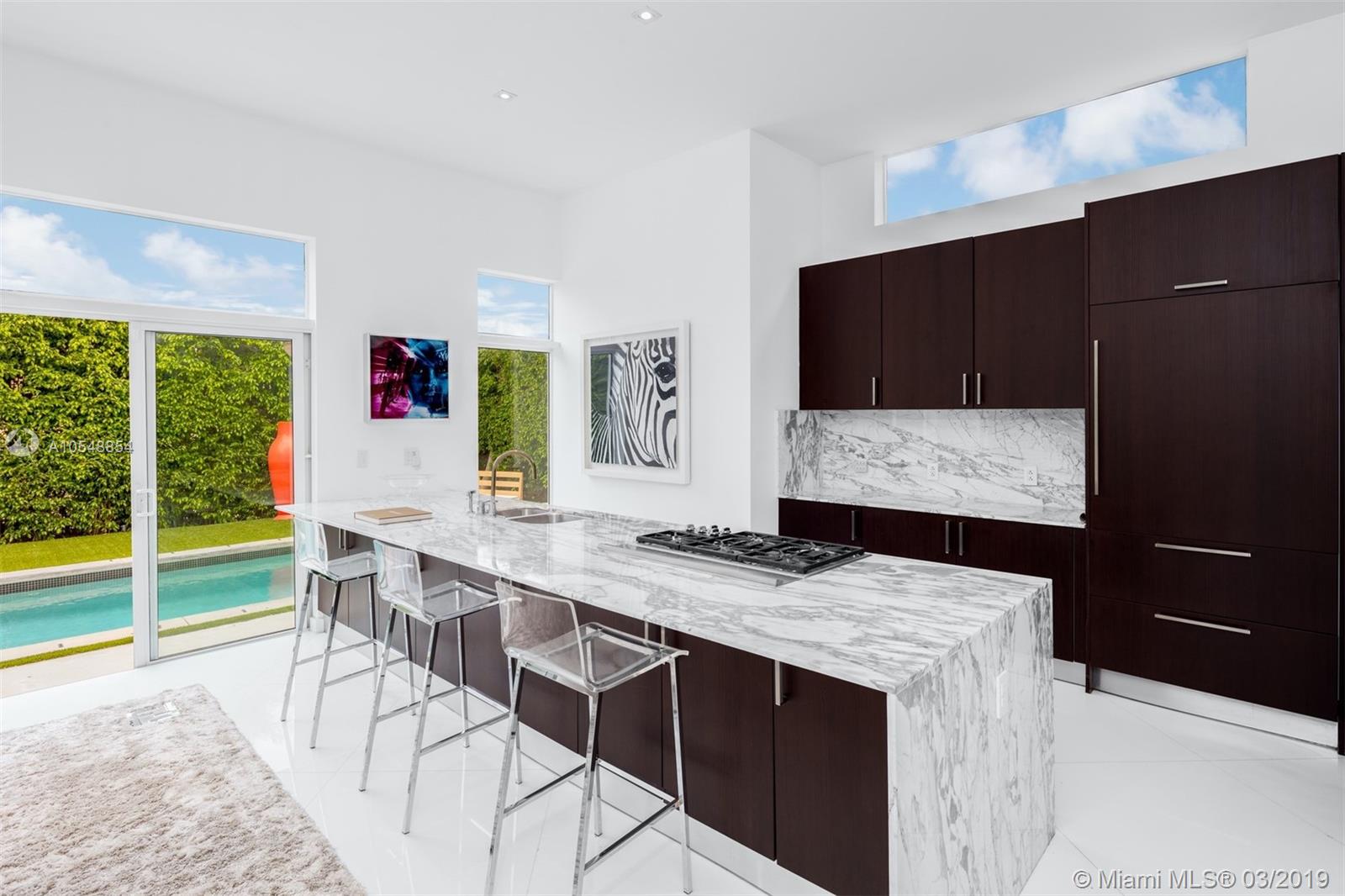 Fully remodeled mid-century modern home located on the prestigious Venetian Islands featuring 4 Beds / 4.5 baths on a private corner lot. Upon entry to the home you are greeted by an abundance of natural light, lush green foliage and an open floor plan to seamlessly connect the indoor & outdoor living spaces. Enjoy a spacious mater suite with white oak floors, dual walk-in closets, steam shower and a private terrace with jacuzzi. The open chef's kitchen features marble countertops, gas Wolf cooktop & Sub Zero appliances. Staging by Luxury Living available for purchase (Not included in Asking Price) featuring Fendi Cas*, Bentley Home and Trussardi Cas*. Other upgrades include Sonos surround sound, electronic door and gate access with security cameras for the utmost seclusion.