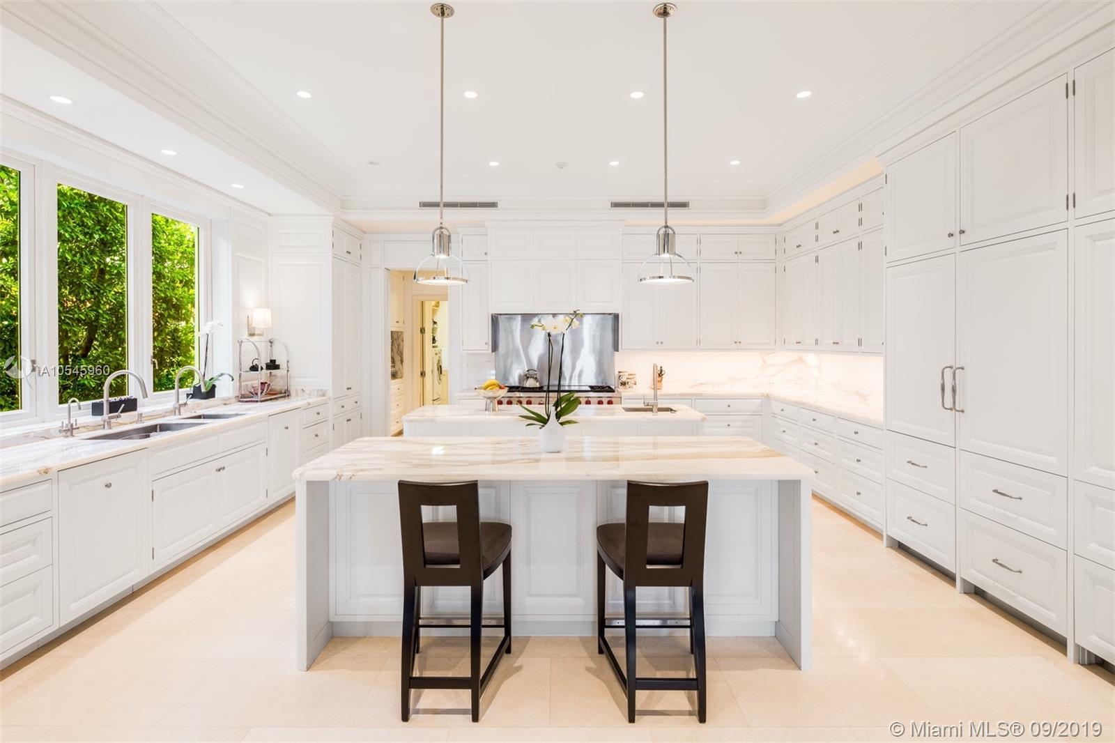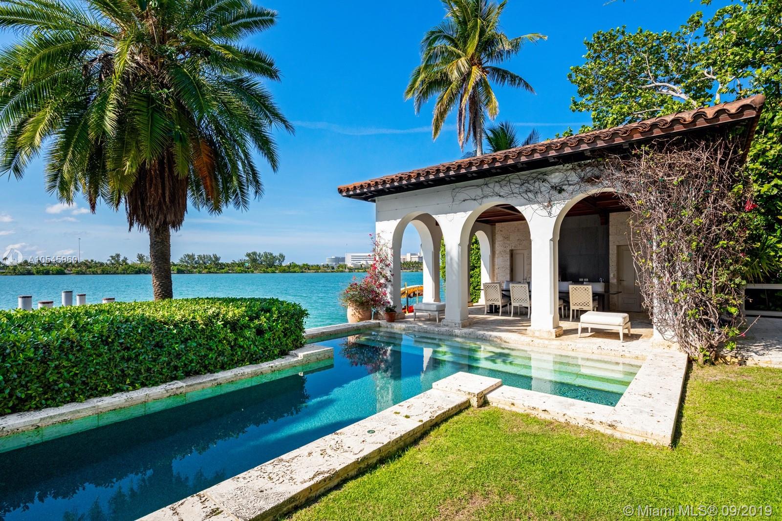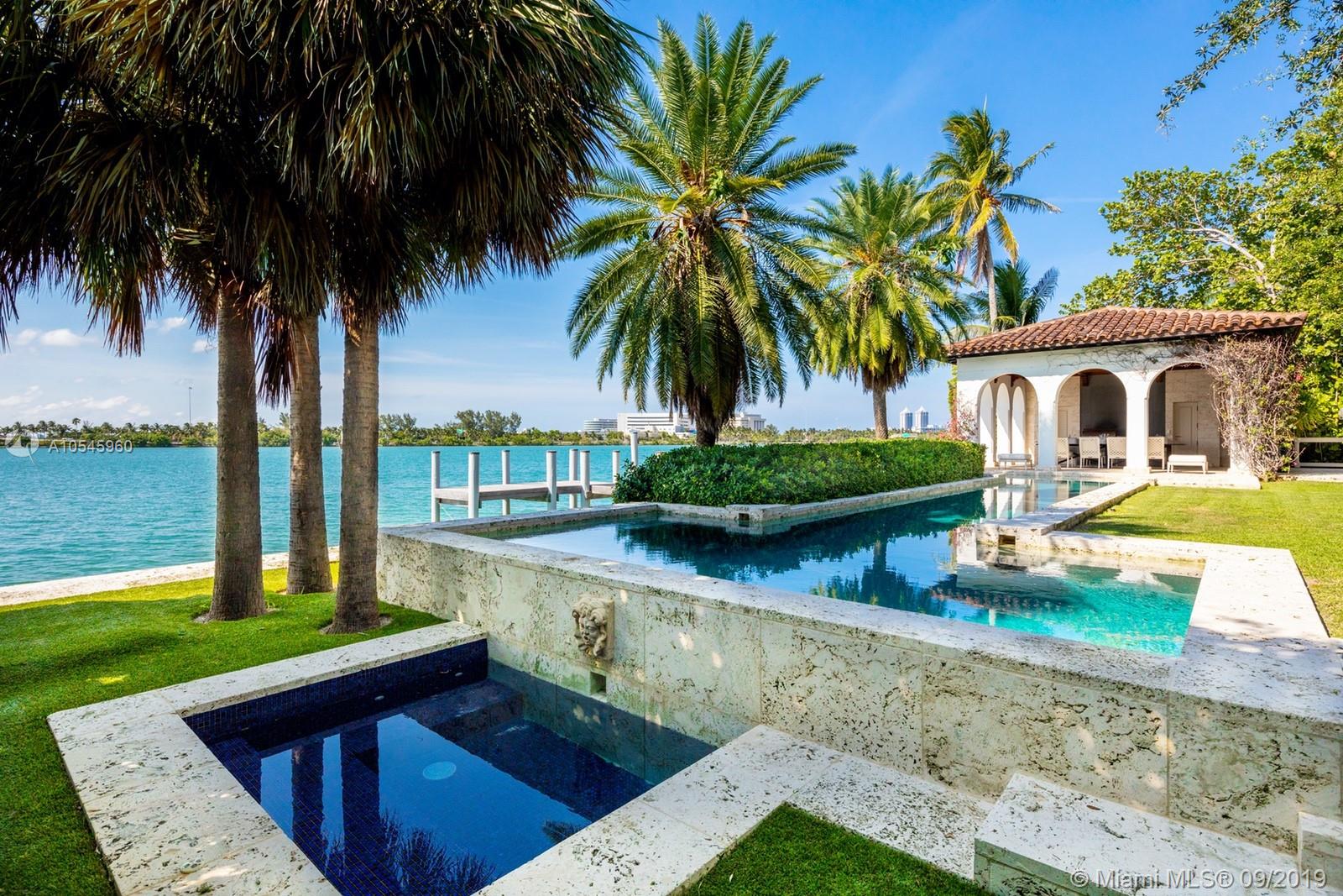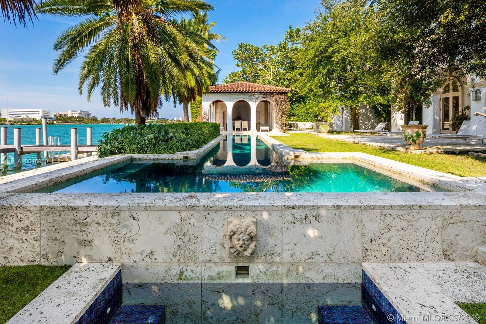Impeccable waterfront estate located in the heart of Miami Beach on desirable Sunset Island I. This meticulously curated property is the epitome of luxury with 116 ft of waterfrontage, 6 bedrooms, 7 full and 3 half bathrooms, summer kitchen, saltwater pool and spa, and endless water views throughout. Exquisite soaring archways frame large living and multiple dining/entertaining spaces. The gourmet eat-in chef’s kitchen features top of the line stainless steel appliances, double islands and opens into the spacious family room. Enjoy tranquil water views from the master suite complete with hardwood floors, two spacious walk-in closets and serene master bath with dual vanity and soaking tub. Additional features include library/office, 2 car garage and separate guest house.