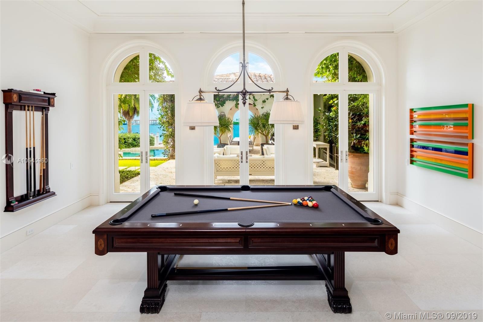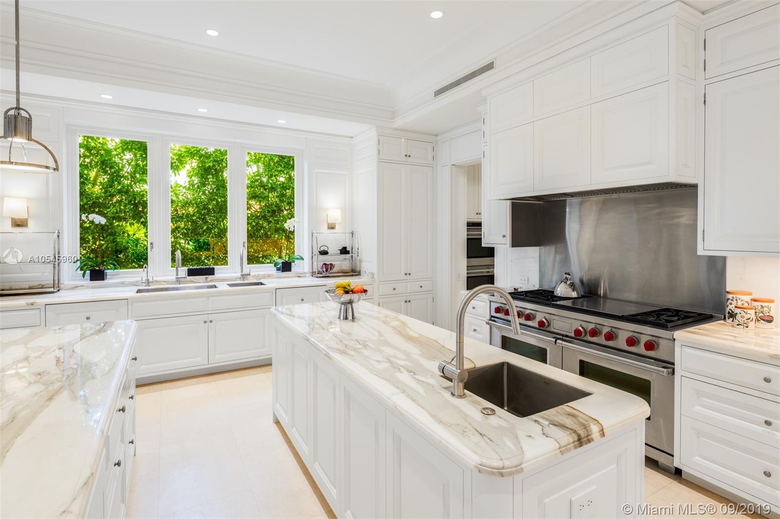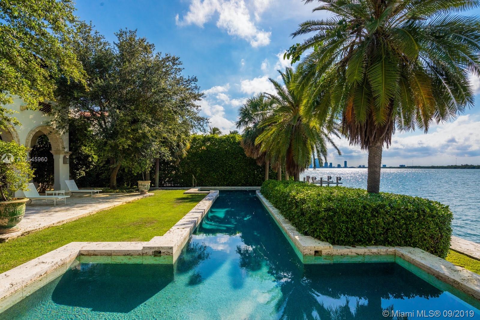 Impeccable waterfront estate located in the heart of Miami Beach on desirable Sunset Island I. This meticulously curated property is the epitome of luxury with 116 ft of waterfrontage, 6 bedrooms, 7 full and 3 half bathrooms, summer kitchen, saltwater pool and spa, and endless water views throughout. Exquisite soaring archways frame large living and multiple dining/entertaining spaces. The gourmet eat-in chef’s kitchen features top of the line stainless steel appliances, double islands and opens into the spacious family room. Enjoy tranquil water views from the master suite complete with hardwood floors, two spacious walk-in closets and serene master bath with dual vanity and soaking tub. Additional features include library/office, 2 car garage and separate guest house.