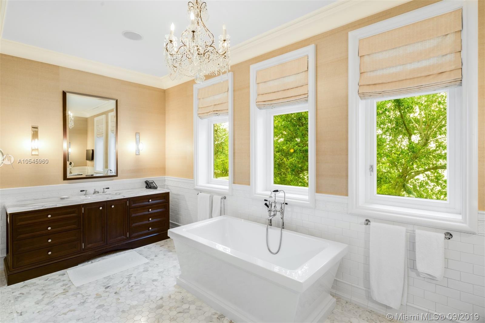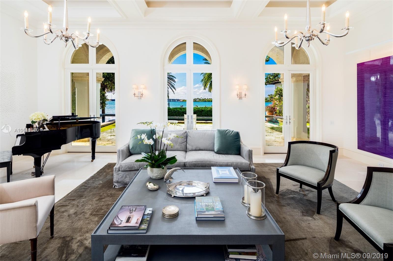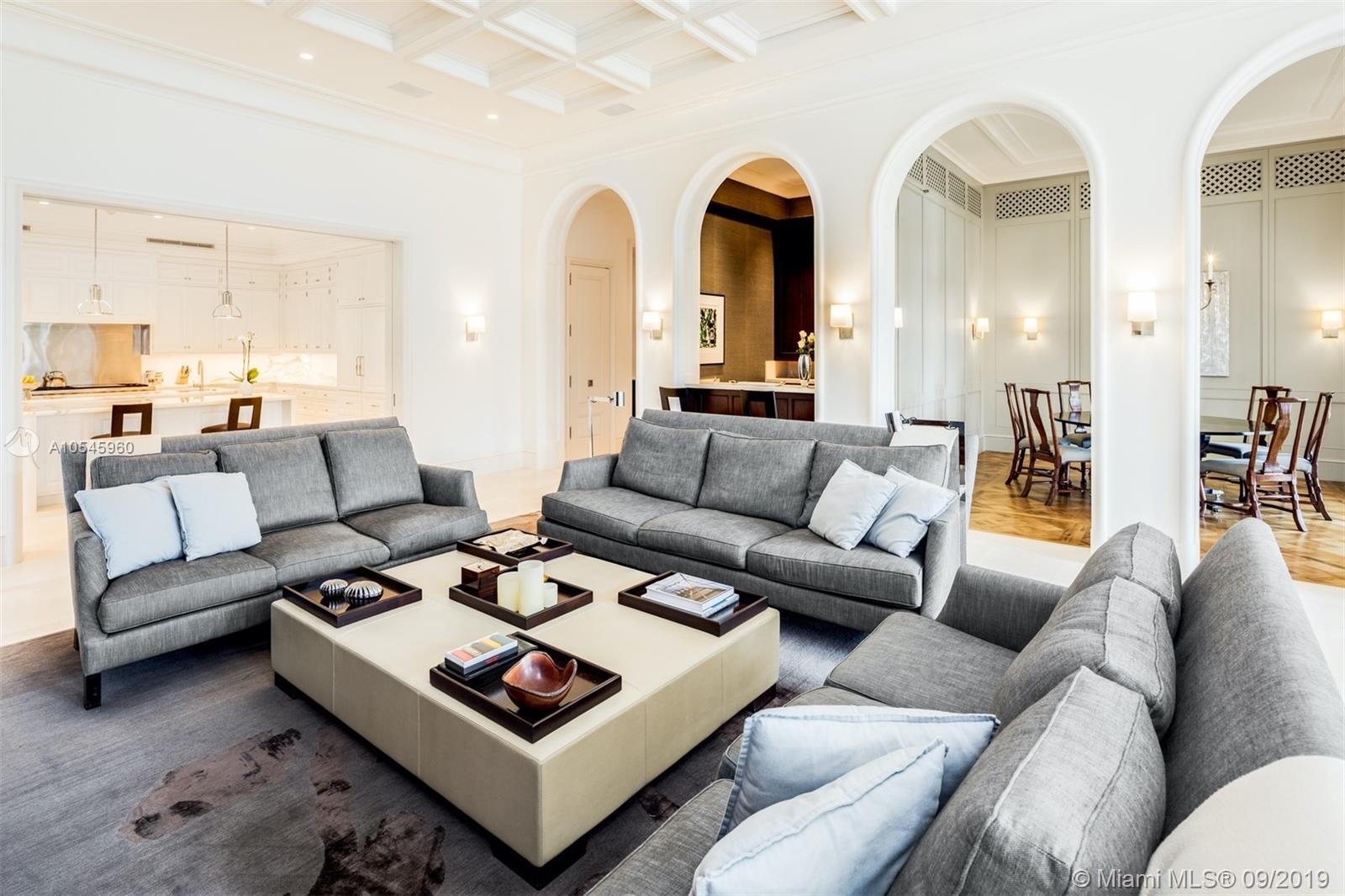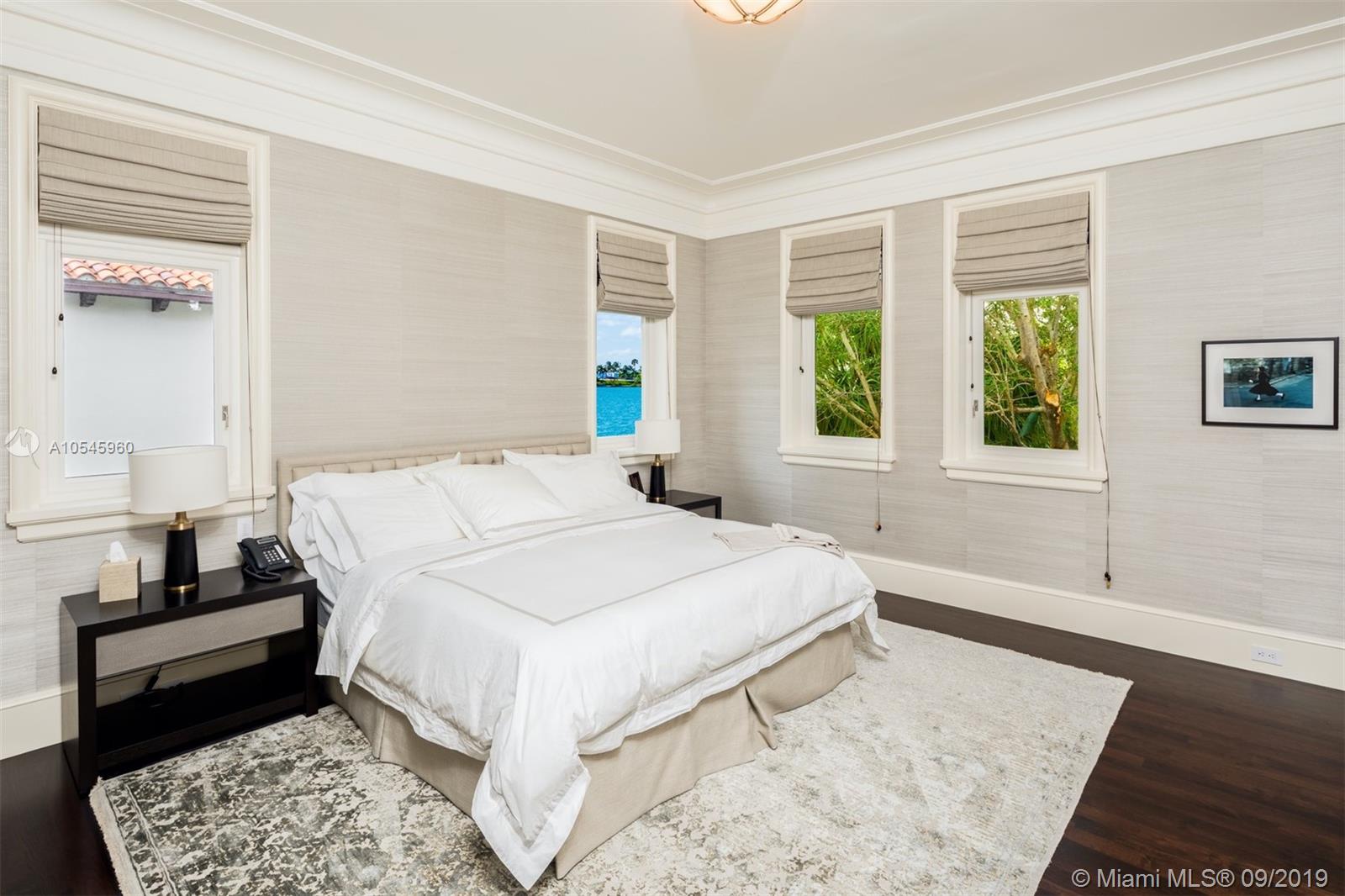 Impeccable waterfront estate located in the heart of Miami Beach on desirable Sunset Island I. This meticulously curated property is the epitome of luxury with 116 ft of waterfrontage, 6 bedrooms, 7 full and 3 half bathrooms, summer kitchen, saltwater pool and spa, and endless water views throughout. Exquisite soaring archways frame large living and multiple dining/entertaining spaces. The gourmet eat-in chef’s kitchen features top of the line stainless steel appliances, double islands and opens into the spacious family room. Enjoy tranquil water views from the master suite complete with hardwood floors, two spacious walk-in closets and serene master bath with dual vanity and soaking tub. Additional features include library/office, 2 car garage and separate guest house.