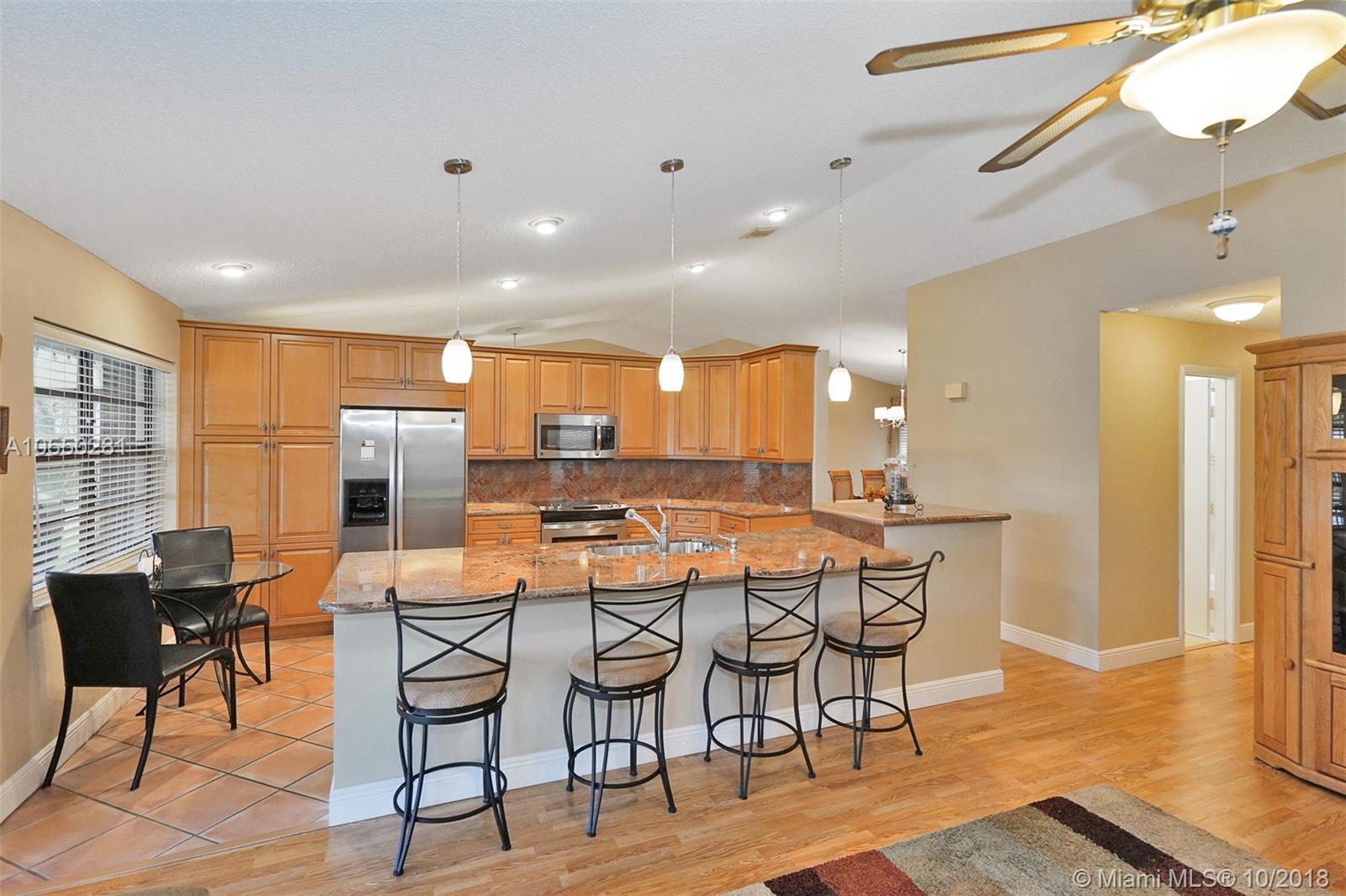 STUNNING TRUE 4 BEDROOM 2 BATH HOME WITH A SPLIT BEDROOM FLOOR PLAN IN A GREAT FAMILY NEIGHBORHOOD. THIS BEAUTIFUL ONE STORY HOME HAS AN OPEN LAYOUT WITH VAULTED CEILINGS & LOTS OF NATURAL LIGHT. THE KITCHEN IS COMPLETELY RENOVATED WITH GRANITE COUNTERS AND STAINLESS APPLIANCES, A BREAKFAST AREA AND OVERSIZED ISLAND THAT OPENS INTO A LARGE FAMILY ROOM WITH TRANQUIL LAKE VIEWS. IT HAS A TWO CAR GARAGE WITH ACCORDION HURRICANE SHUTTERS, UPDATED BATHROOMS, WOOD & TILE FLOORING THROUGHOUT THE HOME, NEWER ROOF & A/C PLUS MUCH MORE! THE MASTER SUITE HAS DOUBLE DOOR ENTRY, A WALK IN CLOSET AND A REMODELED BATH THAT HAS DUAL SINKS AND SHOWER. CENTRALLY LOCATED TO 595 , SHOPPING AND MORE. DO NOT MISS THIS HOME BEFORE IT'S GONE.