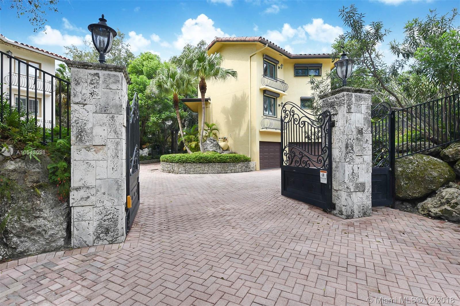 Unique opportunity to live in the North Grove, this Bay View Villa residence is located in a secure, gated enclave across from Coral Reef Yacht Club. This stunning four bedroom, four bathroom has a top-of-the-line kitchen with gas cooktop, rich marble counter-tops and a quaint breakfast nook surrounded by cherry wood cabinets. The 18' ceilings provide lots of light to pour into each spacious living area. Banks of impact glass French doors open to your very own private heated salt swimming pool newly constructed and surrounded by plenty of entertaining space to dine al fresco. Two car garage, ample closets, and low HOA fees make this single family home a show stopper. Skip over to Starbucks, Sushi Maki and all of Coconut Grove's dining, shopping & entertainment. A must view!