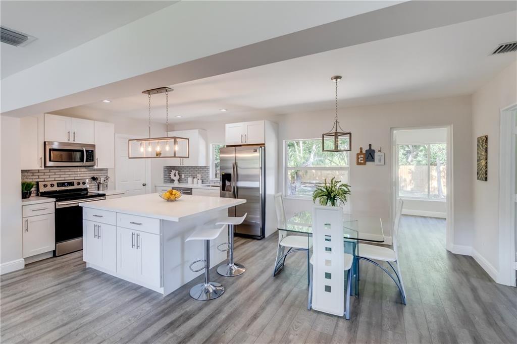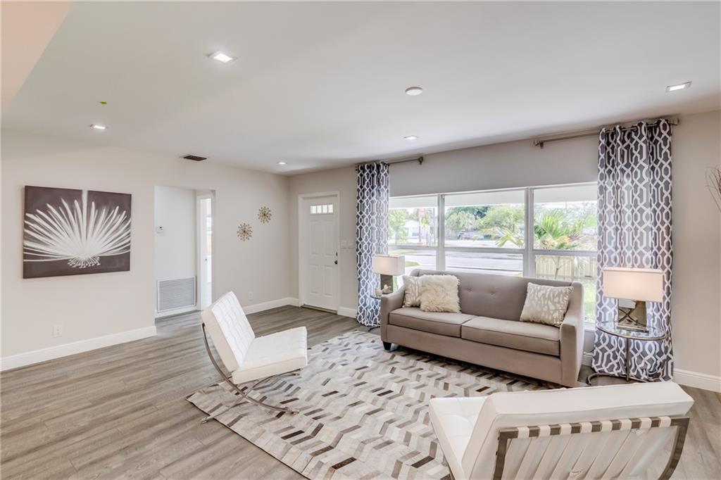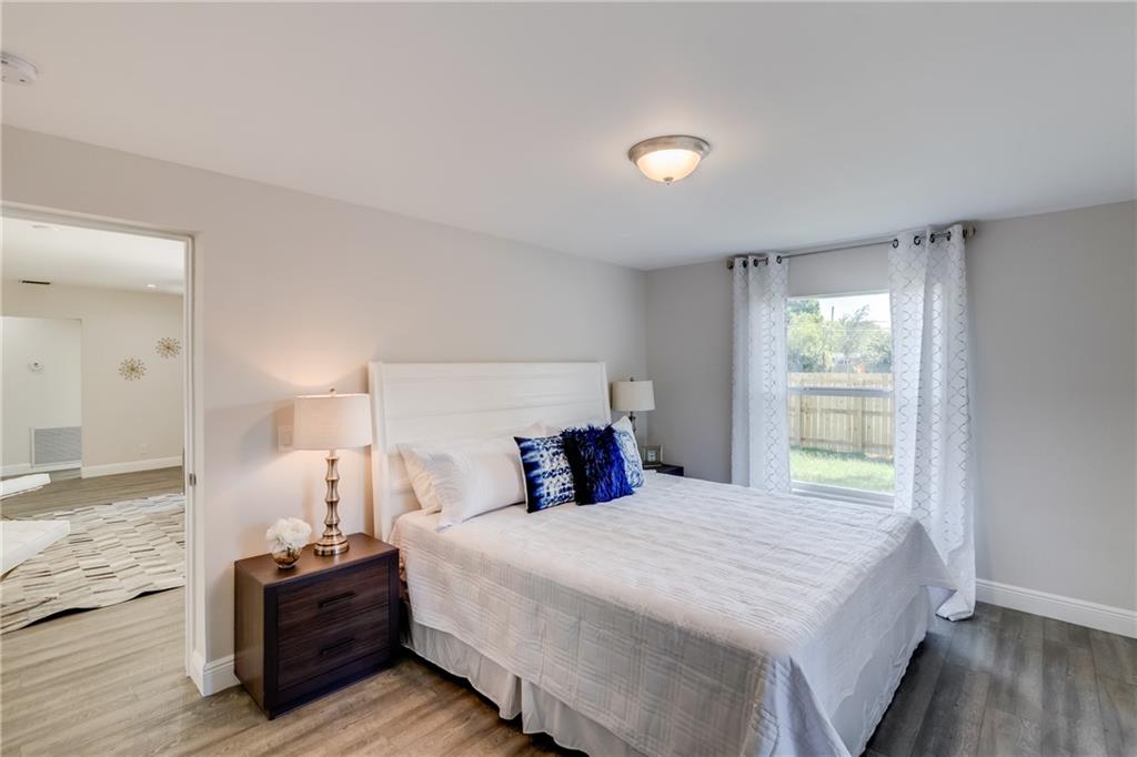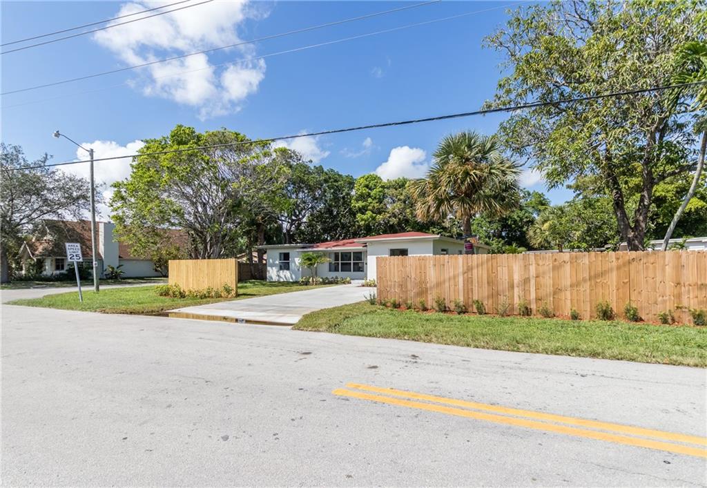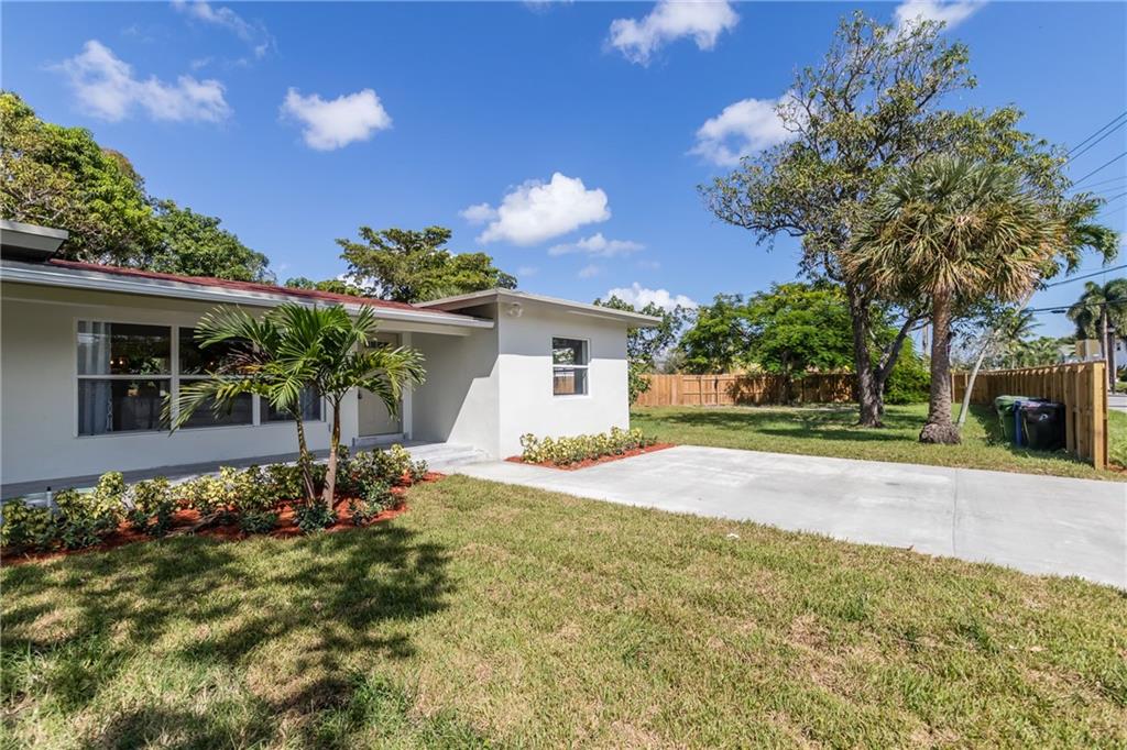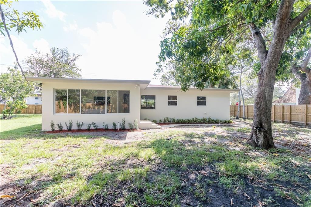 Absolutely stunning renovation in Lauderdale Park just around the corner from Wilton Manors!!! Large open concept 3 bedroom 2 full bathroom home with bonus room in the rear, overlooking the nearly half-acre fenced corner lot. Gorgeous island kitchen with 3-D glass back-splash, solid cabinetry, stone counter tops, stainless steel under-mount sink, disposal and all new appliances. Bathrooms built to be loved with fresh clean look, modern tiled showers, solid cabinetry, stone counter-tops and brand new fixtures. Whole house is trimmed in bright white, cool-look neutral paint and new plank flooring throughout. Master quarters has its own AC unit to make your sleeping space an icebox! All new electric, plumbing, central AC, roof, fencing and much more...