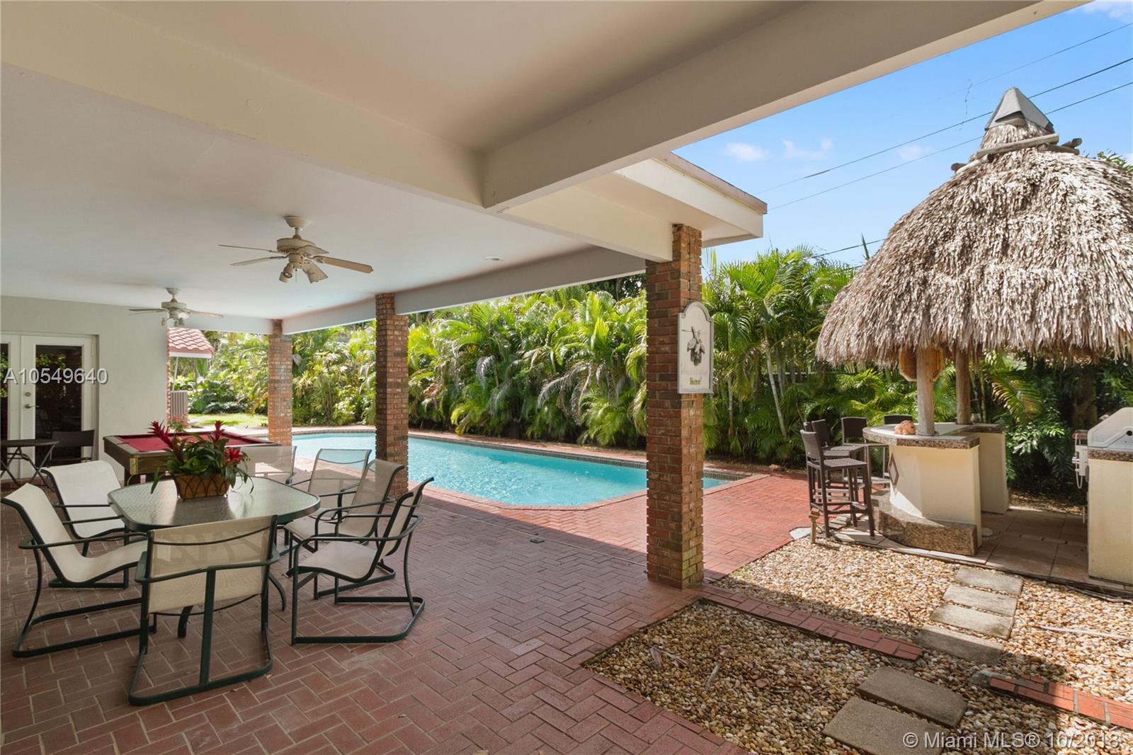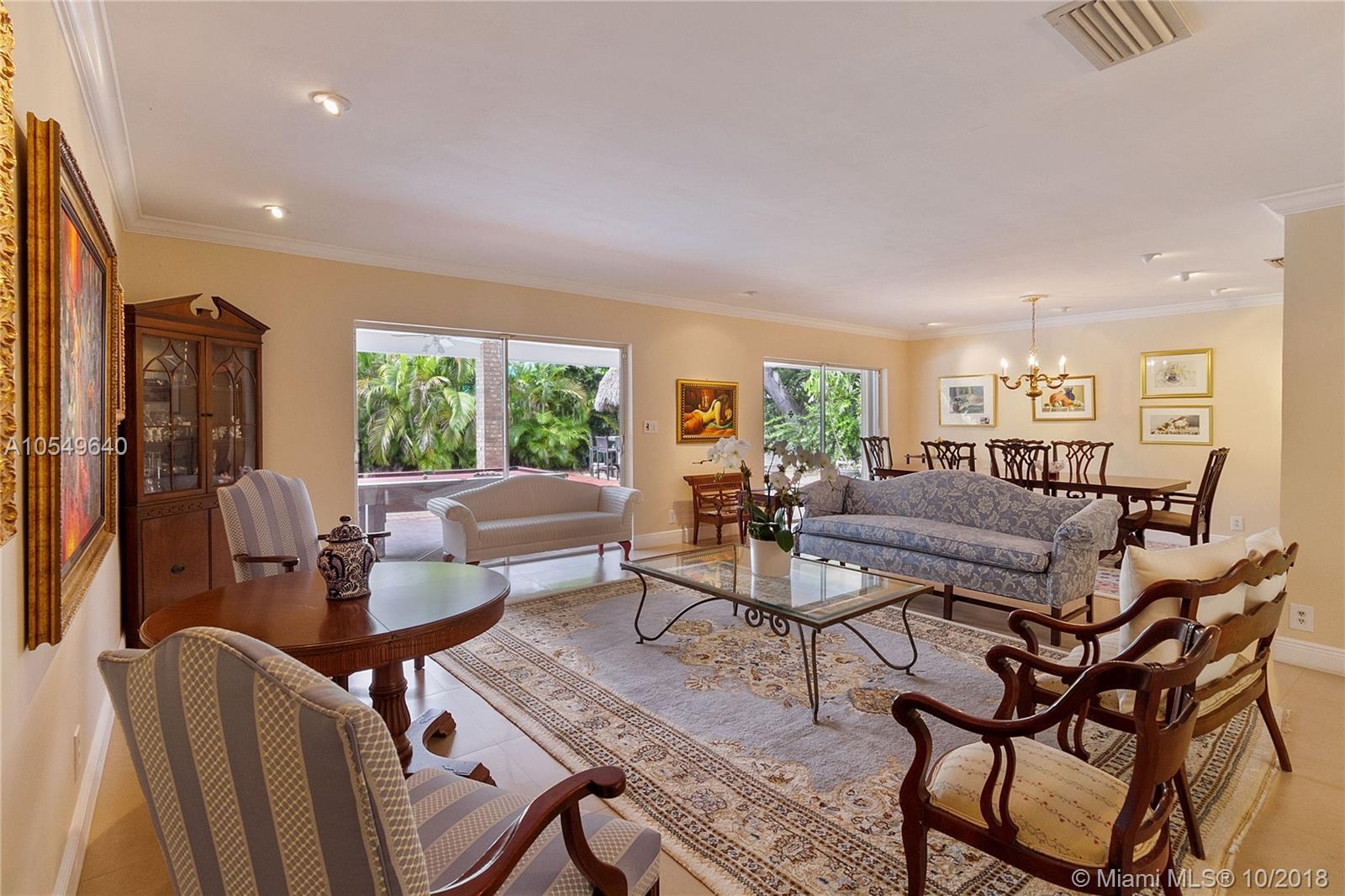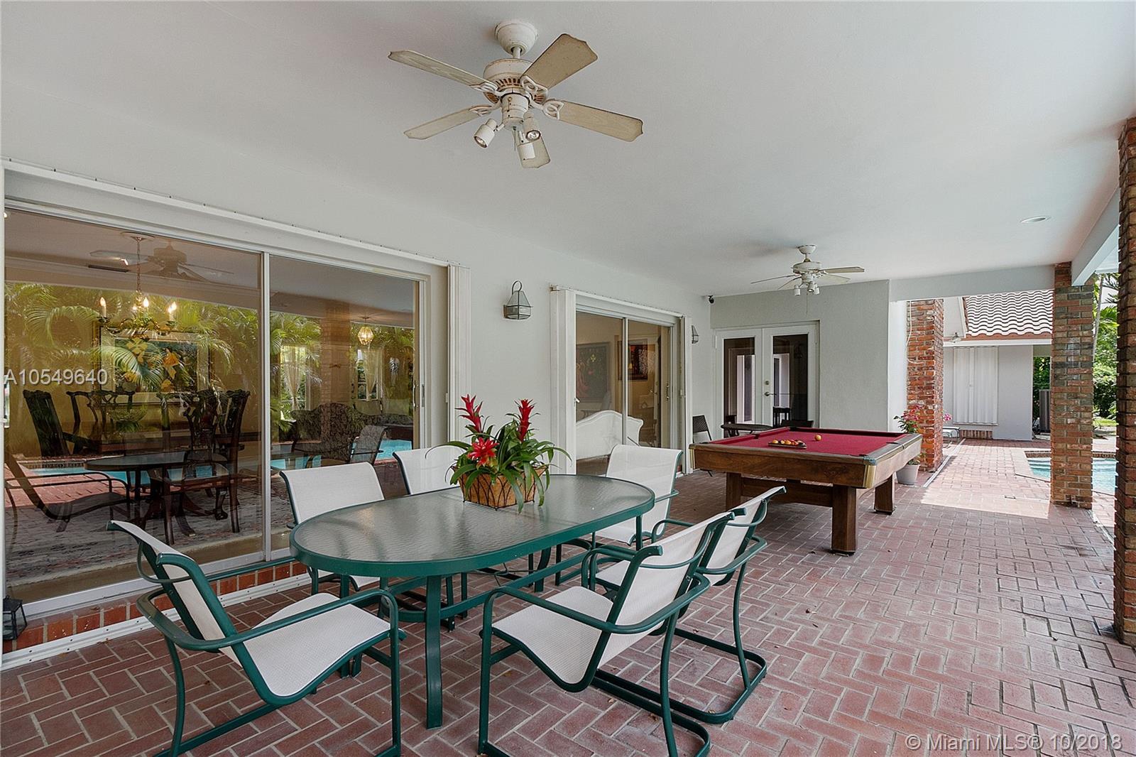 LOCATION, LOCATION, LOCATION! This North Pinecrest Estate is nestled at the end of a quiet CUL-DE-SAC with large mature trees. A beautiful home with 5 bedrooms + Den / 3.5 Bathrooms / 2 car garage, oversized Pool updated Kitchen with wood cabinets, granite, SS appliances, gourmet gas Dacor Range, high vaulted wood beam ceilings, 24x24 rectified Italian tile, Impact Windows/Shutters, New A/C and 2014 Roof. The master bedroom retreat has Bamboo floors and Spa-Styled Bathroom with Private Courtyard. Outdoor areas and chickee hut Bar-B-que area provides enjoyment for full Florida living. Secluded, yet in the mist of everything. Walk to the Royal Palm Tennis Club, or be minutes away to Trader Joe’s, great restaurants, Dadeland Mall, Metrorail, major thoroughfares and the Best Schools.