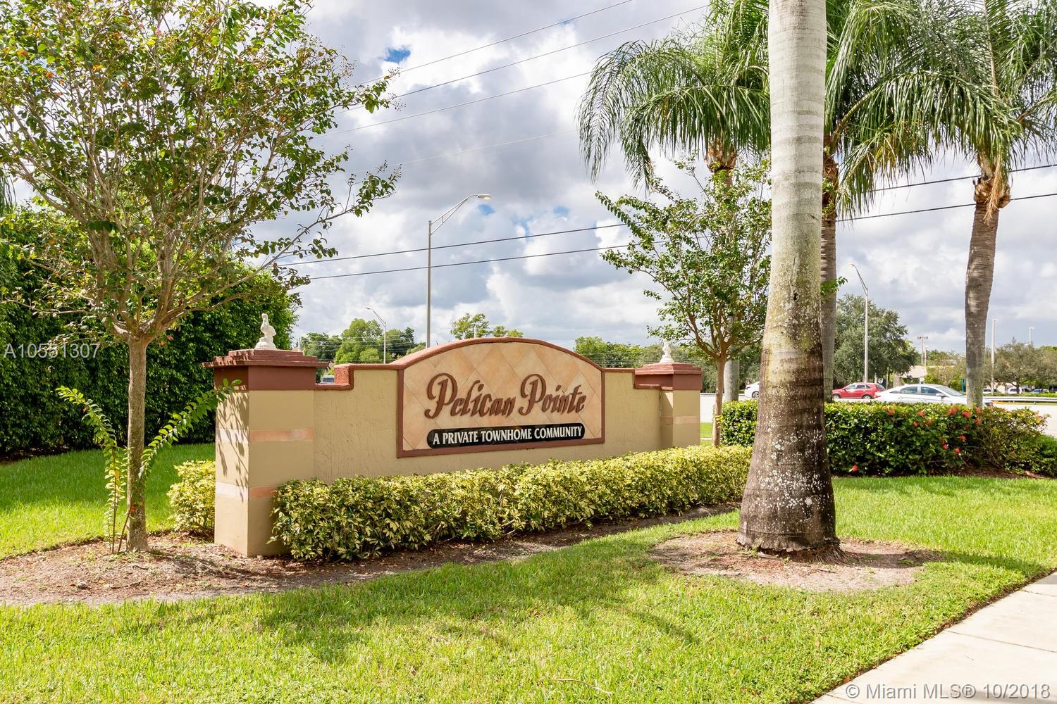 IMPECCABLE 2 BEDROOMS AND 2 1/2 BATHROOMS TOWNHOUSE LOCATED IN THE DESIRABLE COMMUNITY OF PELICAN POINTE IN PEMBROKE PINES. THIS PROPERTY OFFERS RENOVATED BATHROOMS, NEW LAMINATED WOOD FLOOR UPSTAIRS, TILE FLOOR DOWNSTAIRS, WASHER AND DRYER INSIDE, FRESHLY PAINTED, WALK-IN CLOSETS, OPEN PATIO WITH STORAGE ROOM AND GARDEN VIEW, HURRICANE PANELS, TWO LARGE PARKING SPACES AND PLENTY FOR GUEST. LOW HOA COMMUNITY THAT OFFERS BASIC COMCAST CABLE/INTERNET, LANDSCAPING, AND 24-HOUR GATED SECURITY. THE COMMUNITY AMENITIES ARE POOL AND MAIN CLUBHOUSE, TENNIS COURTS, AND GYM. CONVENIENT LOCATION CLOSE TO PEMBROKE LAKES MALL, SHOPS OF PEMBROKE GARDENS, CB SMITH PARK, HOSPITALS AND MAJOR HIGHWAYS( 75, TURNPIKE) BRING YOUR FUSSIEST BUYERS TO PURCHASE THIS COZY TOWNHOUSE!