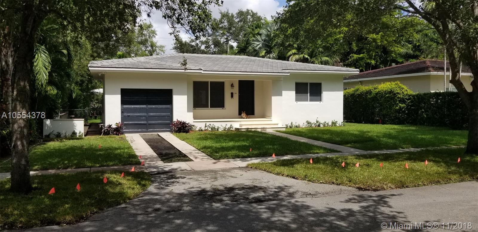 Updated Home near Country Club of Coral Gables, one block from the golf course. It sits on a deep 135ft by 66ft wide lot, approximately 9,000 sq.ft. Very large backyard with possibilities for ALL types of additions and/or pool. Living room and bedrooms with oak wood flooring. 3 bedroom/1 bathroom. Bathroom, dining and kitchen with crema marfil marble flooring and designer custom cabinetry. New custom made kitchen with wood cabinets and new whirlpool, kitchenette, wolf appliances with large island. French doors. Tile roof (+- 7yr old). ALL mech, elec, plumbing updated. House is connected to city sewer, fpl electric lines from pole to electric meter were relocated underground around the property lines, also att and comcast lines.