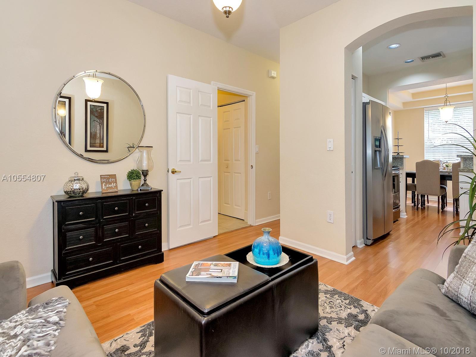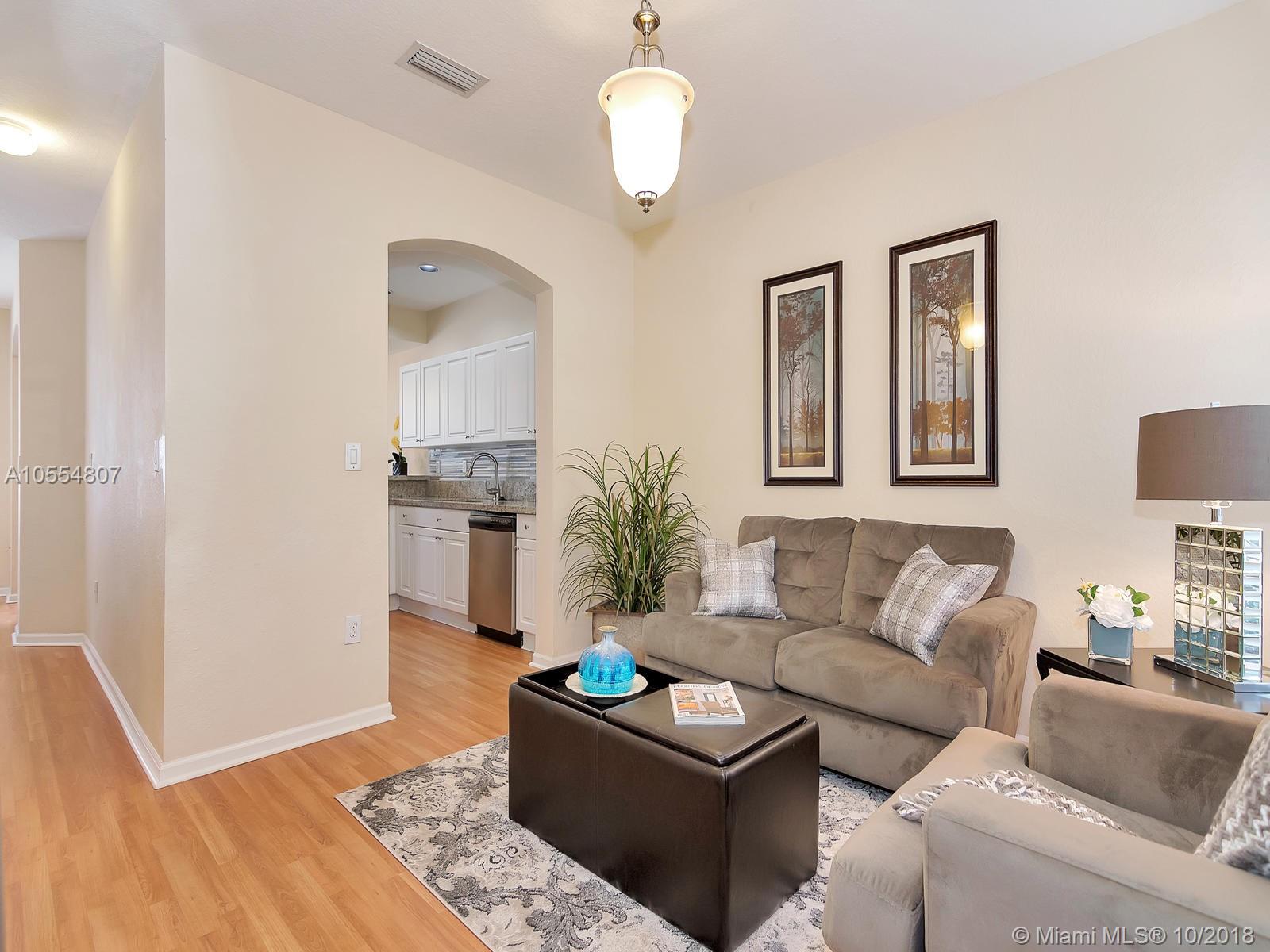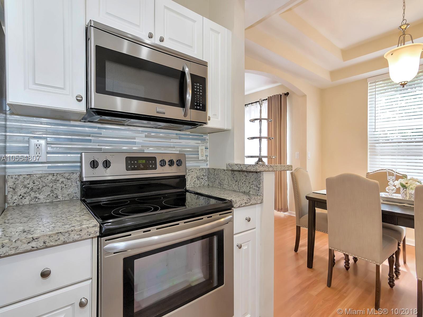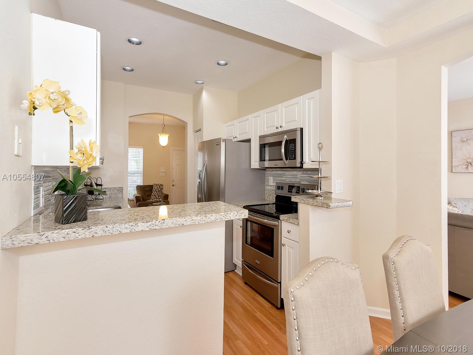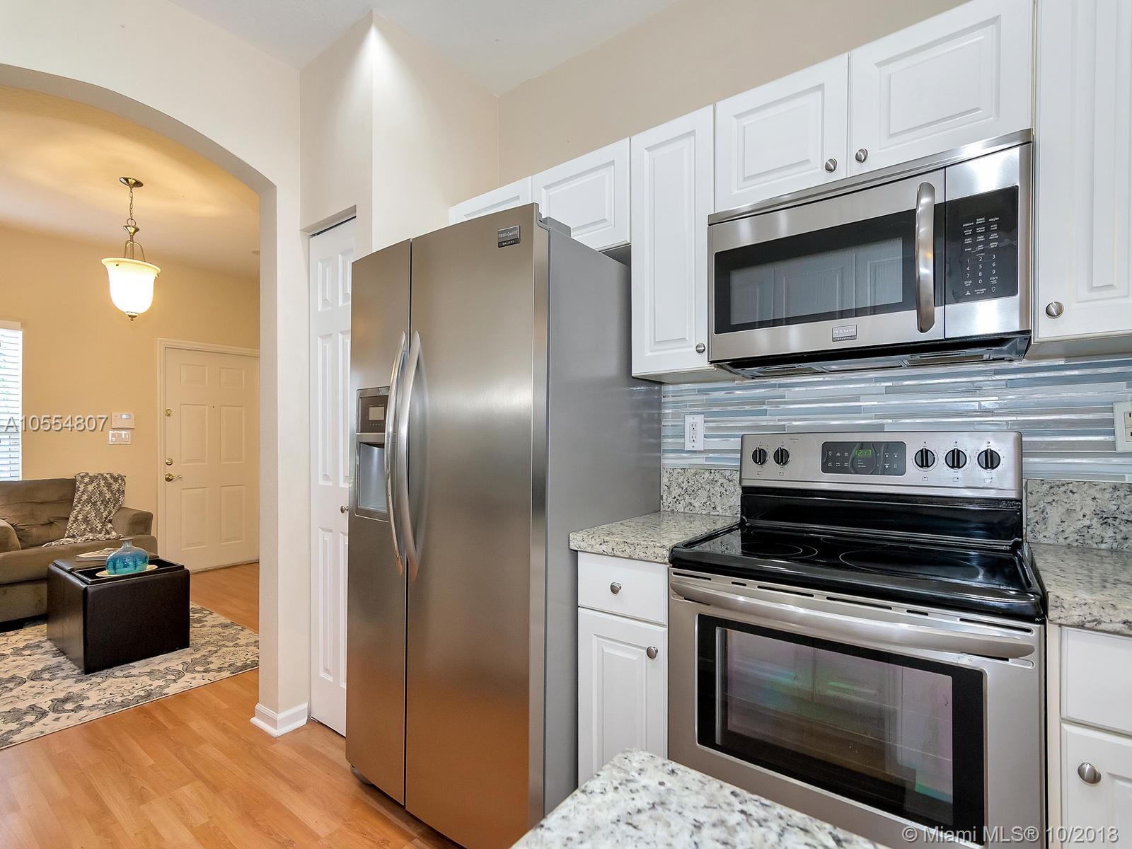 Amenities galore! Elegant guarded entry, mature landscaping, serene lake views, club house with fitness center, multiple pools, playground and picnic area. Enjoy resort style living in prestigious Pembroke Isles in a remodeled townhouse with 3 bedrooms, 2.5 bathrooms, and 1-car garage. Kitchen features brand new stainless steel appliances, granite counter tops and texture stone back splash. New sink cabinets installed in bathrooms. Neutral tile on first floor and laminate wood floors upstairs.