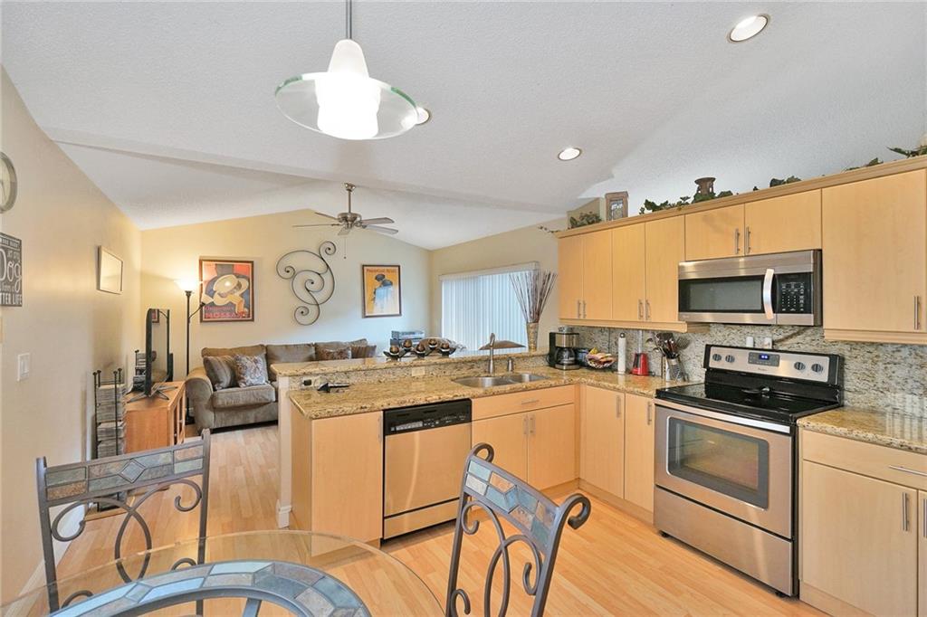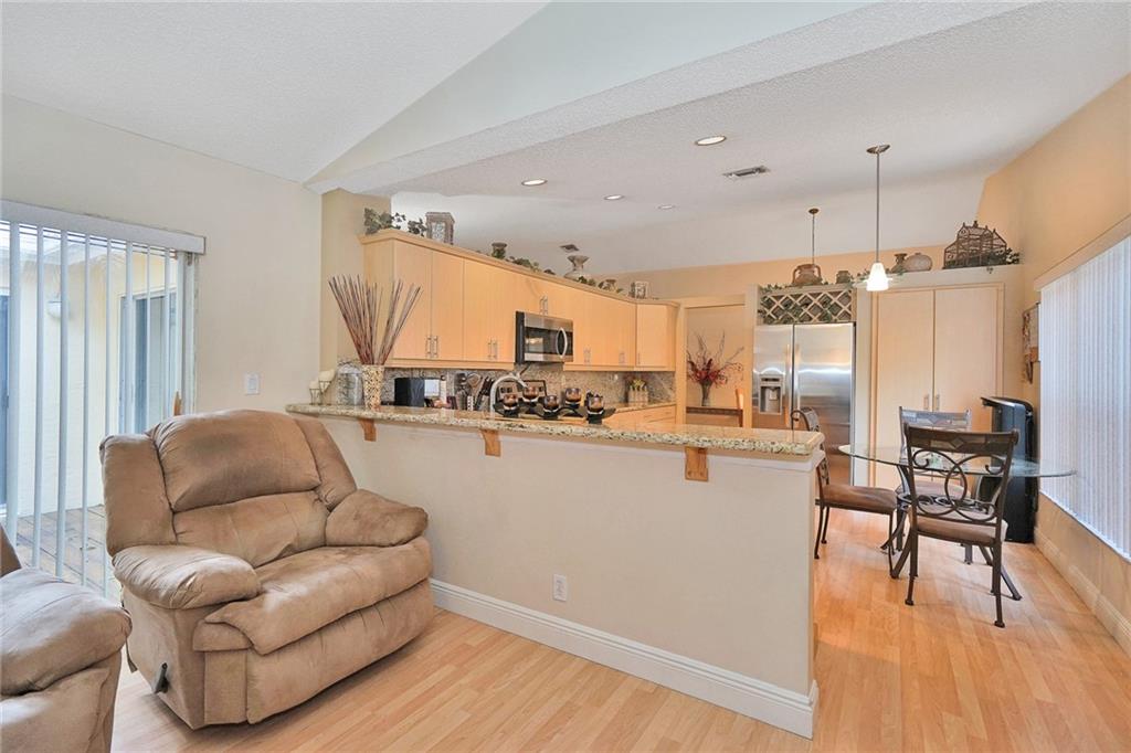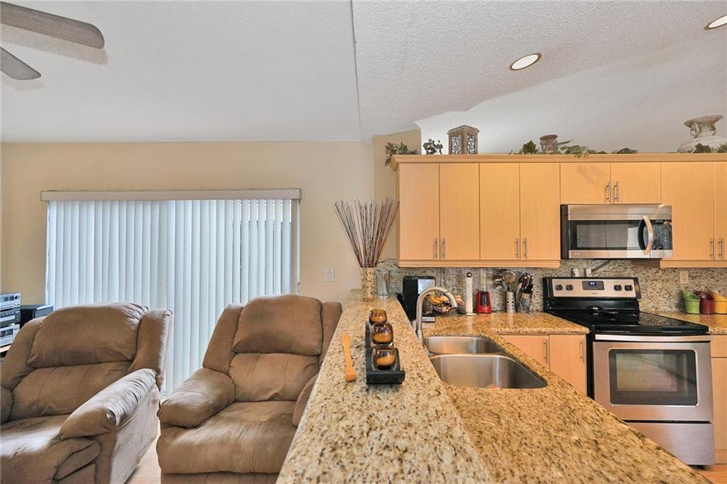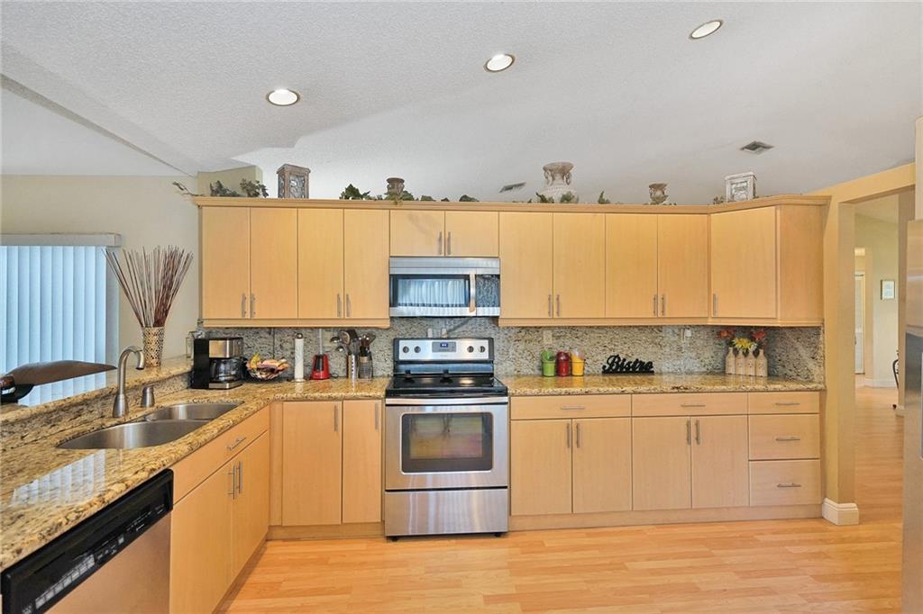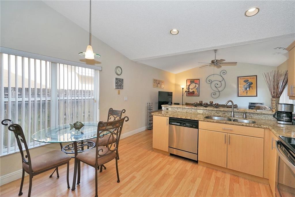 In the Community of Welleby Isles, this is a rare find. Foyer entrance, sets the tone for this updated 3 bedroom 2 bath home with a 2 car garage.Formal Dining room. Separate Living room. Great light with lots of windows and 3 sets of sliders that lead out to deck patio and second level seating area. Updated kitchen and with granite and stainless steel appliances lots of cabinets and built in kitchen pantry. Master en suite with updated dual sink bath and large walk in closet. Extra living space off of kitchen. Split bedroom floor plan. Partially furnished Motivated.