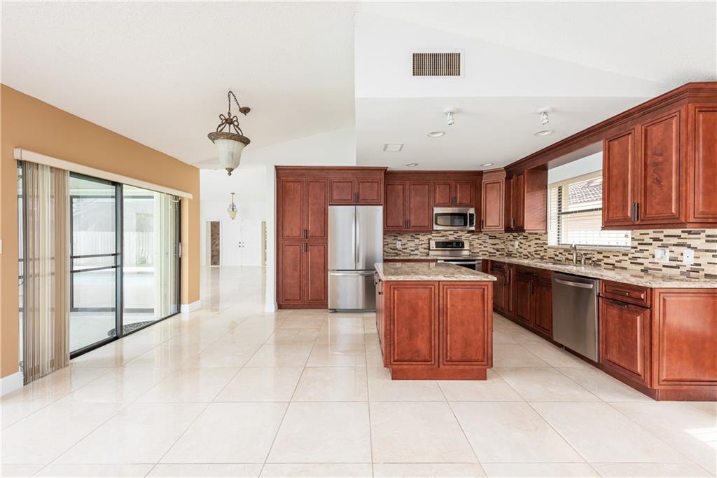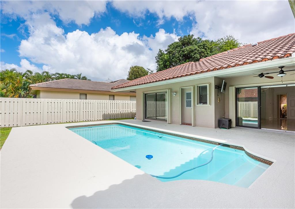 THIS IS THE ONE! A perfect family home! Absolutely pristine with many great features - so bright with lots of natural light - open floor plan with vaulted ceilings - large neutral porcelain tile throughout - gorgeous updated kitchen with cherry wood soft close cabinets, drawers & pull-outs, Silestone quartz counters & new appliances - kitchen is open to the spacious family room - fully fenced yard offering privacy - wonderful patio & pool - formal dining room - updated powder room - hurricane shutters - laundry room with sink & extra storage - and epoxy coating on the garage floor. Beautiful, sought after community in a great location! No association approval required. Move right in! This is a great home AND the seller is motivated!!