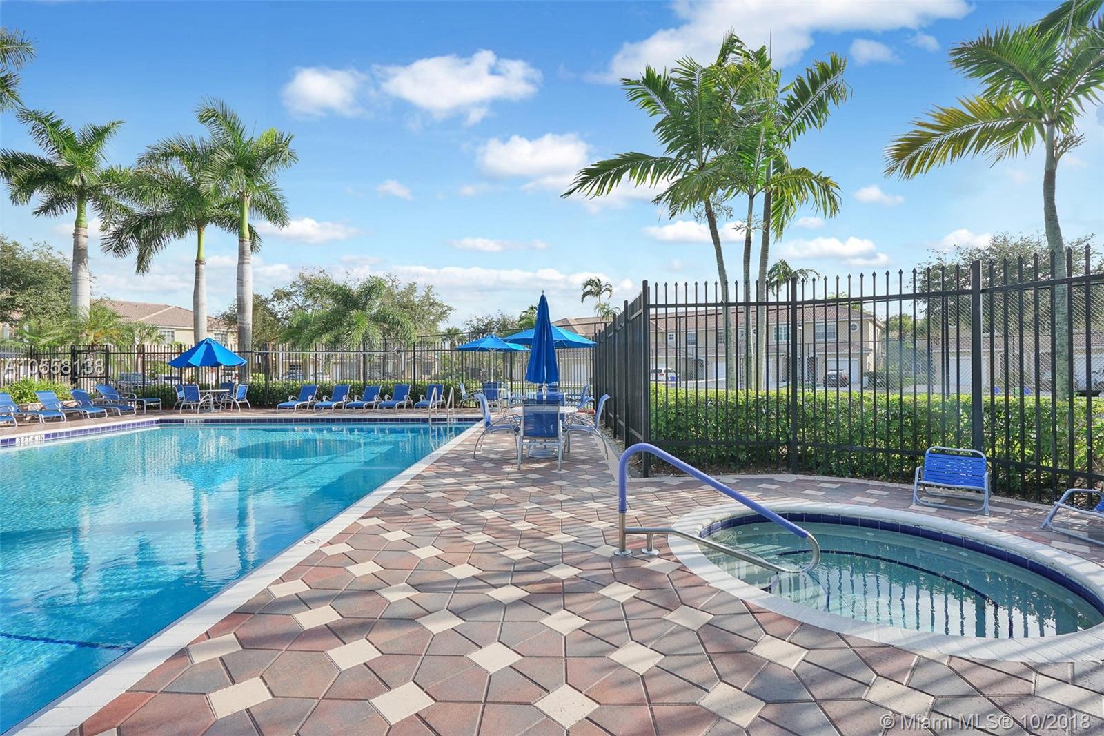 ENJOY THIS 2 BED/2.5 BATH 1-CAR GARAGE, LOCATED WALKING DISTRANCE FROM THE FRONT GATED ENTRANCE. GREAT CENTRAL PEMBROKE PINES LOCATION, EASY ACCESS TO TURNPIKE AND I-75, WALKING DISTANCE TO MALLS, SHOPPING AND RESTAURANTS. MASTER BATHROOM WITH VIEW OF GARDEN. MASTER BATHROOM WITH DOUBLE SINKS! SPACIOUS OPEN LIVING AREA WITH NEUTRAL TILE FLOORS AND 1/2 BATH FOR GUESTS DOWNSTAIRS. BOTH BEDROOMS UPSTAIRS WITH EN-SUITE BATHS, STORAGE GALORE WITH HIS AND HER WALK-IN CLOSETS IN MASTER AND HUGE WALK-IN CLOSET IN 2ND BEDROOM. ENJOY THE SCREENED IN PATIO WITH GARDEN VIEWS. COMMUNITY HAS IT ALL: RECREATION CENTER, FITNESS CENTER, HUGE POOL, AND TENNIS COURT WITH LOW HOA!