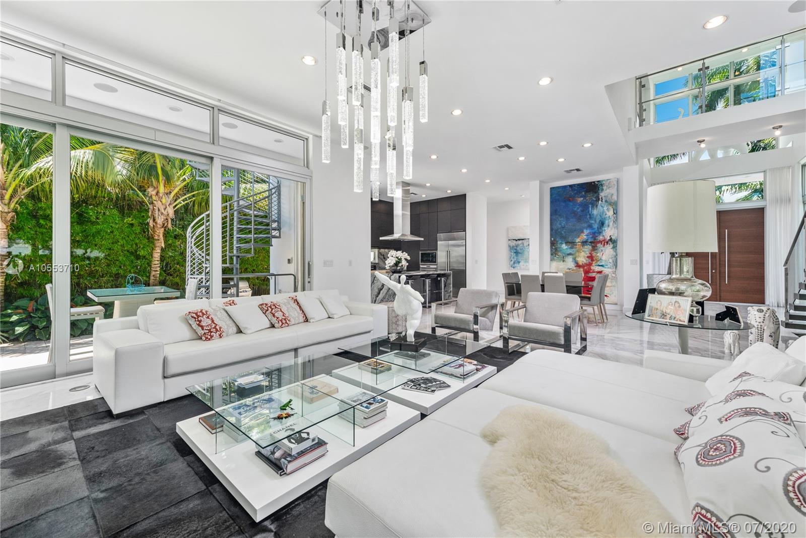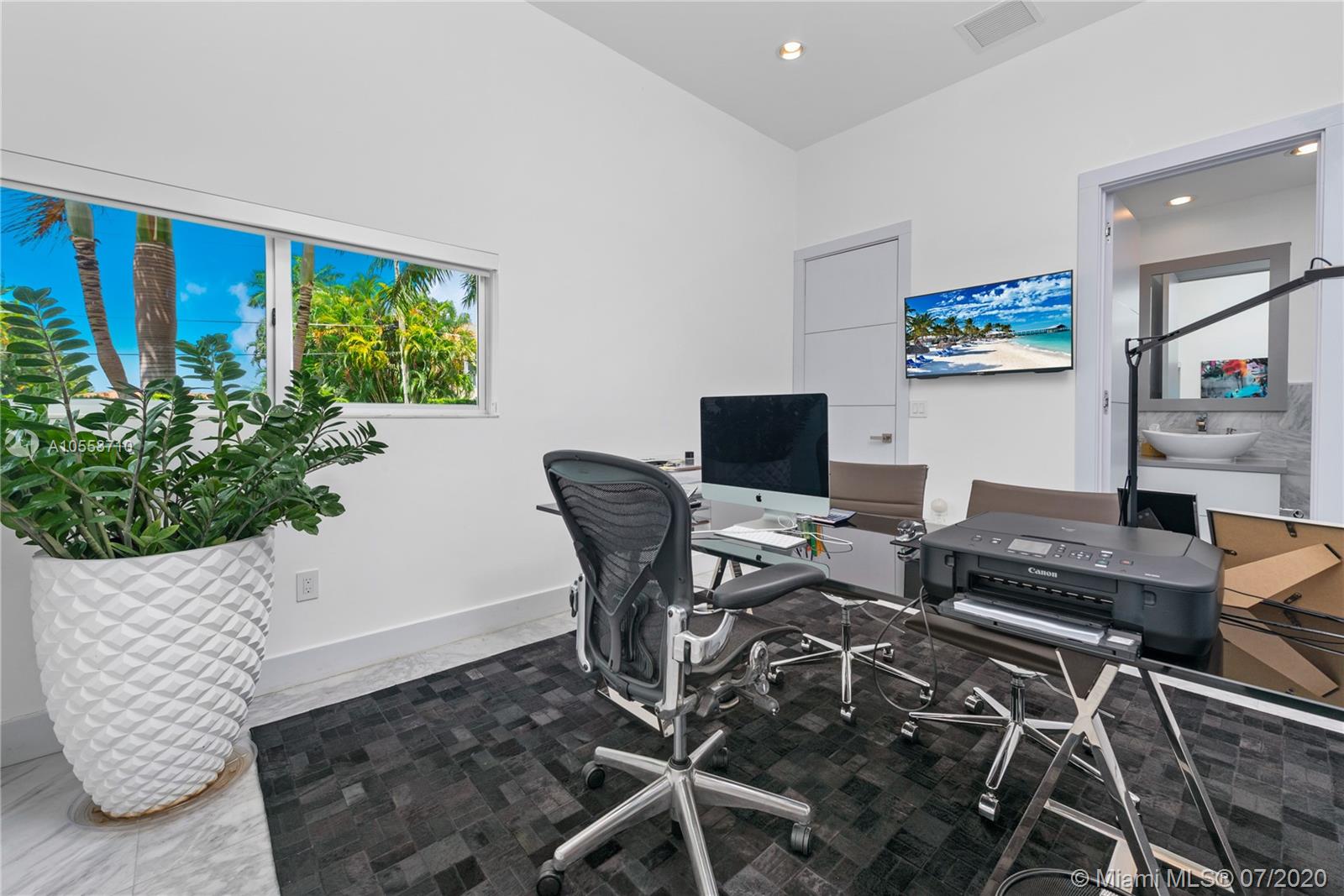 Income producing Hibiscus Island Miami Beach home with $26,000 month paying tenant. Lushly landscaped and strikingly modern two-level turnkey residence located in Hibiscus Island on a prime 9,500 sf corner lot. Combining functionality and design, it has an adj. area of 4.090 sf., 5 beds and 5.5 baths with glass walls that overlook the resort-inspired backyard. This tropical oasis features an inviting pool, fire pit, grill and lounging areas. Upstairs is the clean-lined master bedroom with 2 walk-in closets and spa-like bath, two guest bedrooms and a bedroom converted into a fitness room. Highlights include an open kitchen with upright wine cooler, office, two-car garage, rooftop terrace and more.