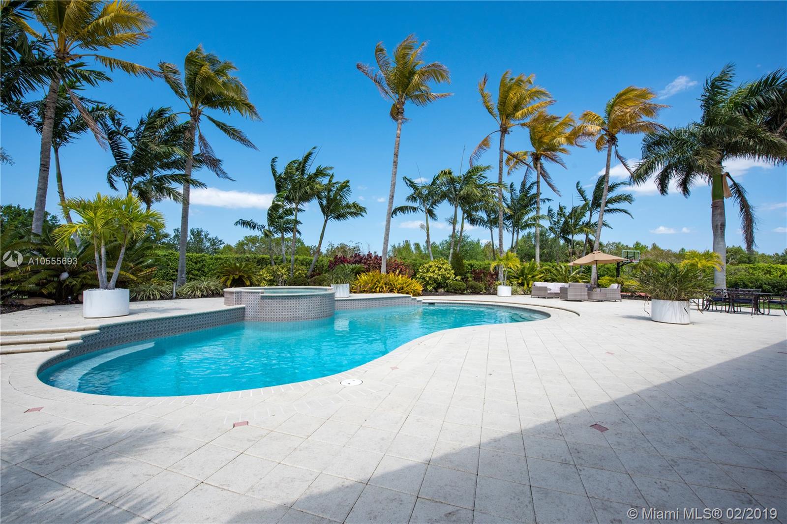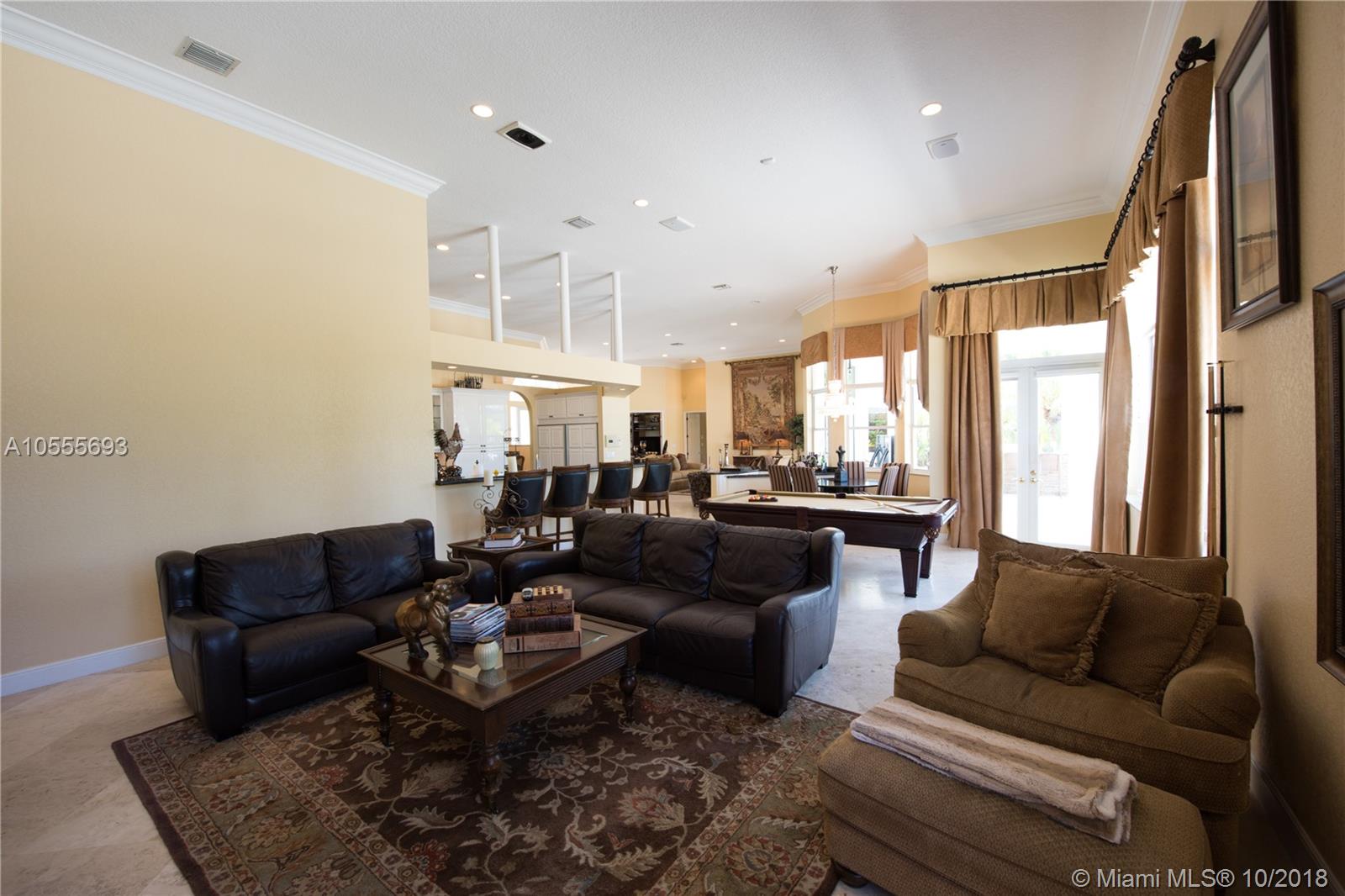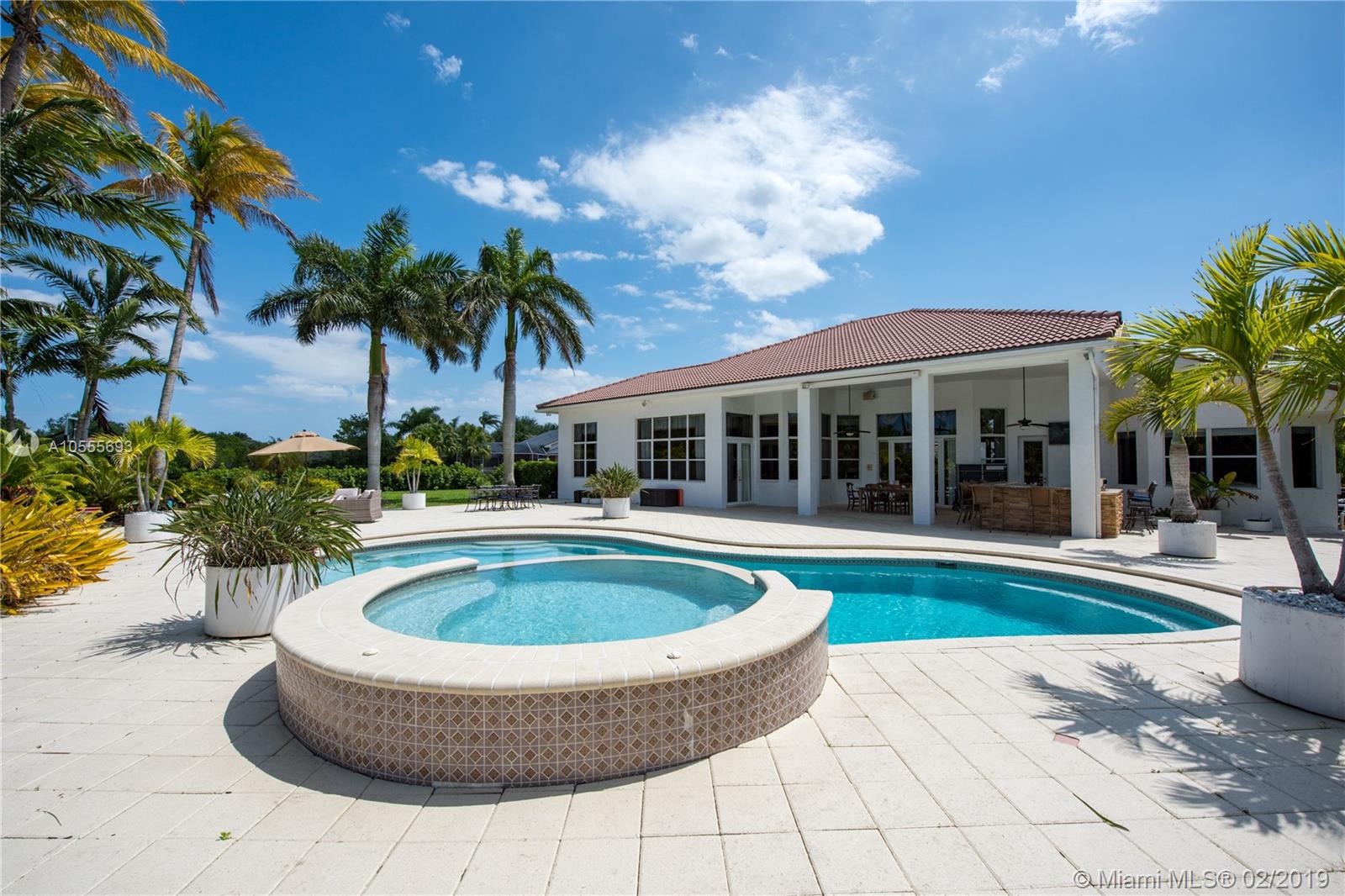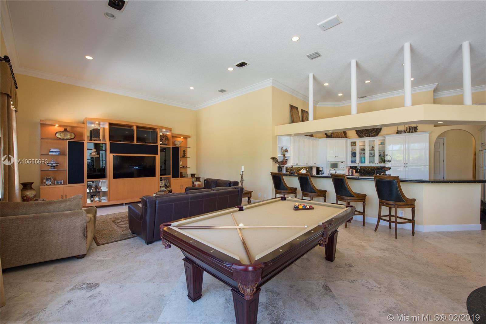Large 5 bedroom 4 bath home with one room used as office with built ins. Brand new roof in progress with warranty to buyer. Gated, in Mystique Estates, large lakes and sidewalks throughout neighborhood including a children's playground. Great family layout on over an acre. Property backs up to Davie horse trail. No rear neighbors. Outdoor resort style oversized pool, heated spa, large deck, stone fire pit, built in grill with refrigeration and large bar. Subzero refrigerator freezer, wet bar, and trash compactor. Travertine floors throughout entire house. Master has two walk in closets with built ins. And don't forget the Basketball court. This home speaks for its self. If you are looking for a great family home with over an acre of land on a cul de sac than this is it. Priced to sell.