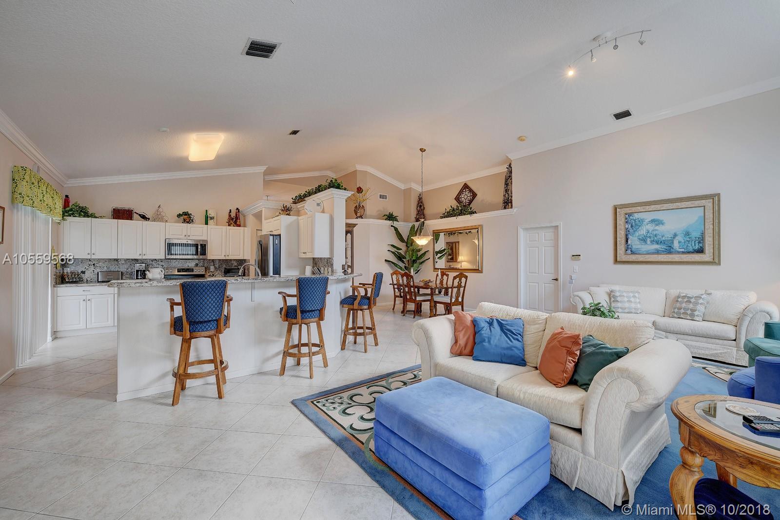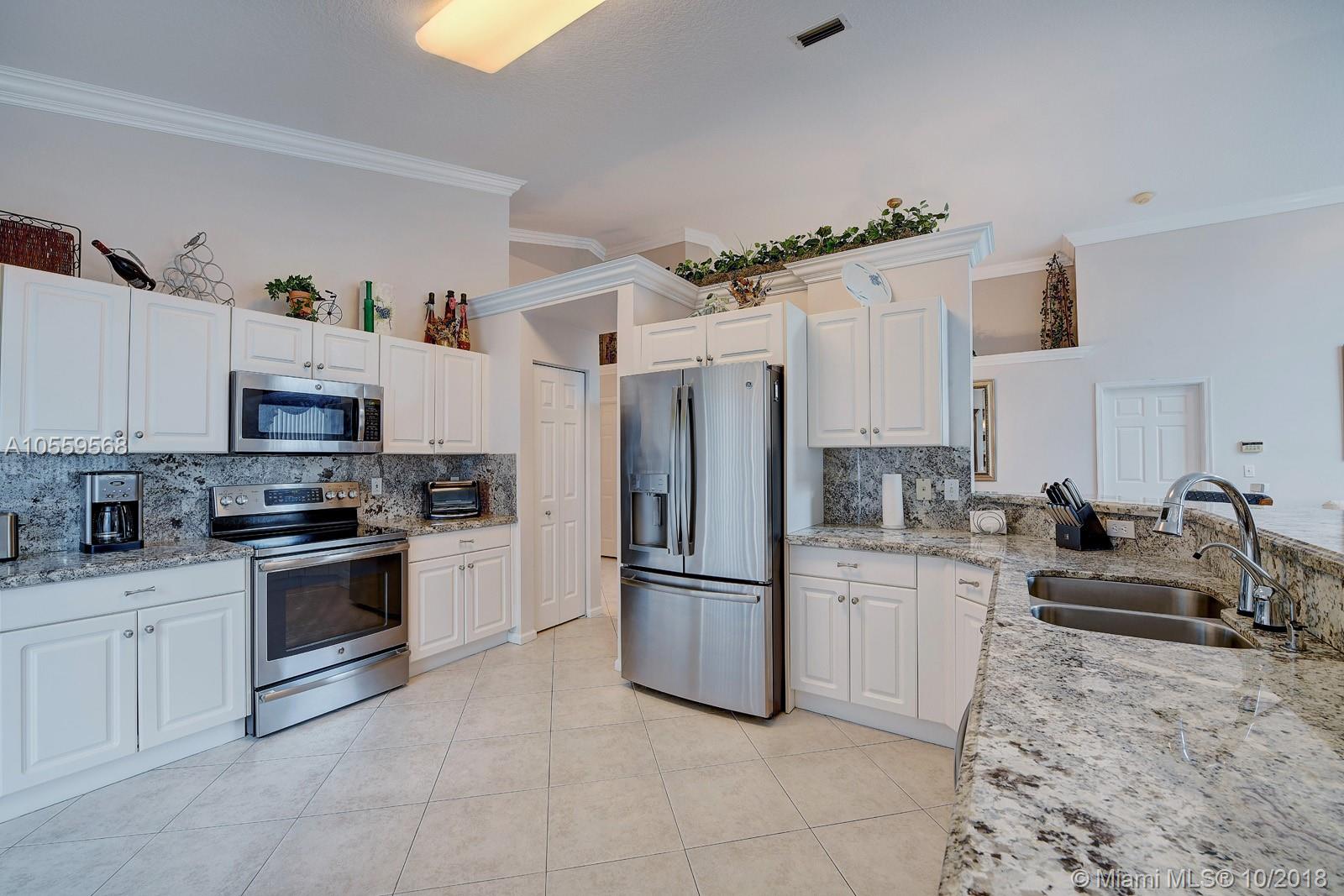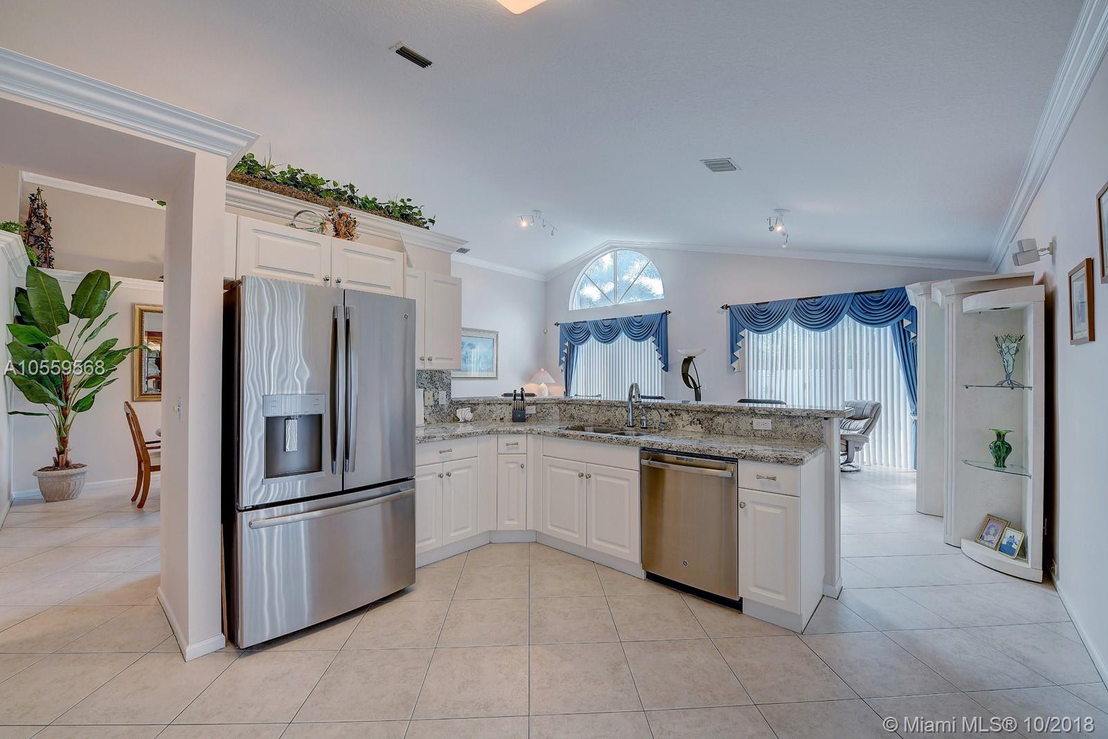 STUNNING AND IMPECCABLE Single family pool home in beautiful Sandal Bay @ Pembroke Shores. PRIME location. Gated community. Home features gorgeous crown molding throughout, vaulted ceilings, soft neutral colors, completely tiled living areas, beautiful updated kitchen featuring tiger tail granite counter tops, white custom cabinetry and 2017 stainless steel appliances. Central AC replaced in 2012 & water heater replaced in 2015. Accordion hurricane shutters and a beautiful pool & patio area are just some of this home's pristine features. Home shows like a model and has a fantastic floor plan. Show with absolute confidence to the most demanding of buyers...home WILL NOT disappoint. Agents, please read broker remarks. Washer and Dryer excluded from sale. Check out the virtual reality tour!